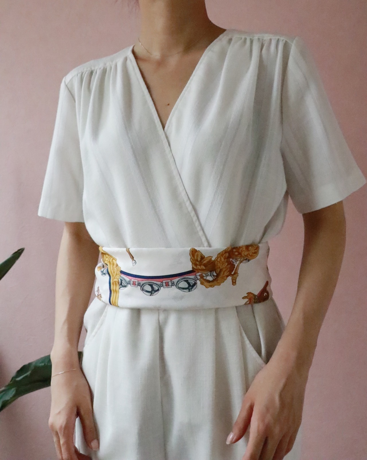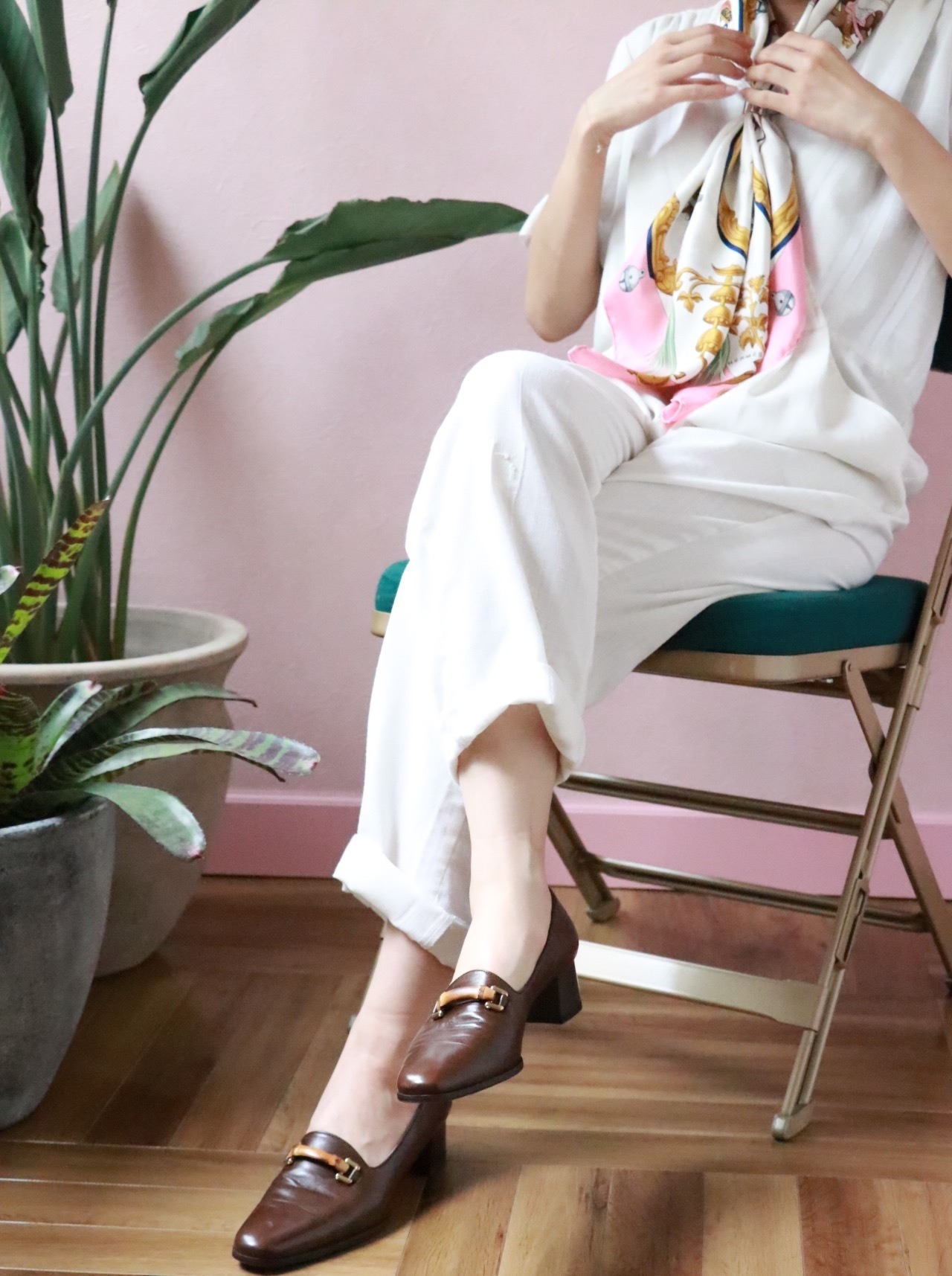 写真のようにスカーフリングを通してのアレンジもおすすめです。