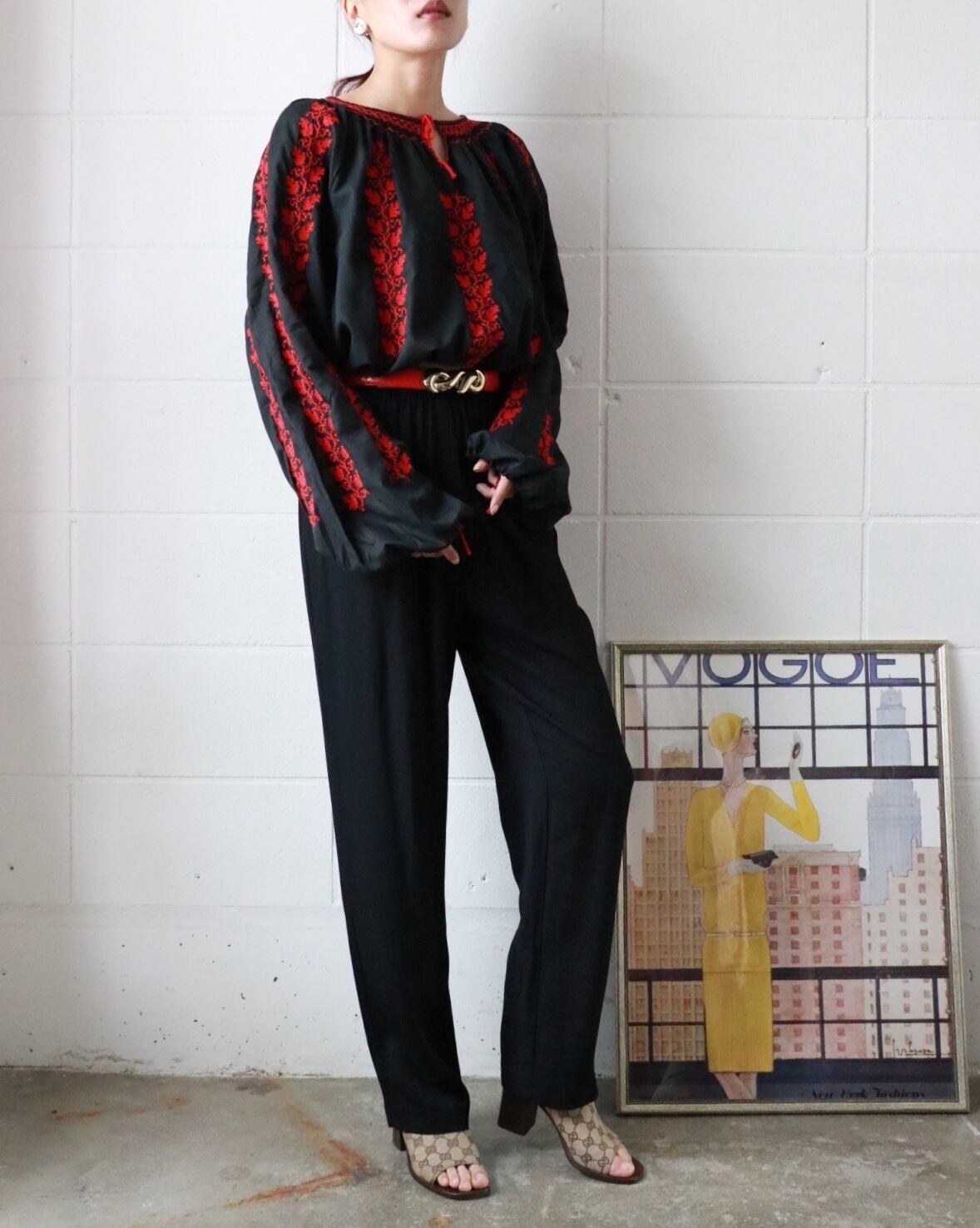 ブラックベースに赤い刺繍がクラシックな組み合わせの一点