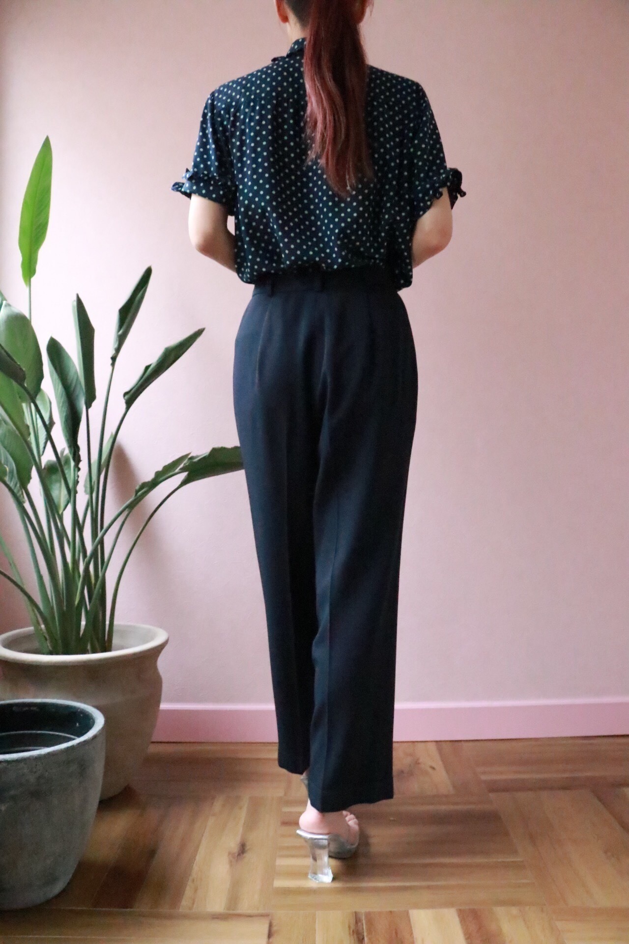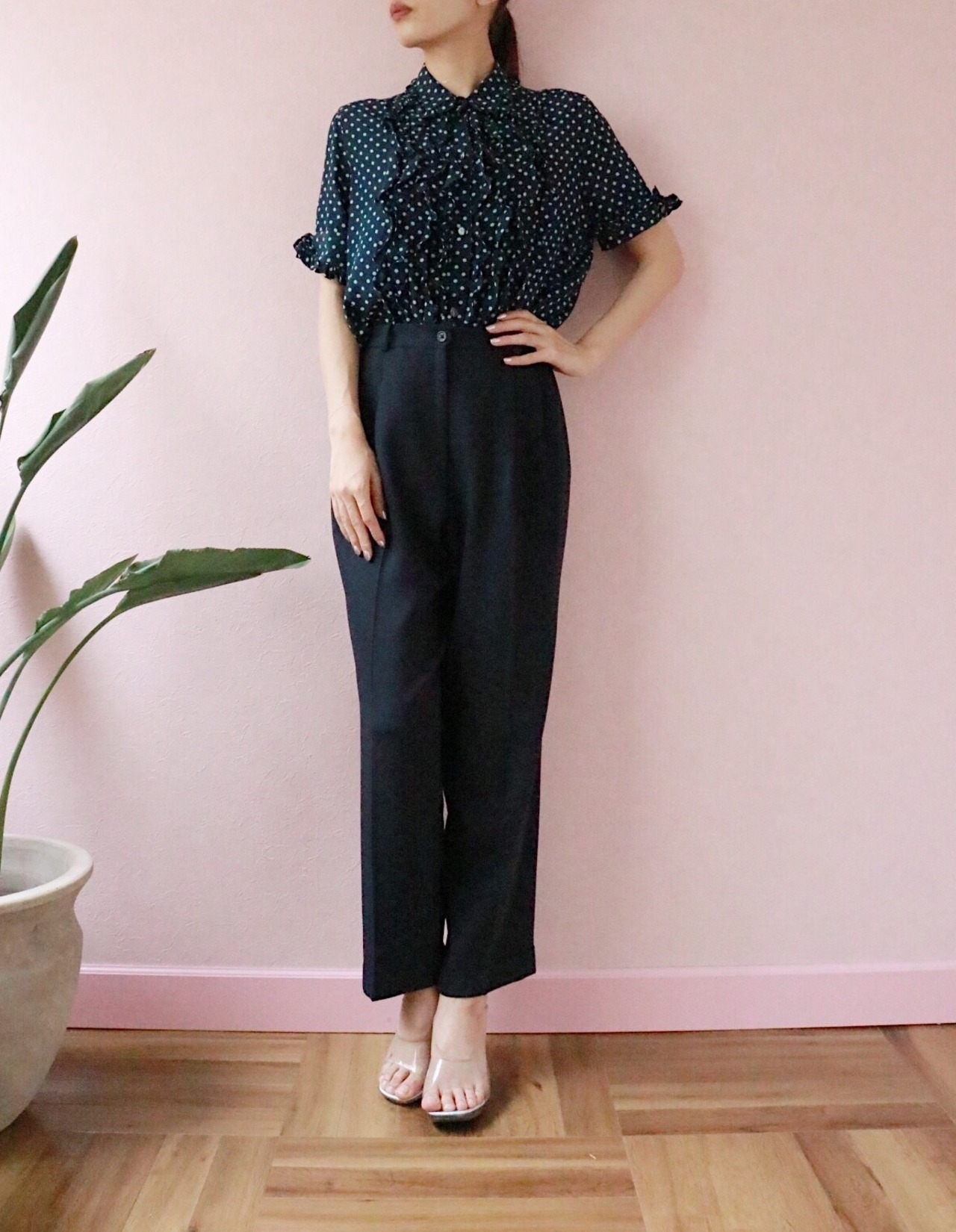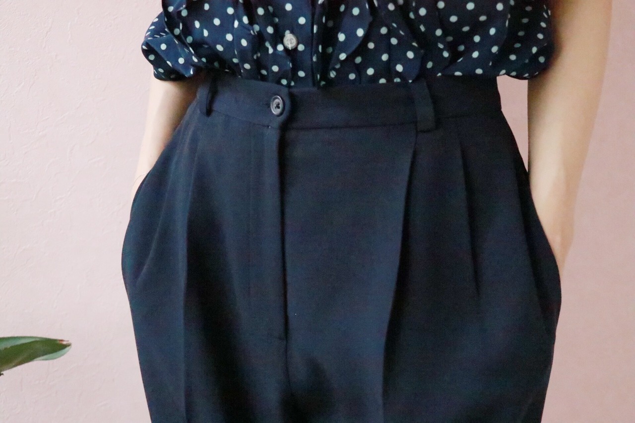 レッグラインを美しく魅せるハイウエストとセンタープレスのクラシカルなデザイン。
