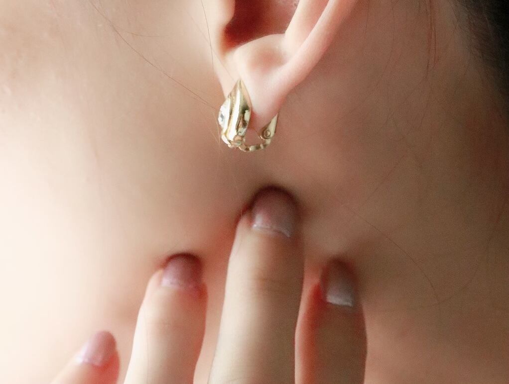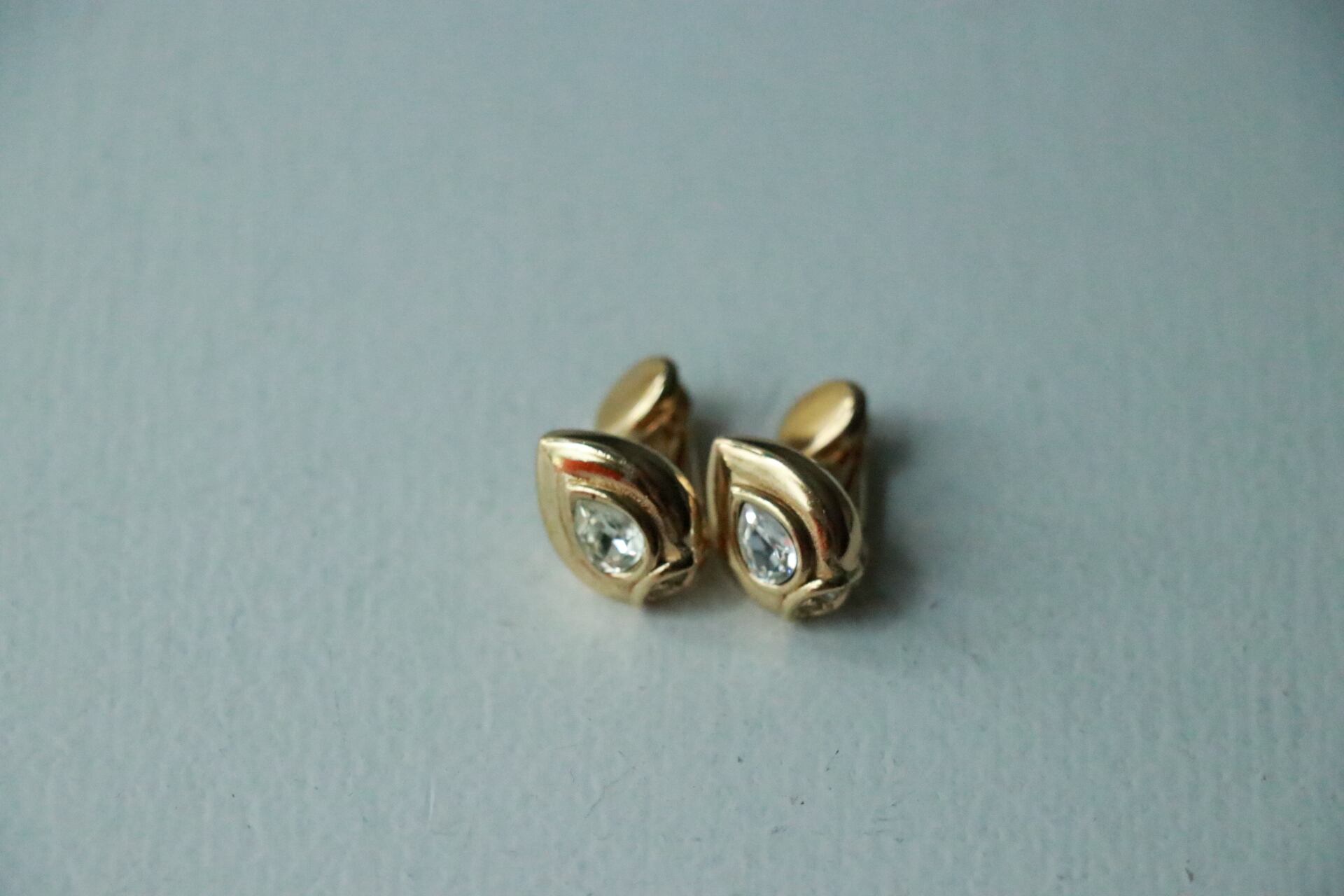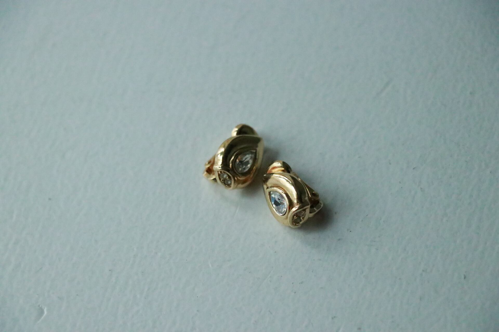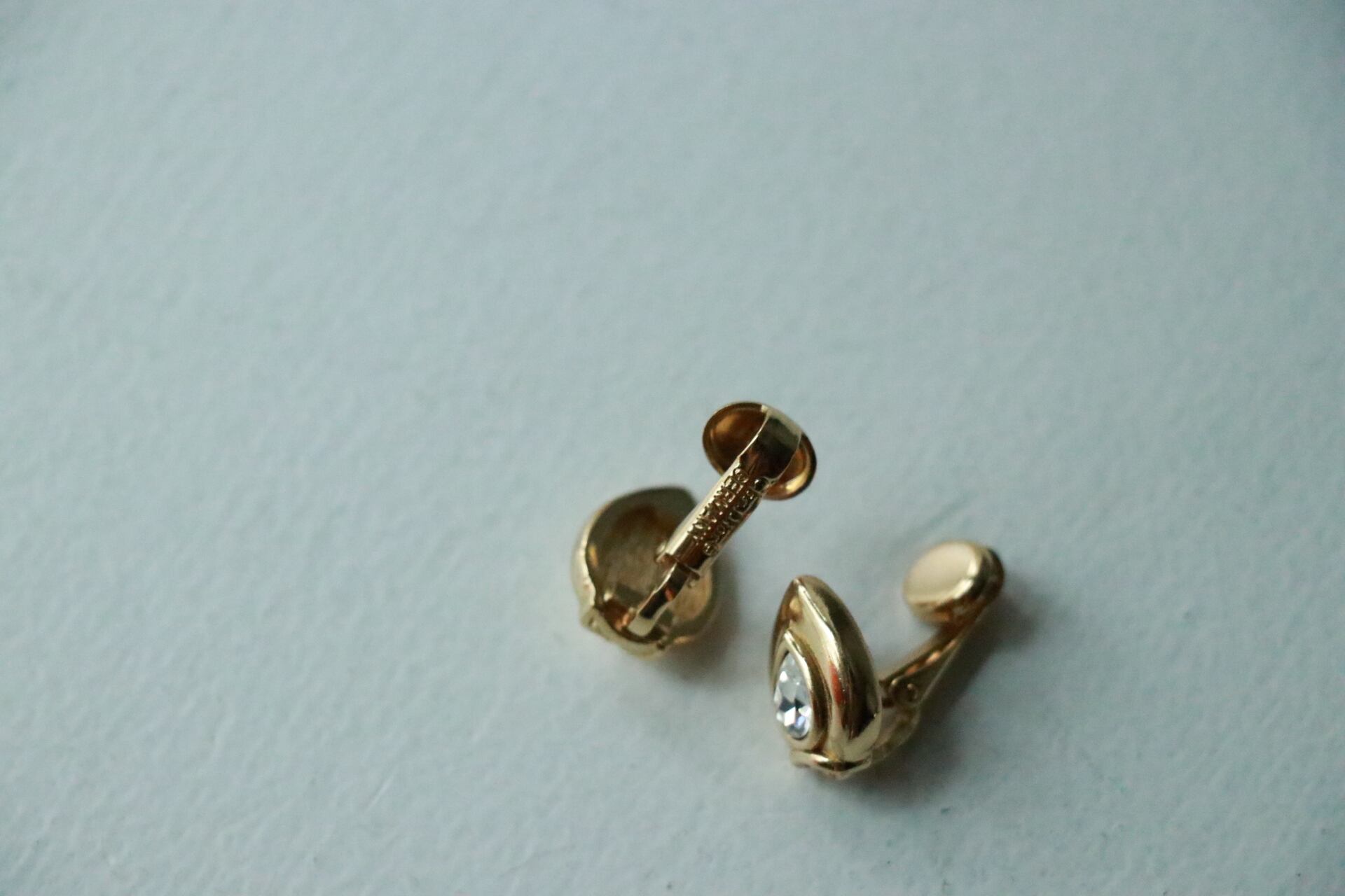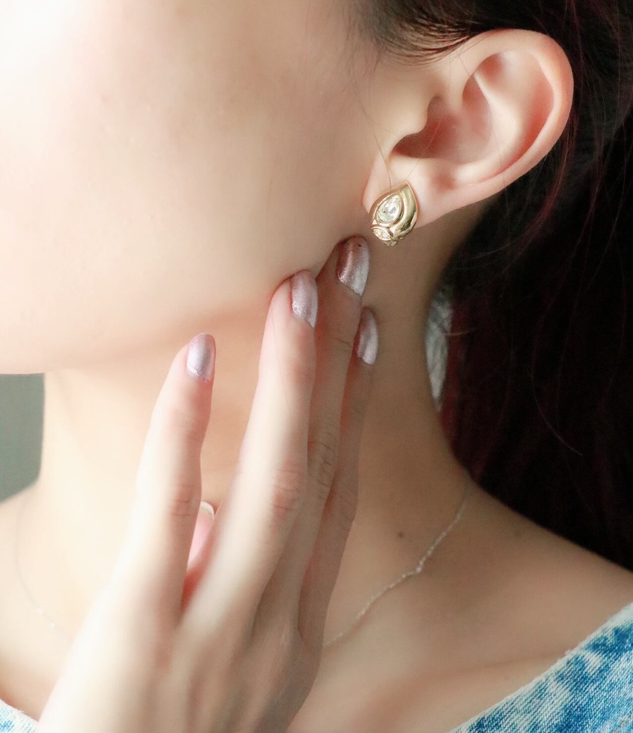 艶めくゴールドカラーとラインストーンのコンビが、耳元に品良く華やかさを添えてくれます。
