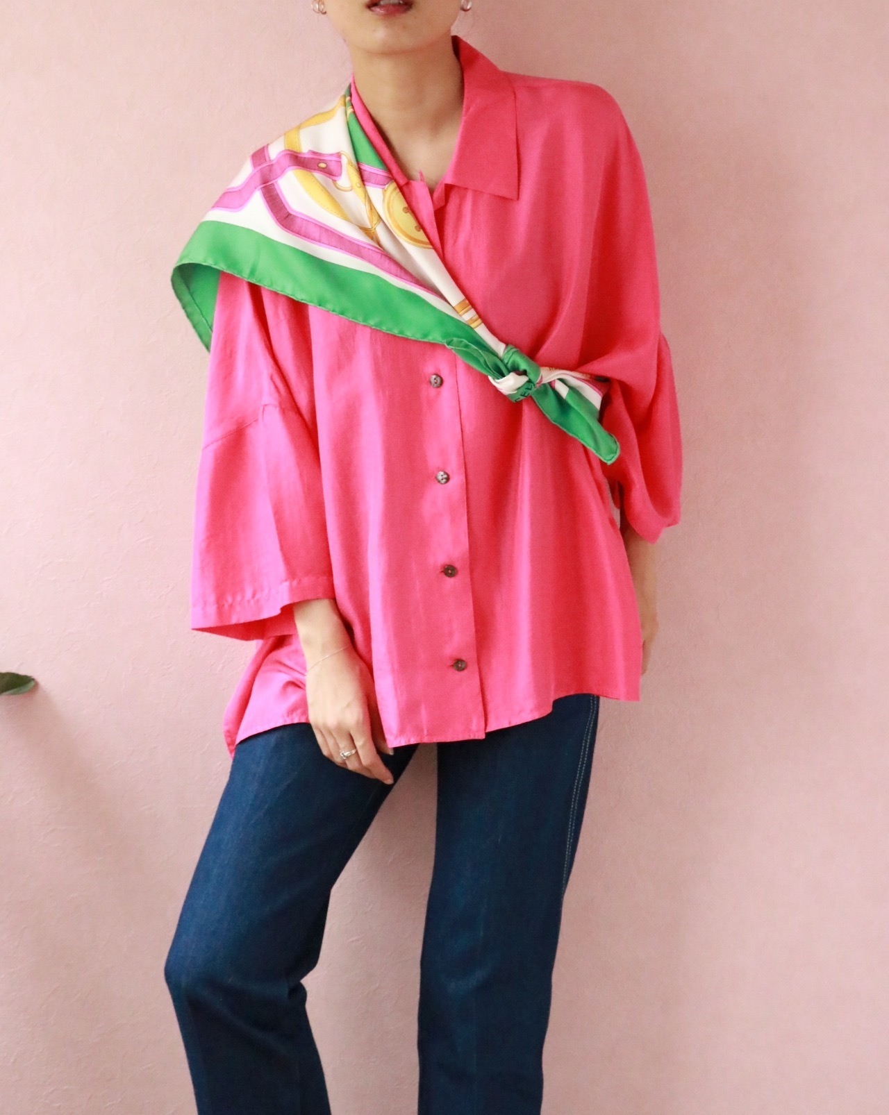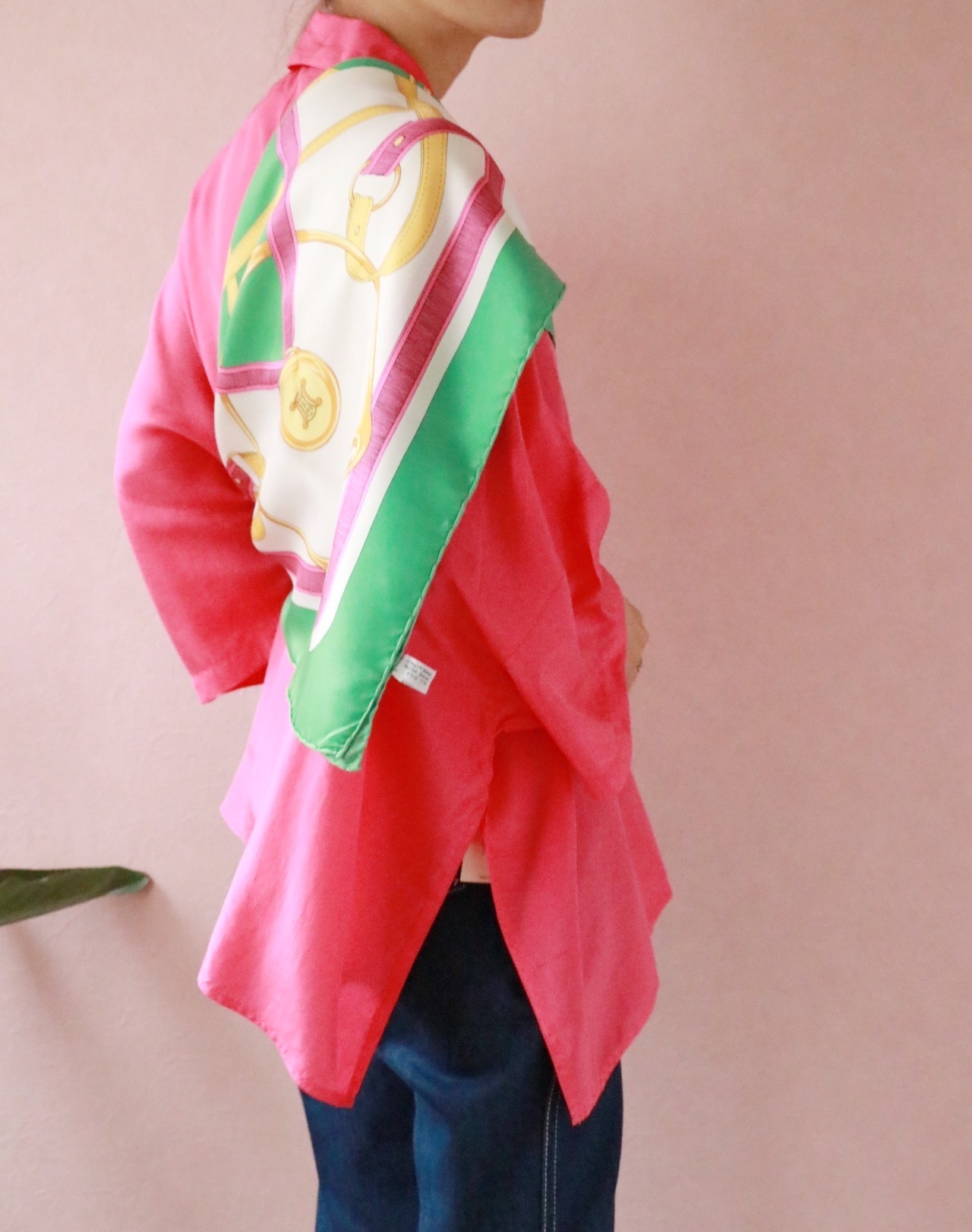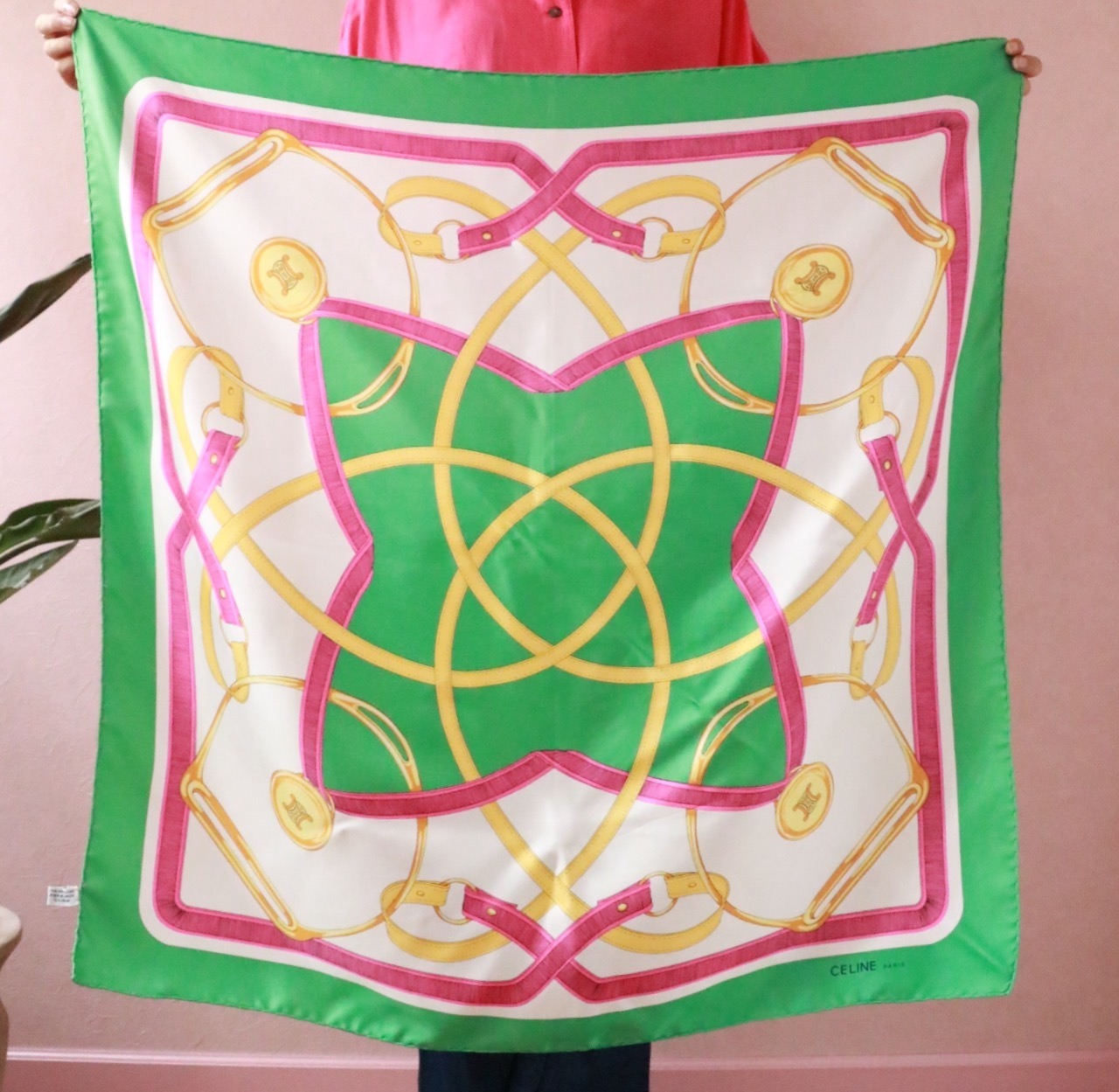 上質なシルク素材や絵柄が素敵なヴィンテージスカーフは、ついつい集めたくなってしまいます。こちらは、CELINEの大判スカーフ。