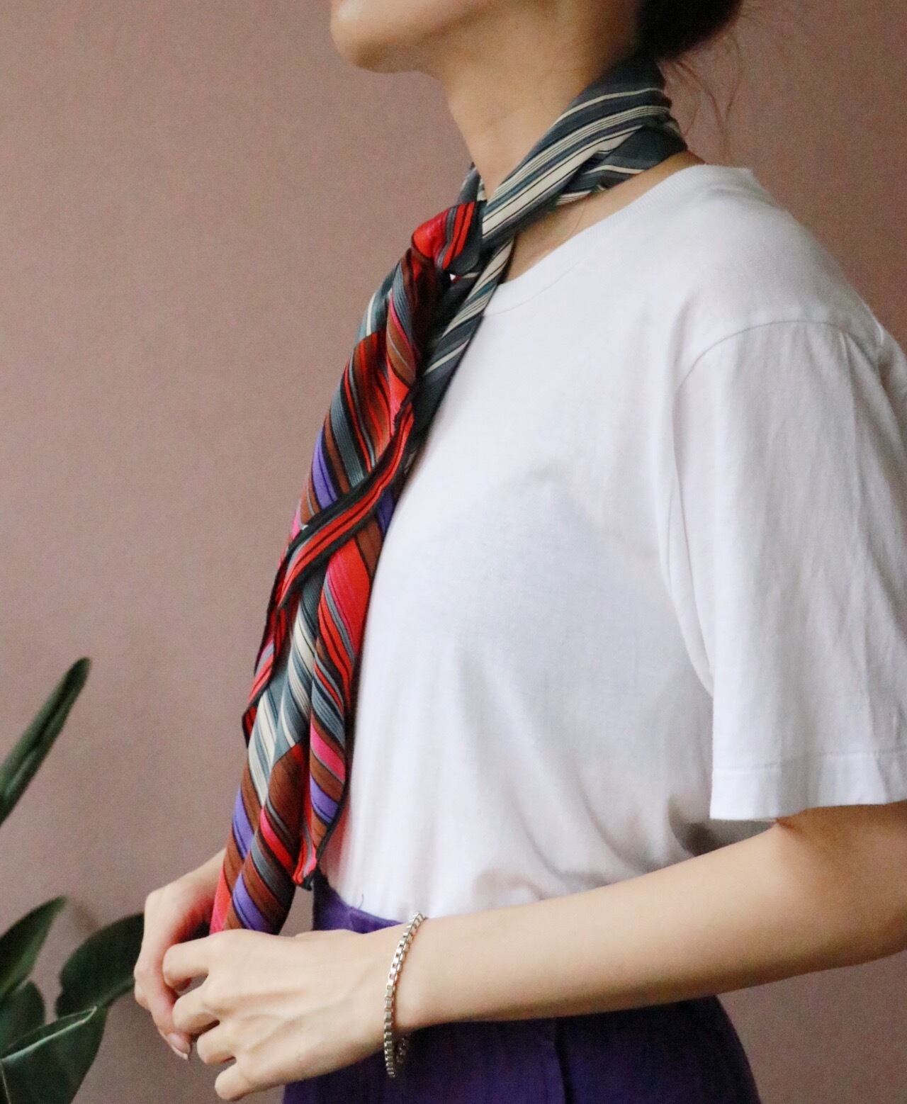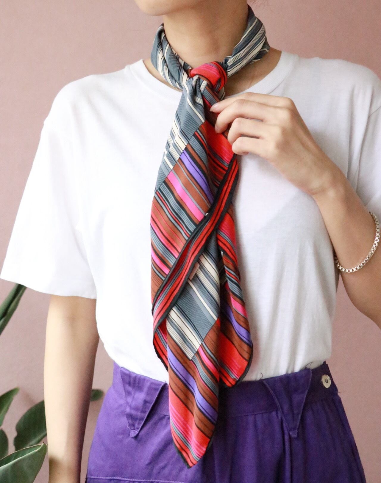 プラスするだけで普段コーディネートをワンランク上の着こなしへと導いてくれるイブサンローランのシルクスカーフ
