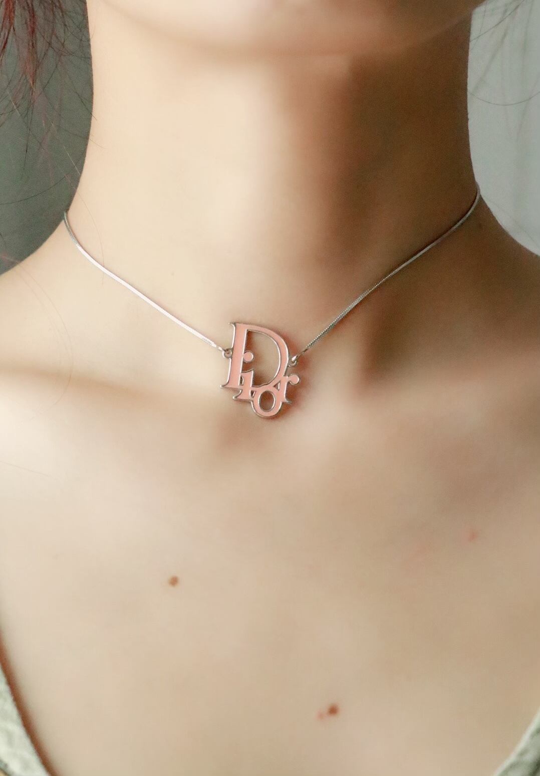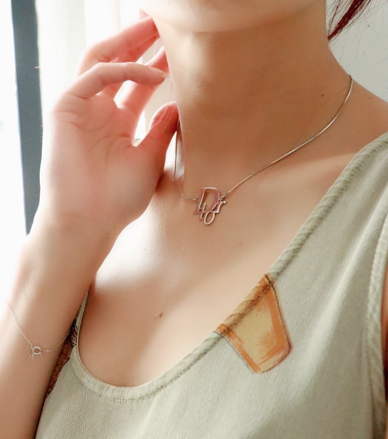 シルバーチェンの真ん中にDiorの文字が付いたフェミニンでかわらしいデザイン