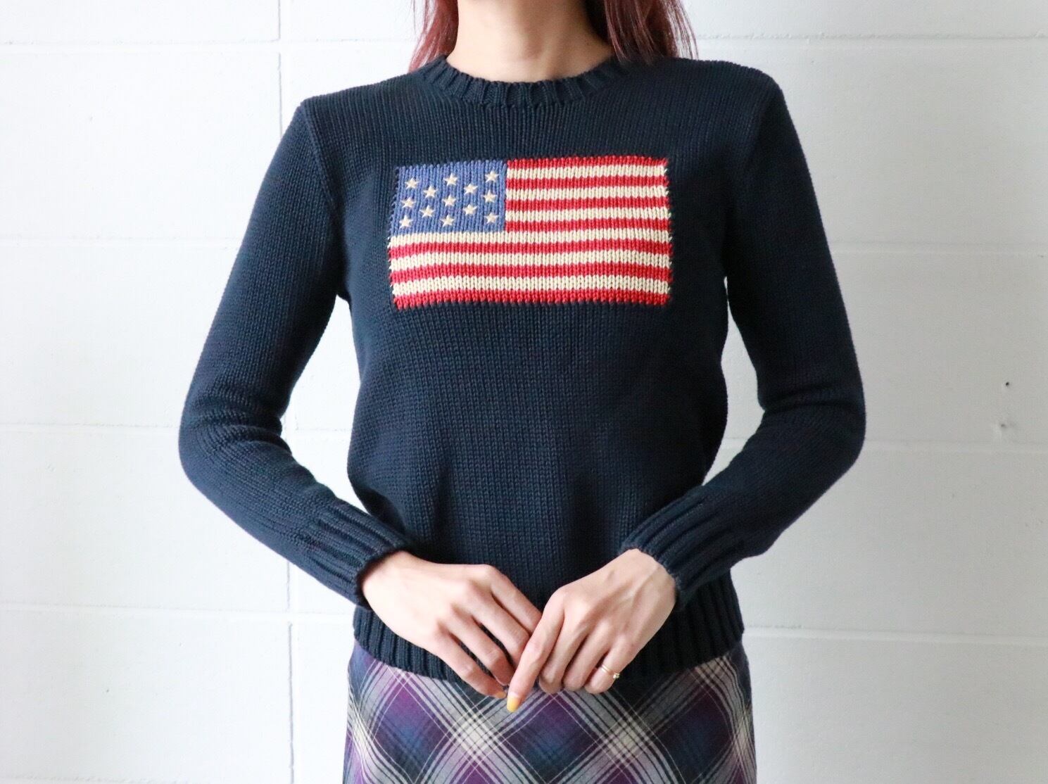 星条旗が堂々と編み込まれたラルフならではのデザインに目がいきます。