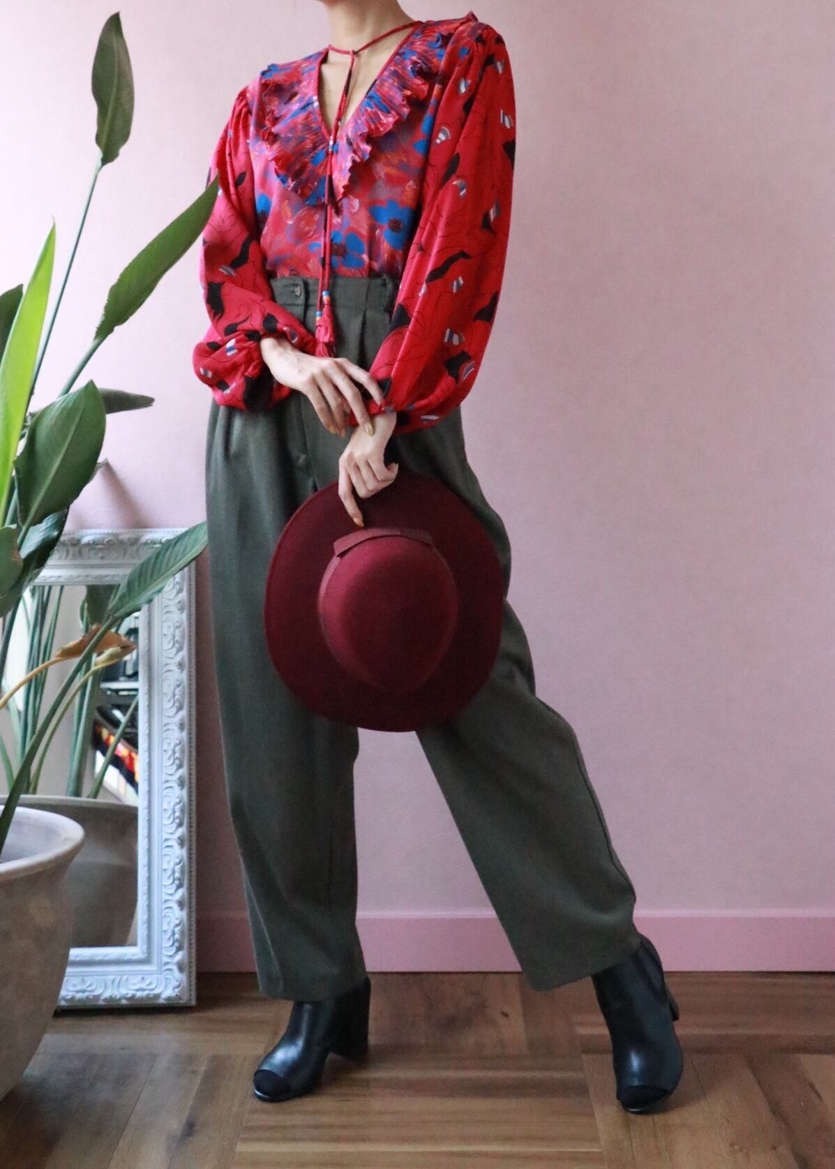 鮮やかなショッキングピンクに目を惹かれるダイアンフレイスのトップス。