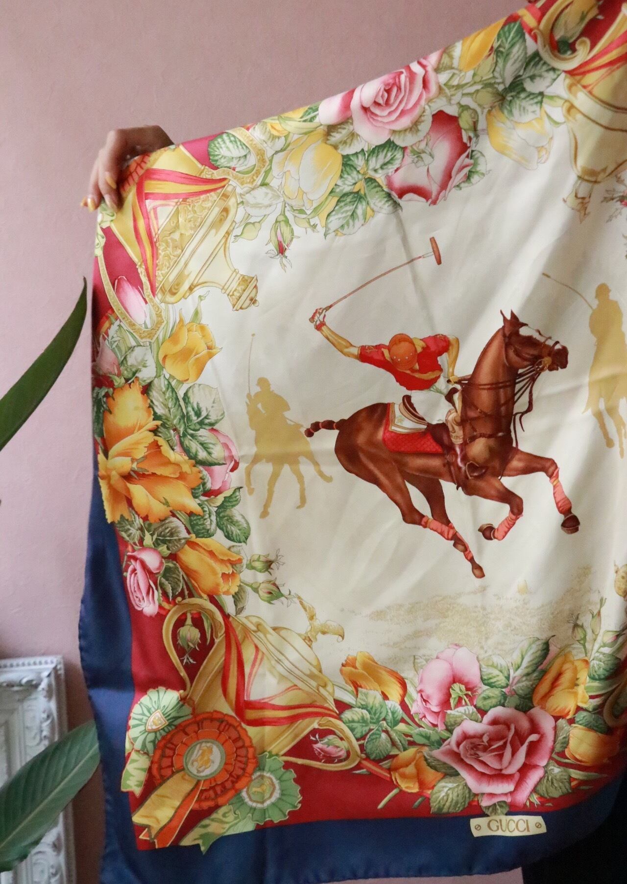 大人のエレガントスタイルにハマるグッチの大判シルクスカーフが入荷。