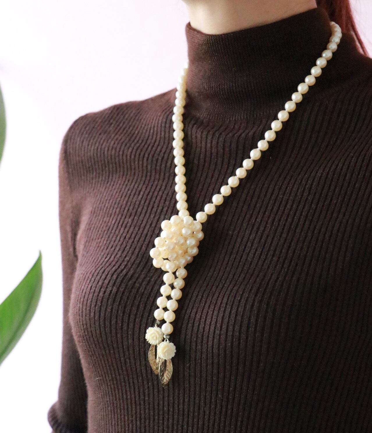 手彫りされたローズがアクセントになったエレガントでユニークなネックレスです。