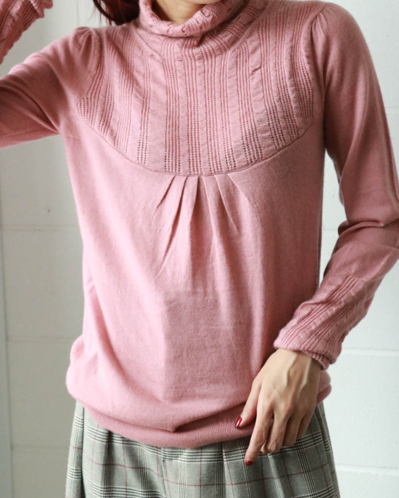 ニューヨークを拠点としているアメリカで最も大きなカシミアニットのサプライアーであるカシミアハウス社から誕生したブランドセイ(TSE)。そんなセイから落ち着いたピンクの可愛いニットが入荷。首から胸元にかけて、そして袖口に可愛いクロシェットのデザインが、ピンクボディーによりフェミニン感を加えるロマンチックなセーター