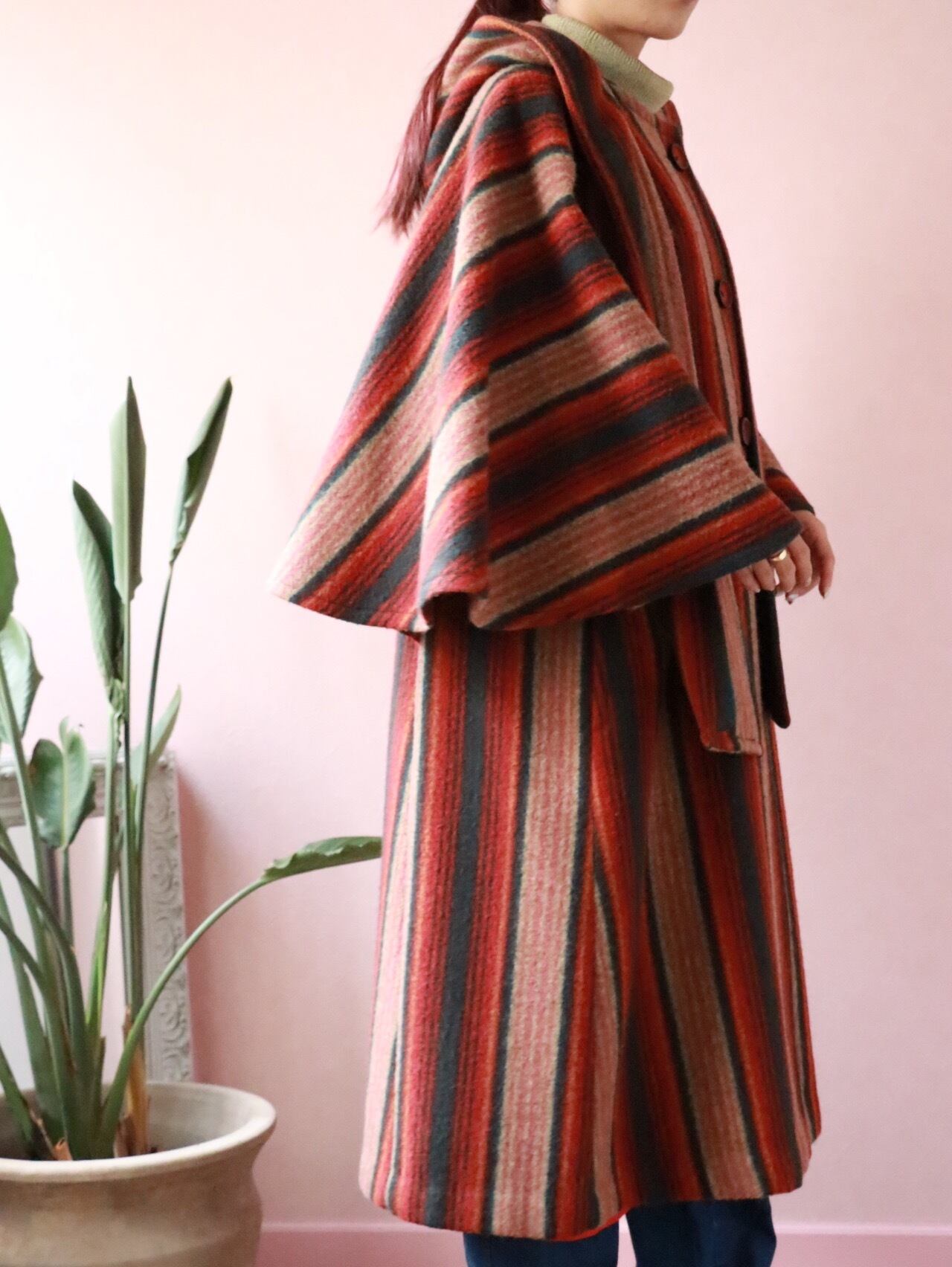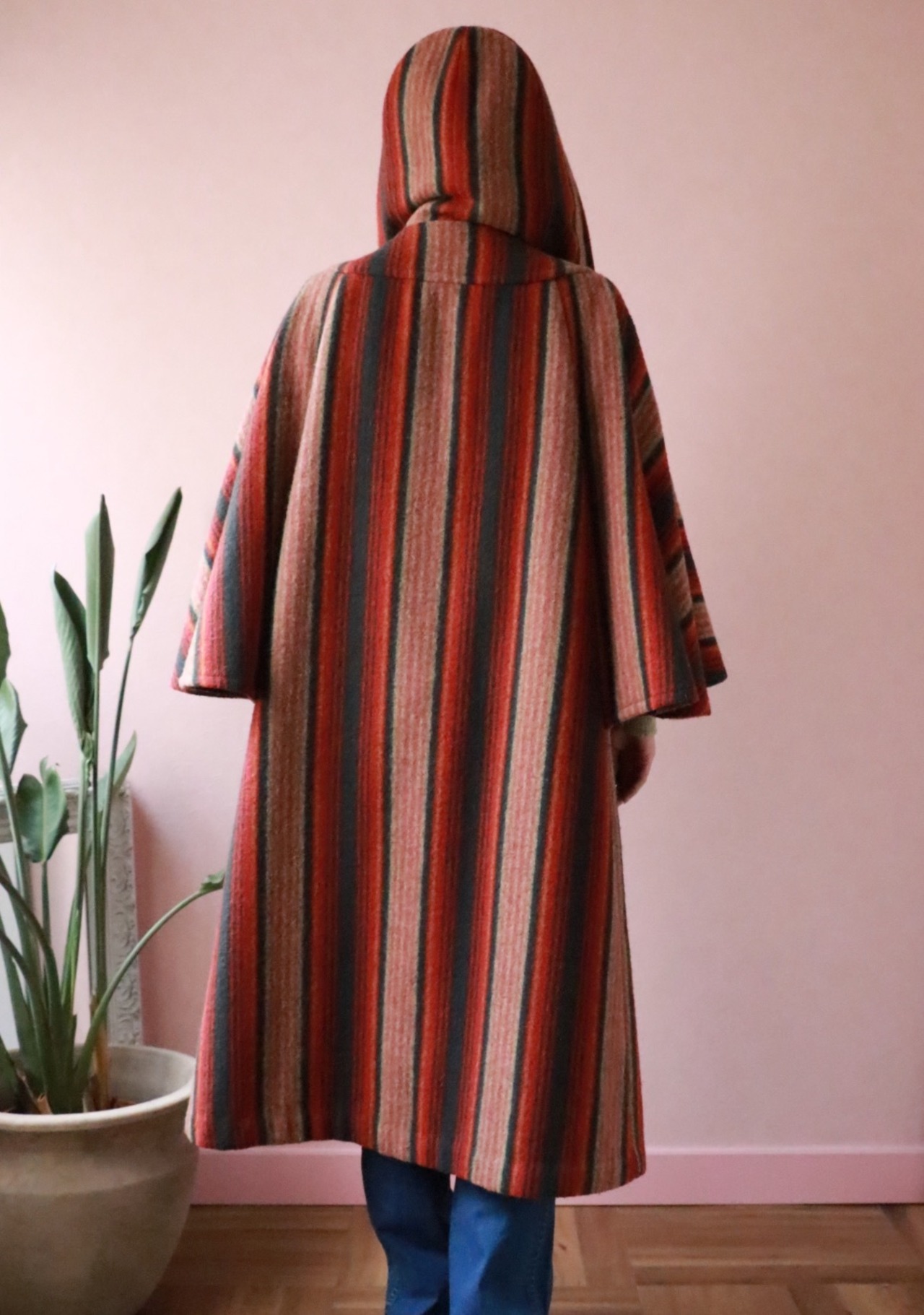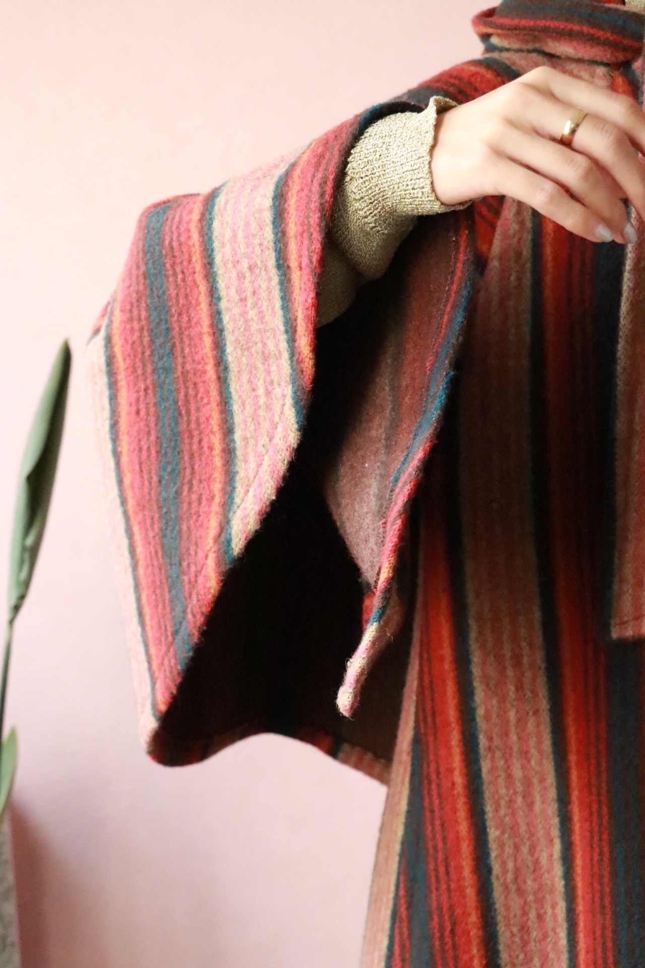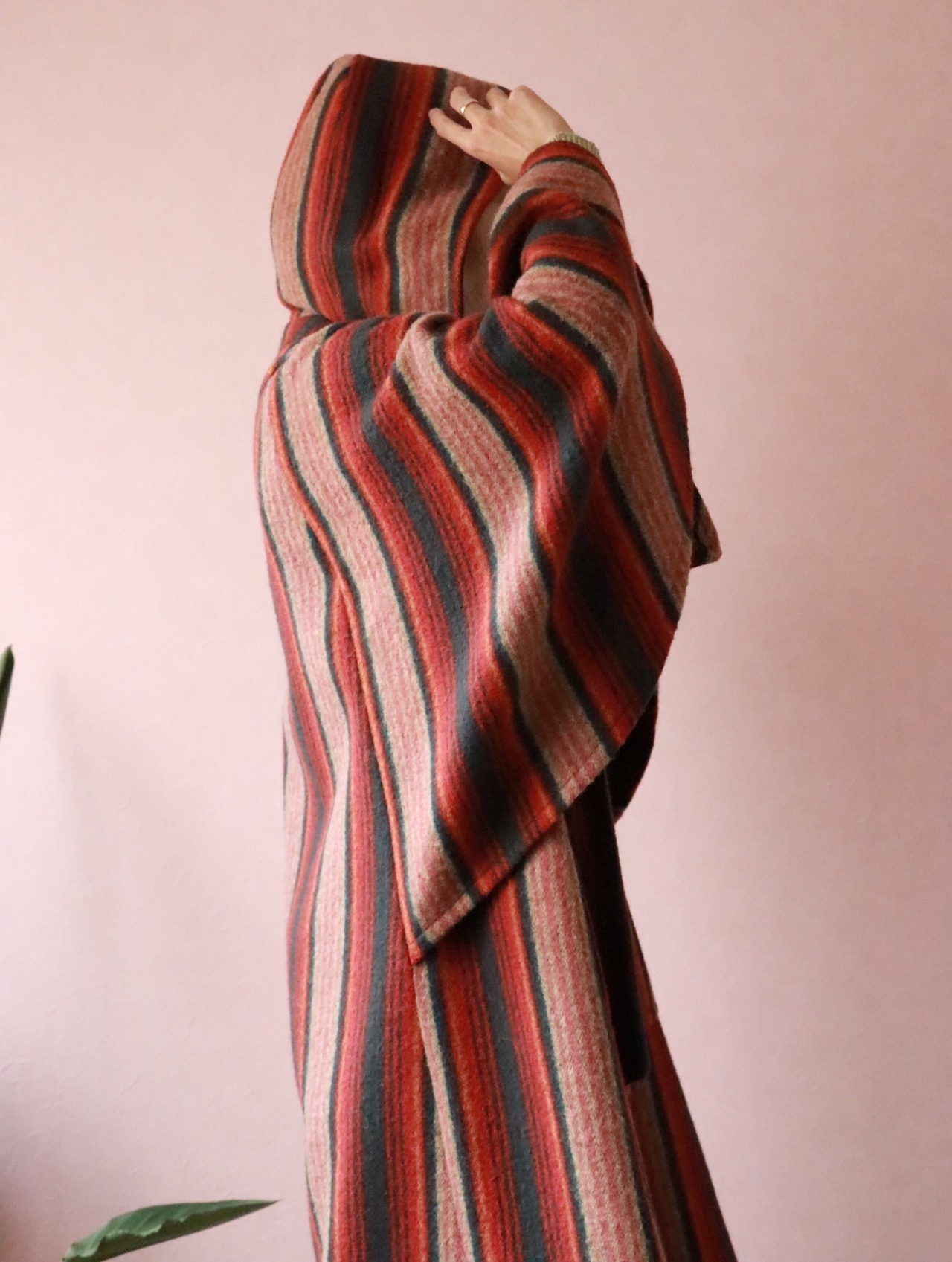 首元はマフラーつきフードで、モダンとレトロをバランスよく組み合わせた一点