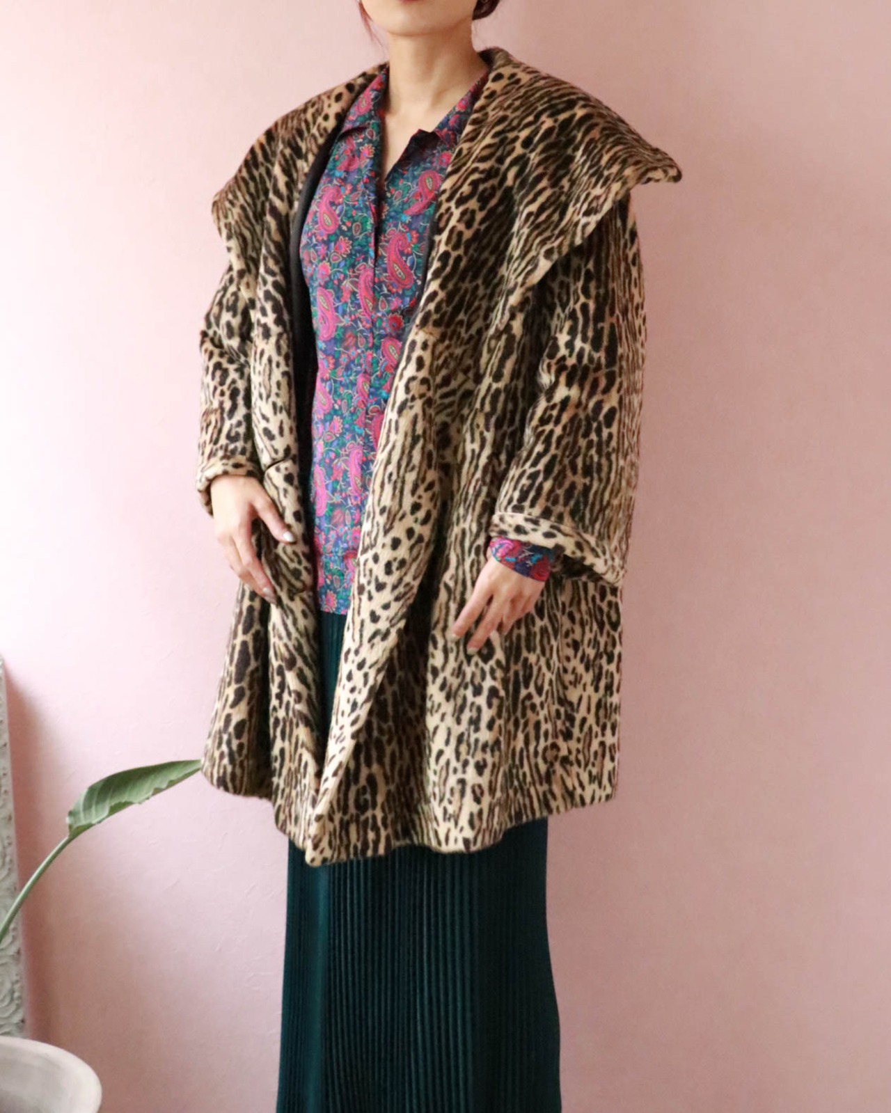 60'sならではのビッグボタンにすっきりしたAライン。デザイン力に加えて暖かさも兼ね揃えた素晴らしいコートです。毎シーズン大人気のレオパード柄は、カジュアル・フェミニン・綺麗目…と意外にも様々な着こなしで活躍するのでおすすめの一着です。