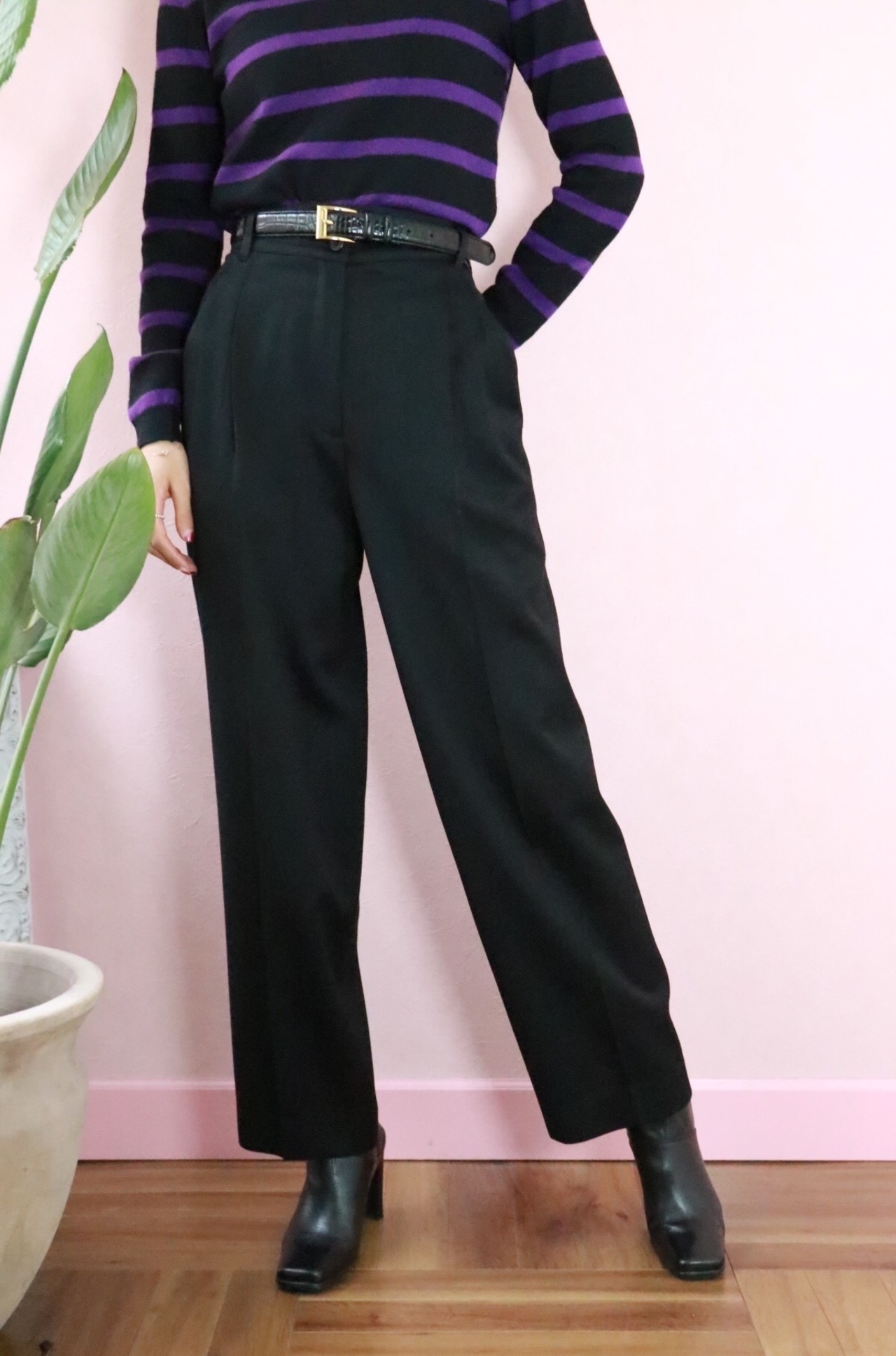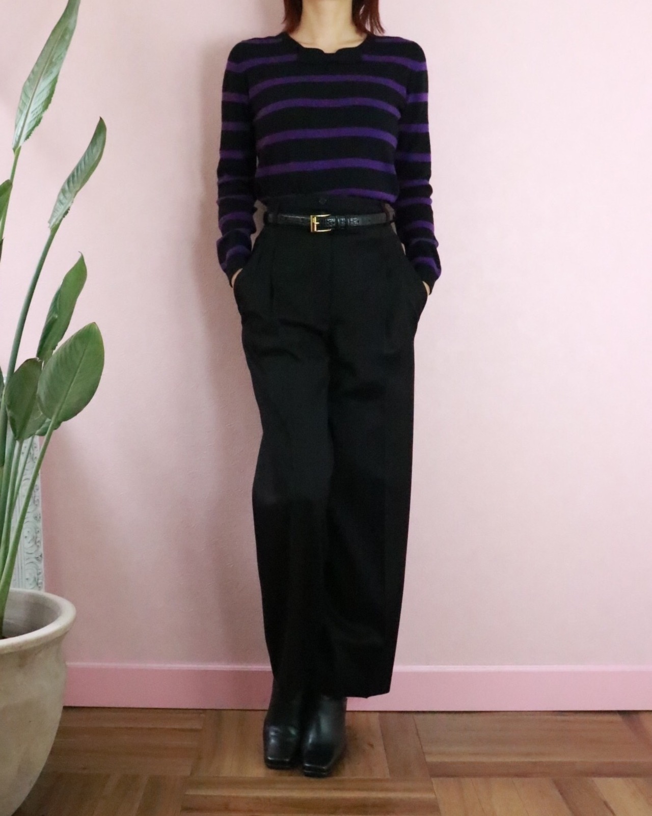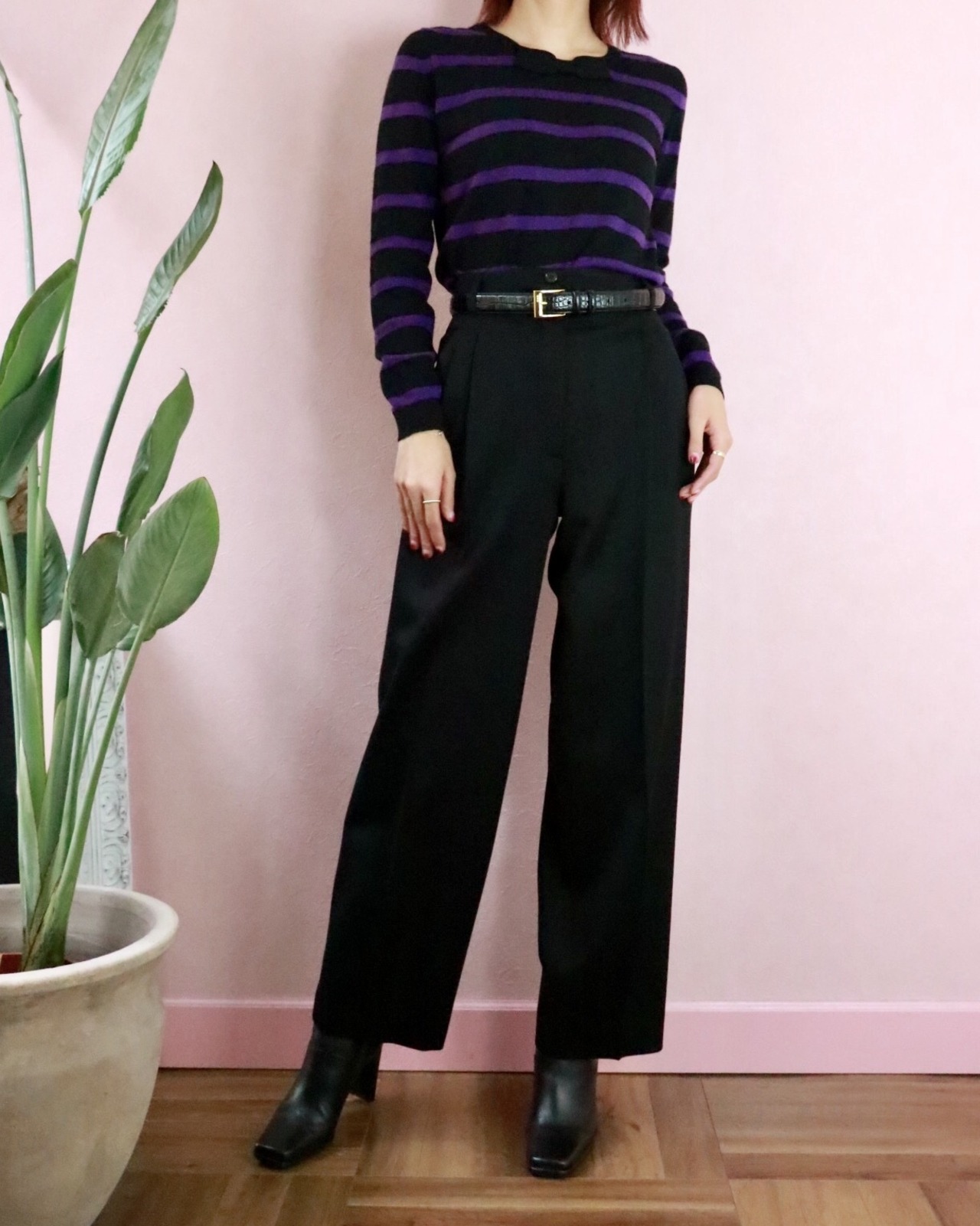 レッグラインを美しく魅せるハイウエストとセンタープレスのクラシカルなデザイン。