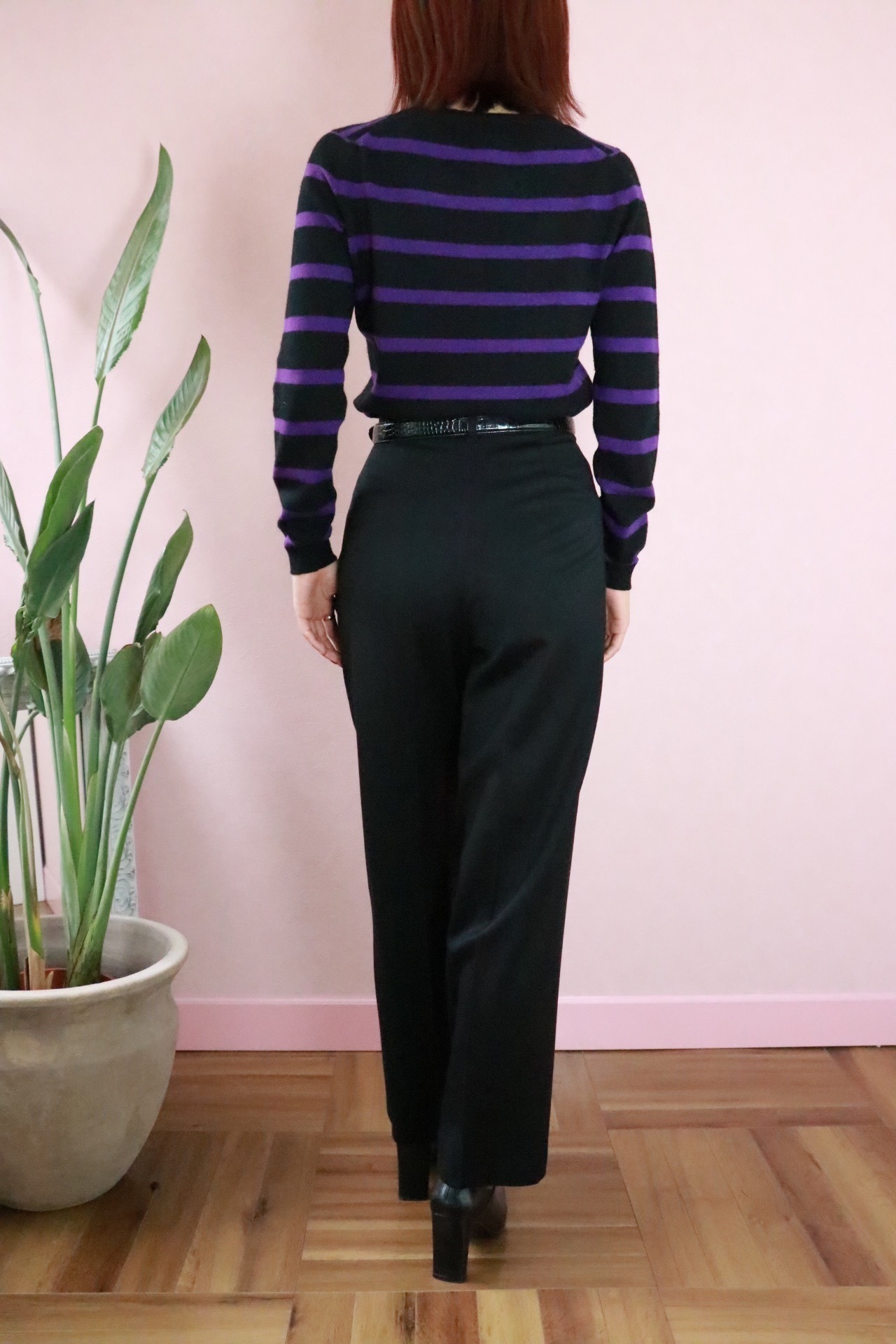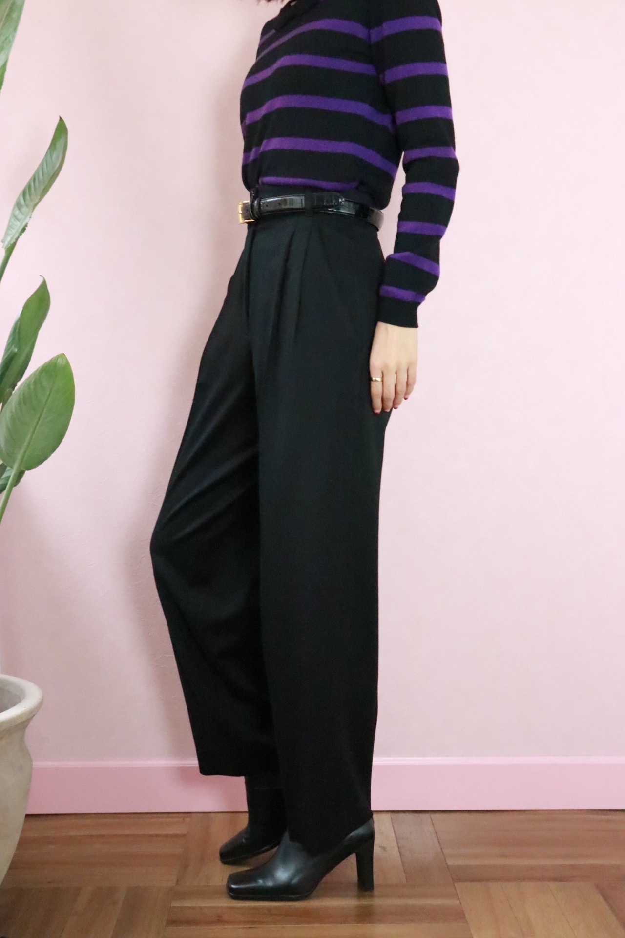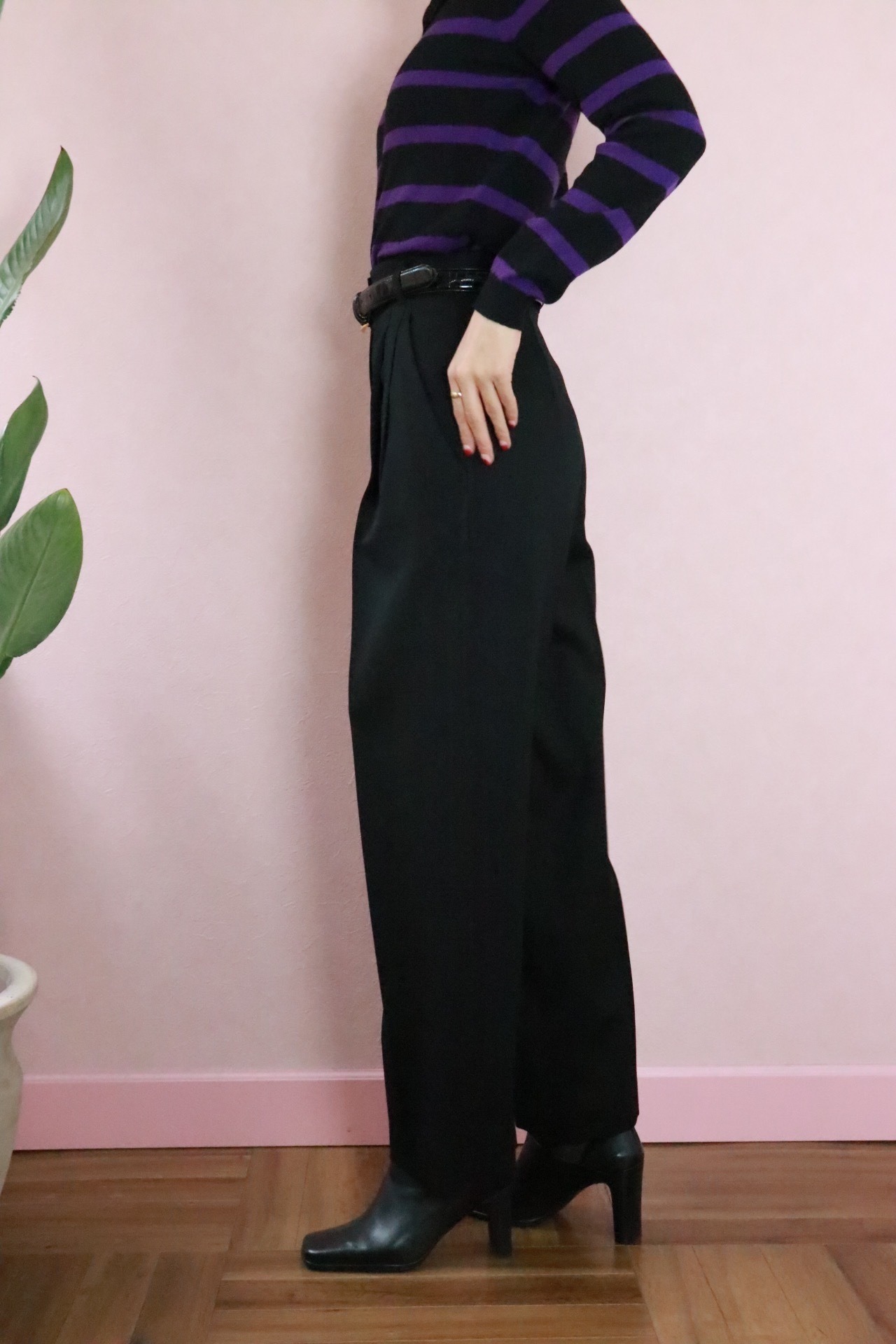 レッグラインを美しく魅せるハイウエストとセンタープレスのクラシカルなデザイン。