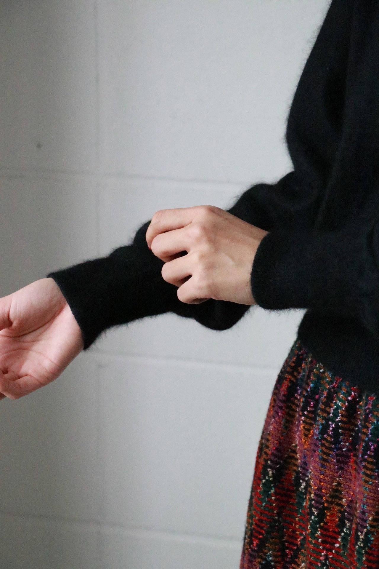 シルクxウールのふわっと女性らしい素材はとても暖かく着心地の良さも抜群。
