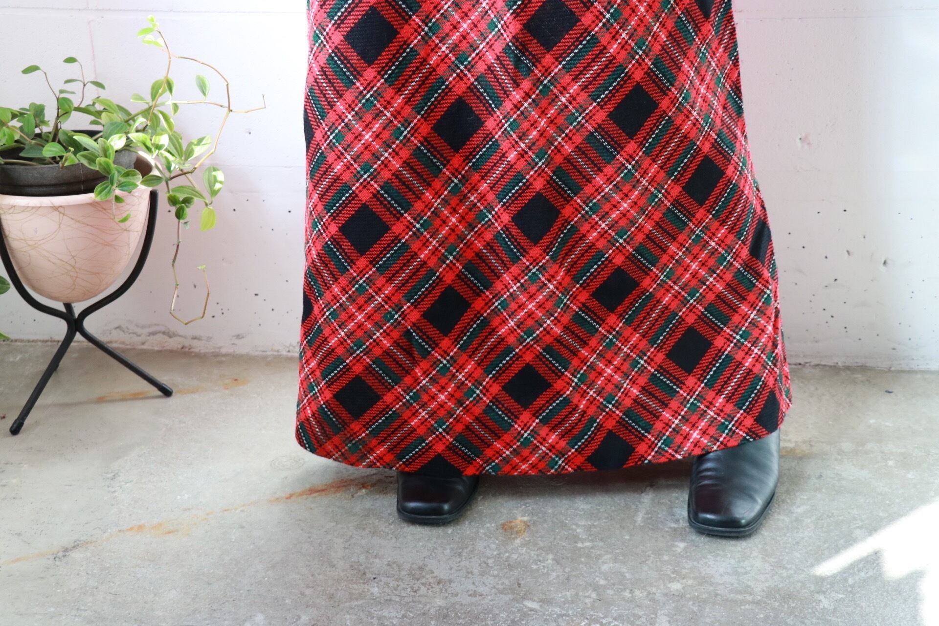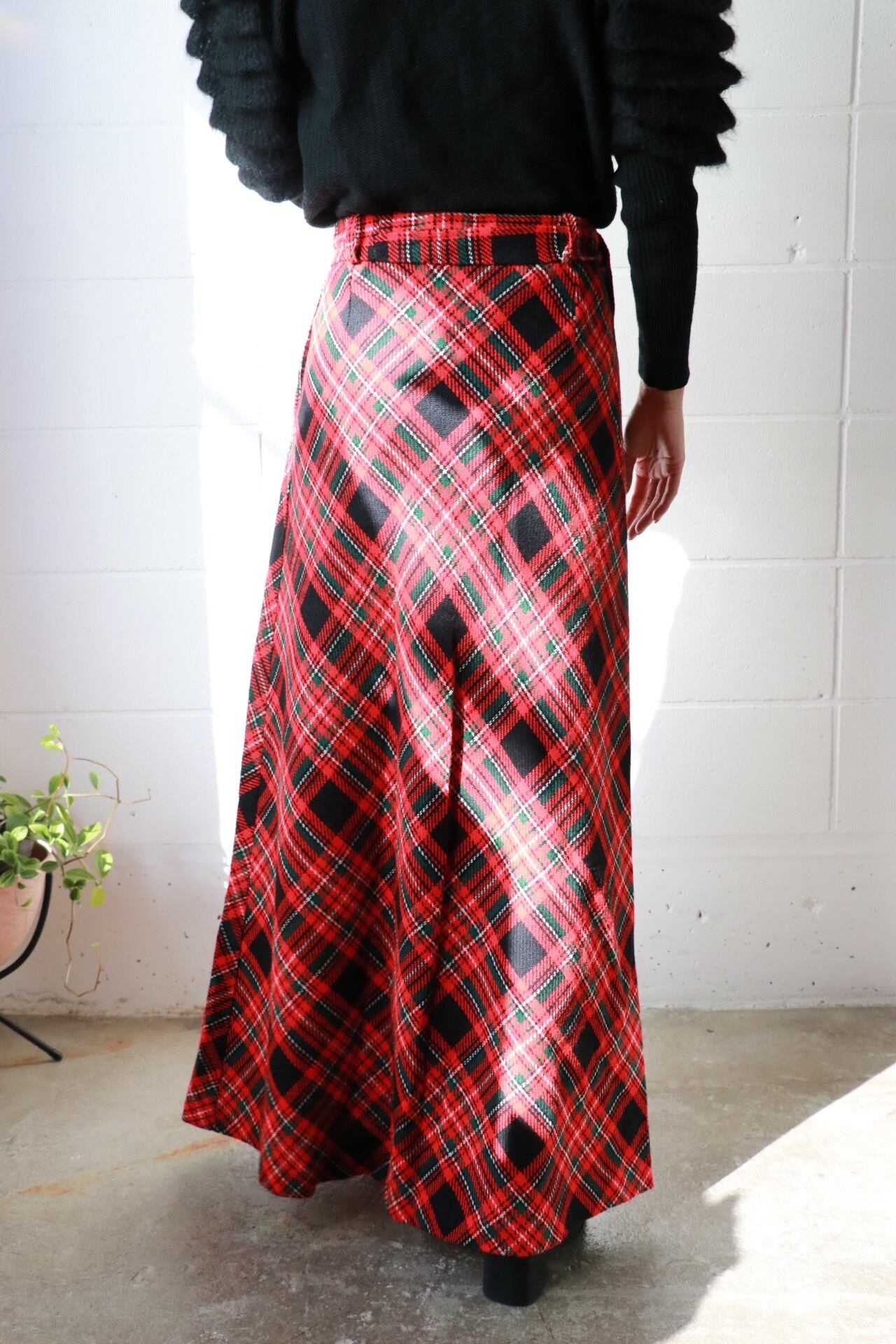 Tartan check maxi flare skirt