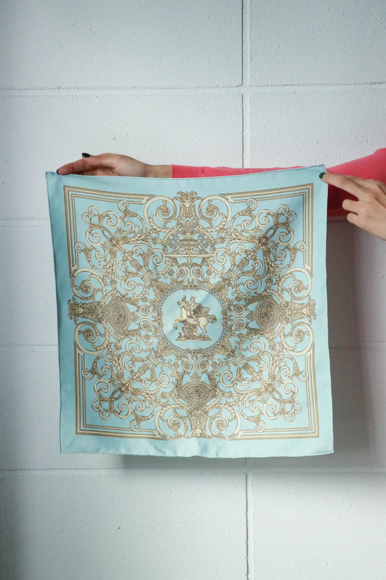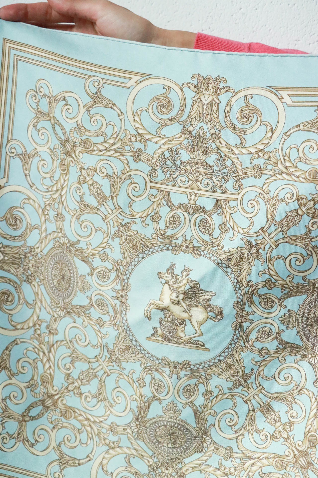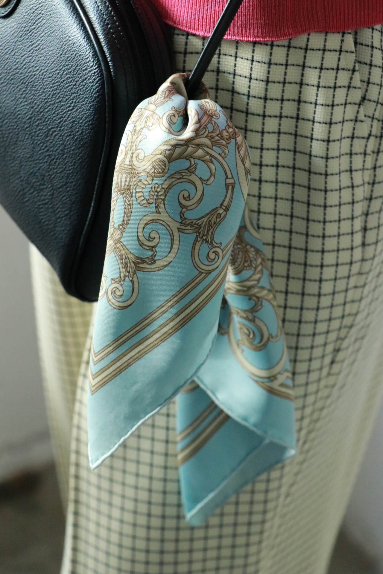 春めくライトブルーが嬉しいHERMESのミニスカーフが入荷。
