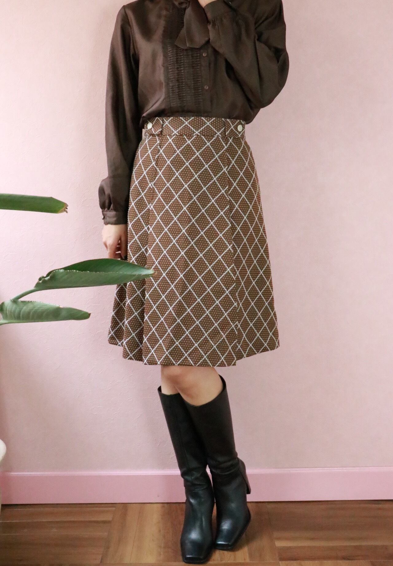 ブラウンカラーにホワイトのチェックと細かいドット柄が70年代らしい一着