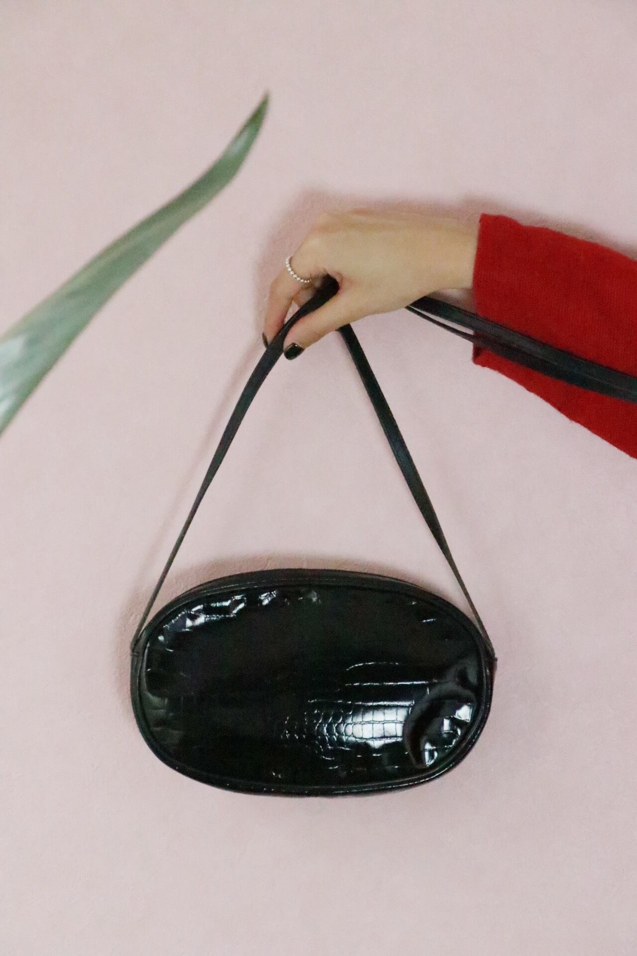 艶やかな型押しレザーにクレージュロゴ、楕円型でコンパクトなサイズ感がまさに今。