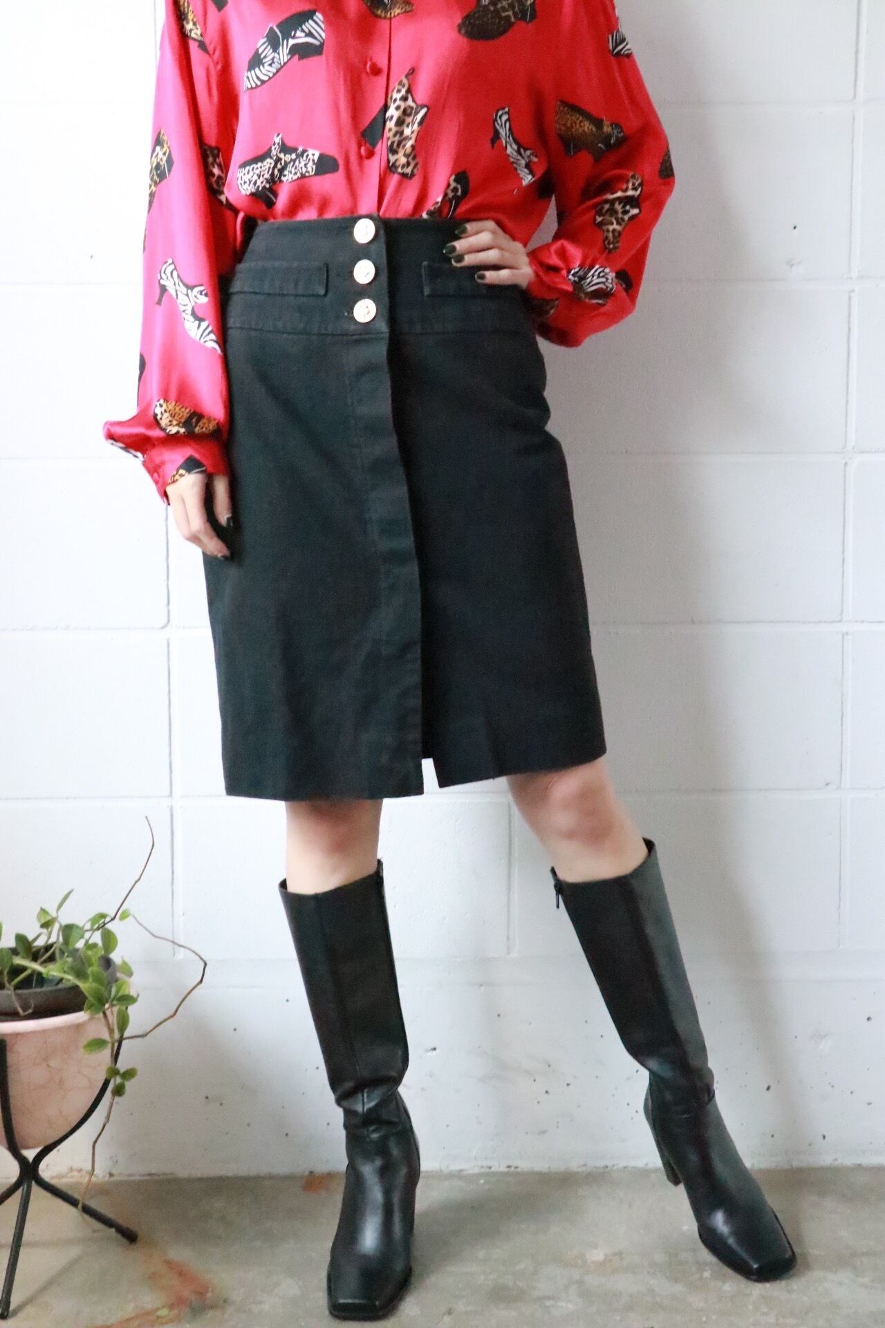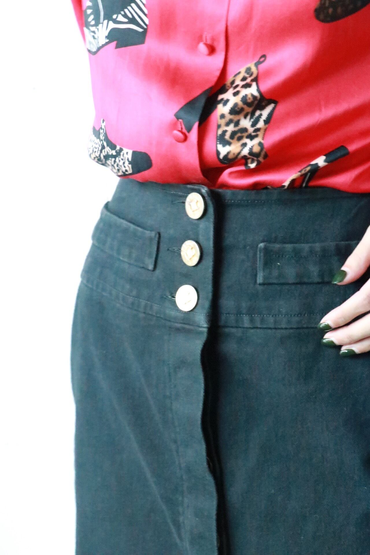 ビッグサイズのロゴボタンがポイントになったフランス製セリーヌのデニムミニスカート。