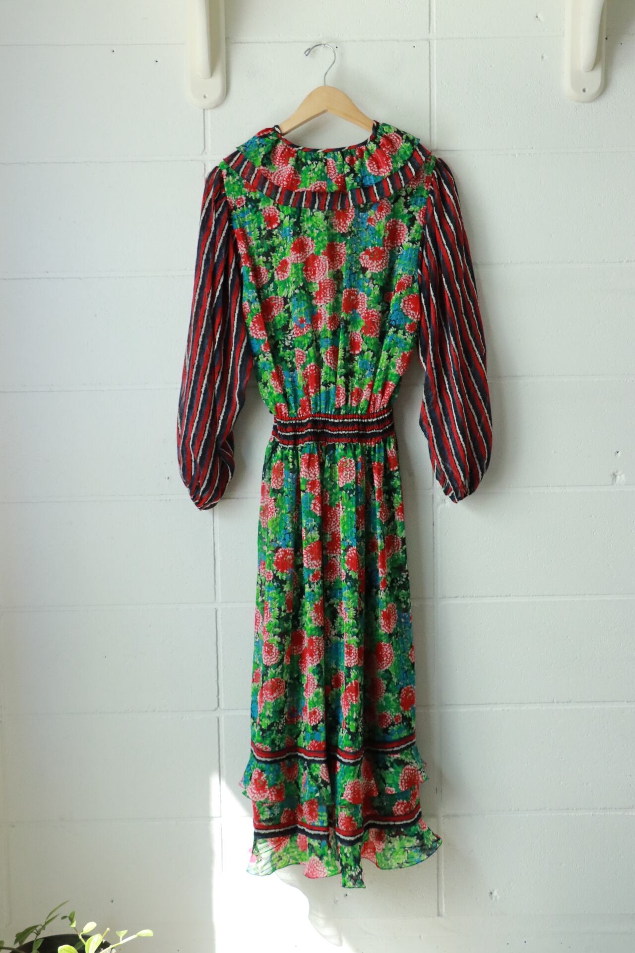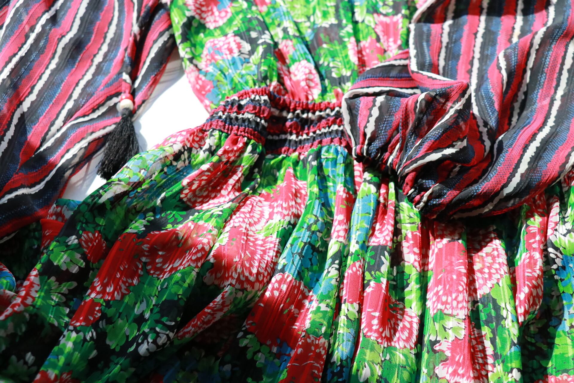 色彩豊かな花柄が春を呼び込むこちらのドレスは、ダイアンフレイスのもの。