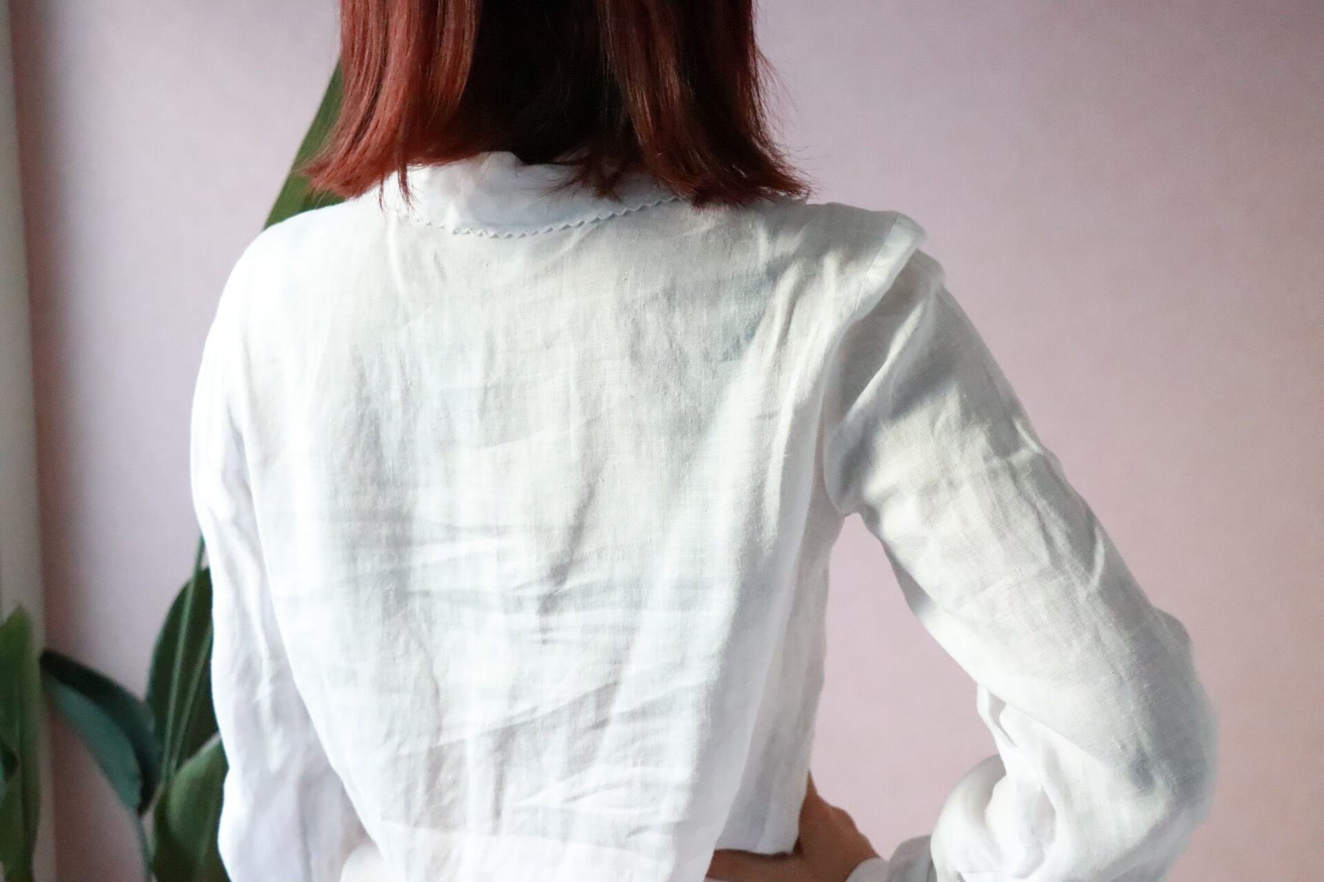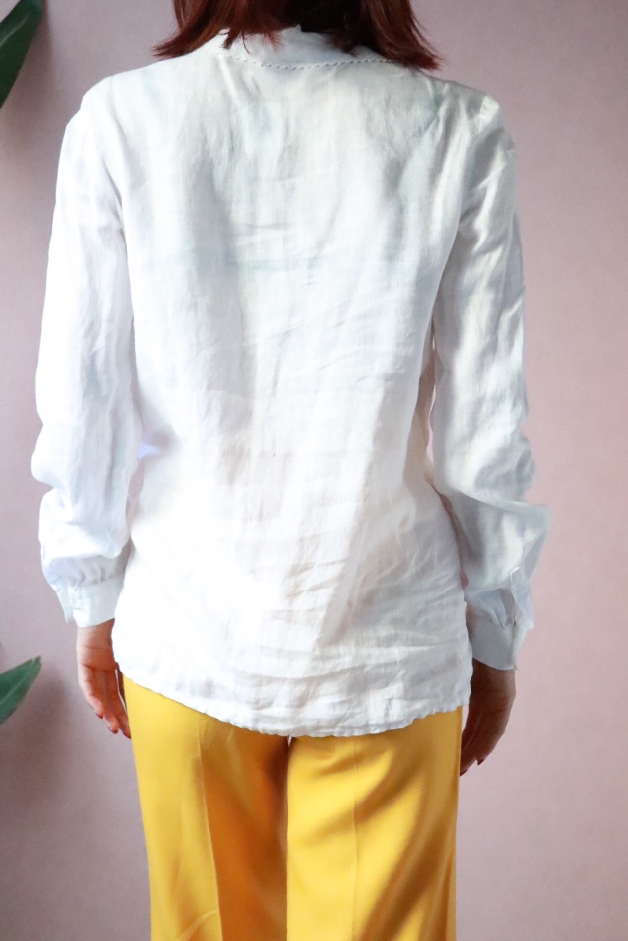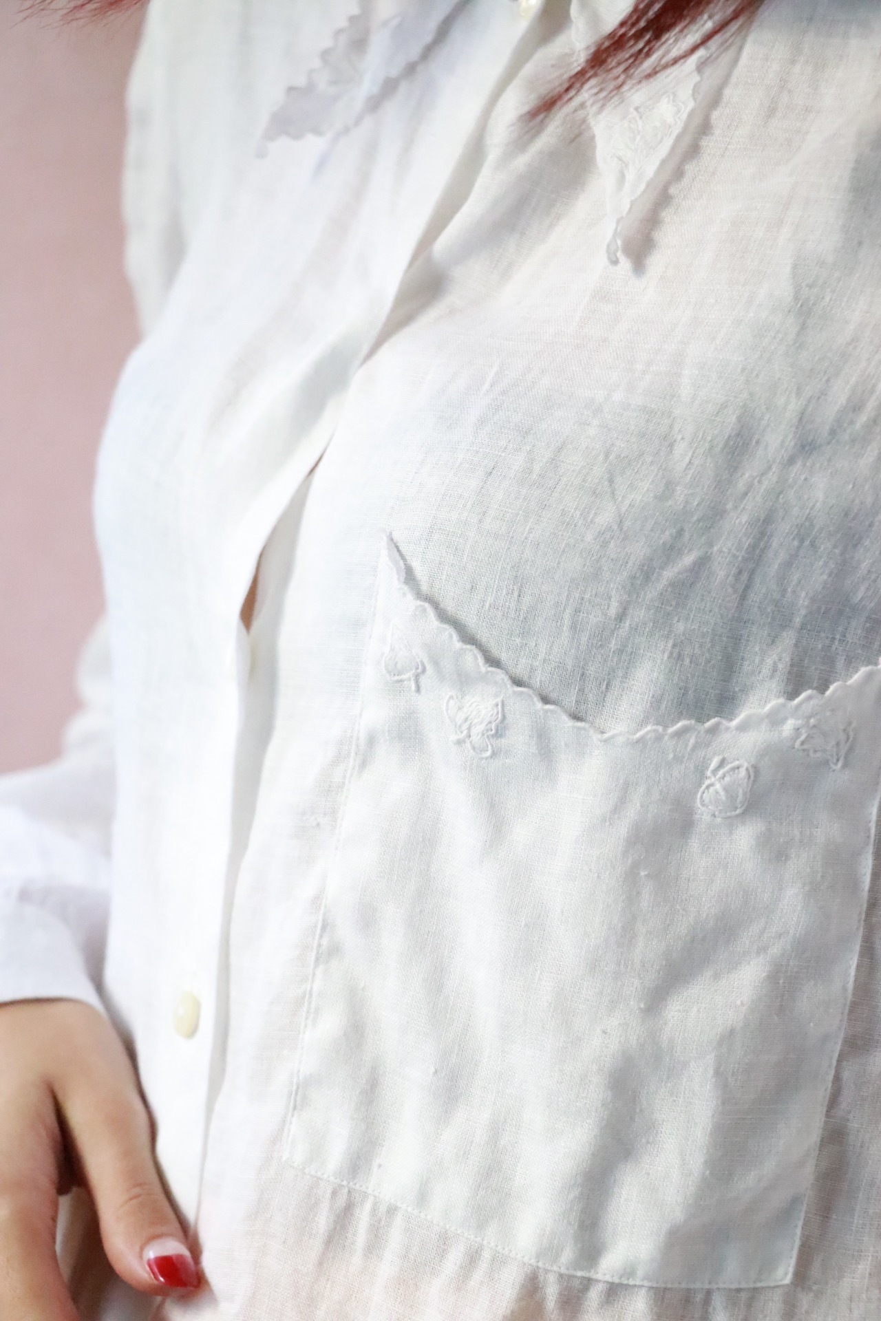 スカラップの襟を彩る繊細な刺繍が美しいオールドグッチのブラウスが入荷しました。