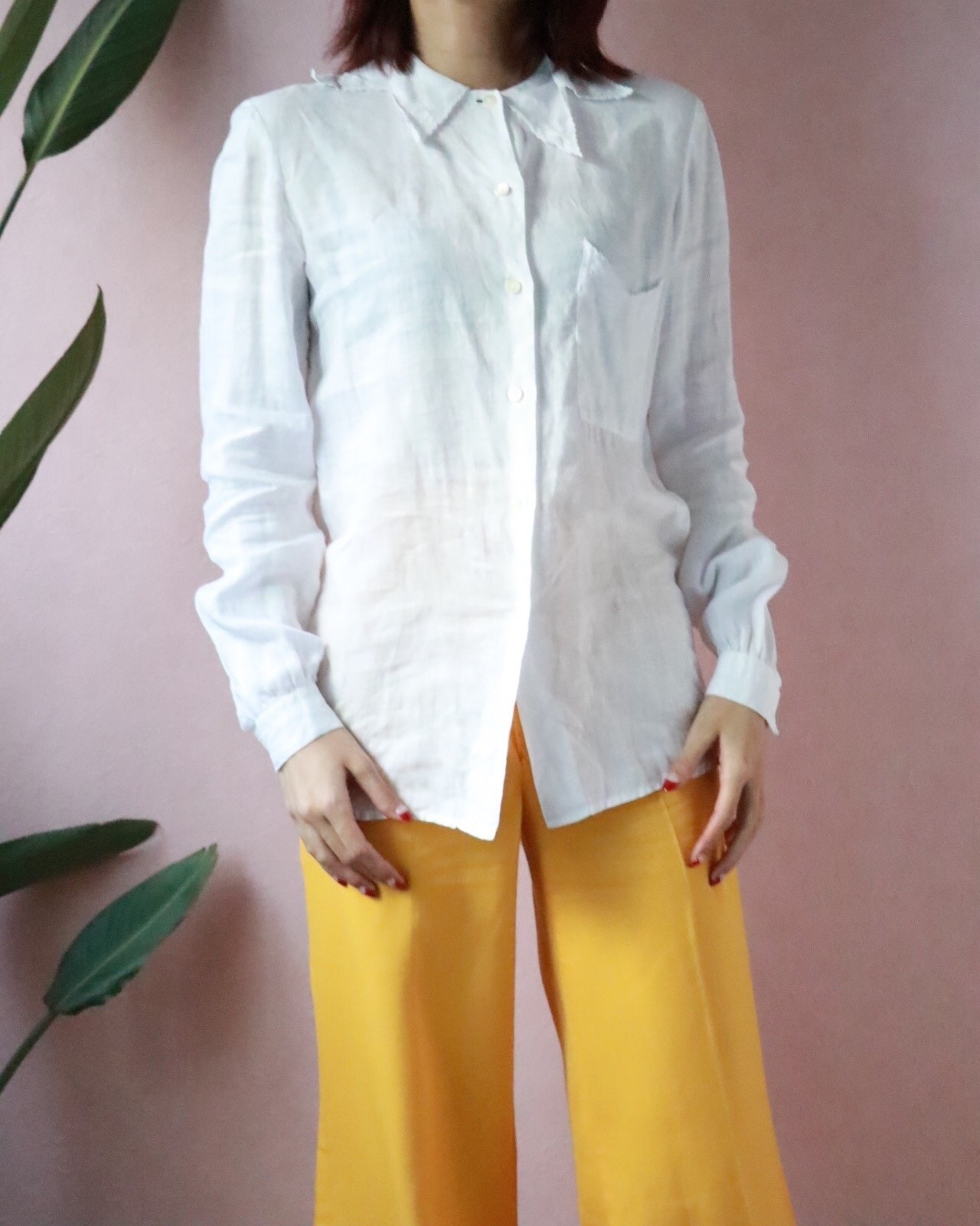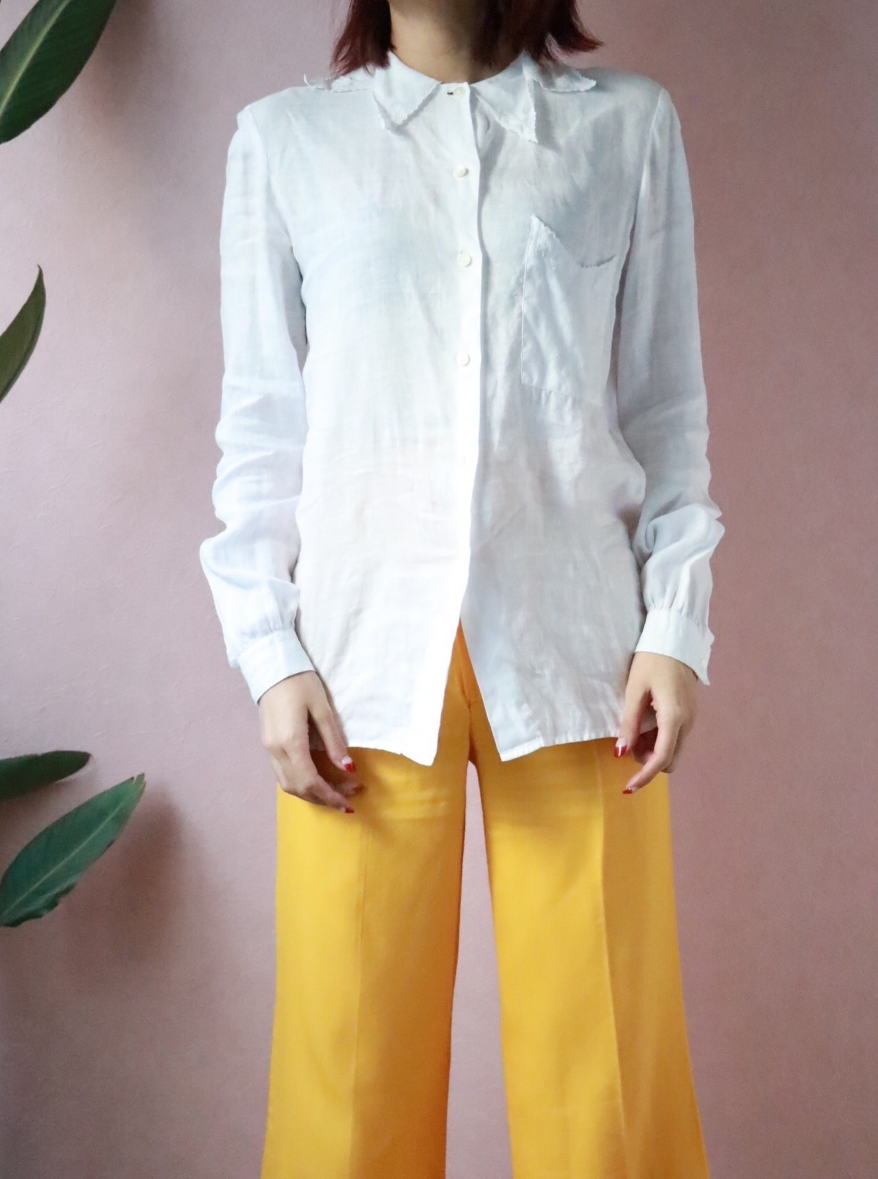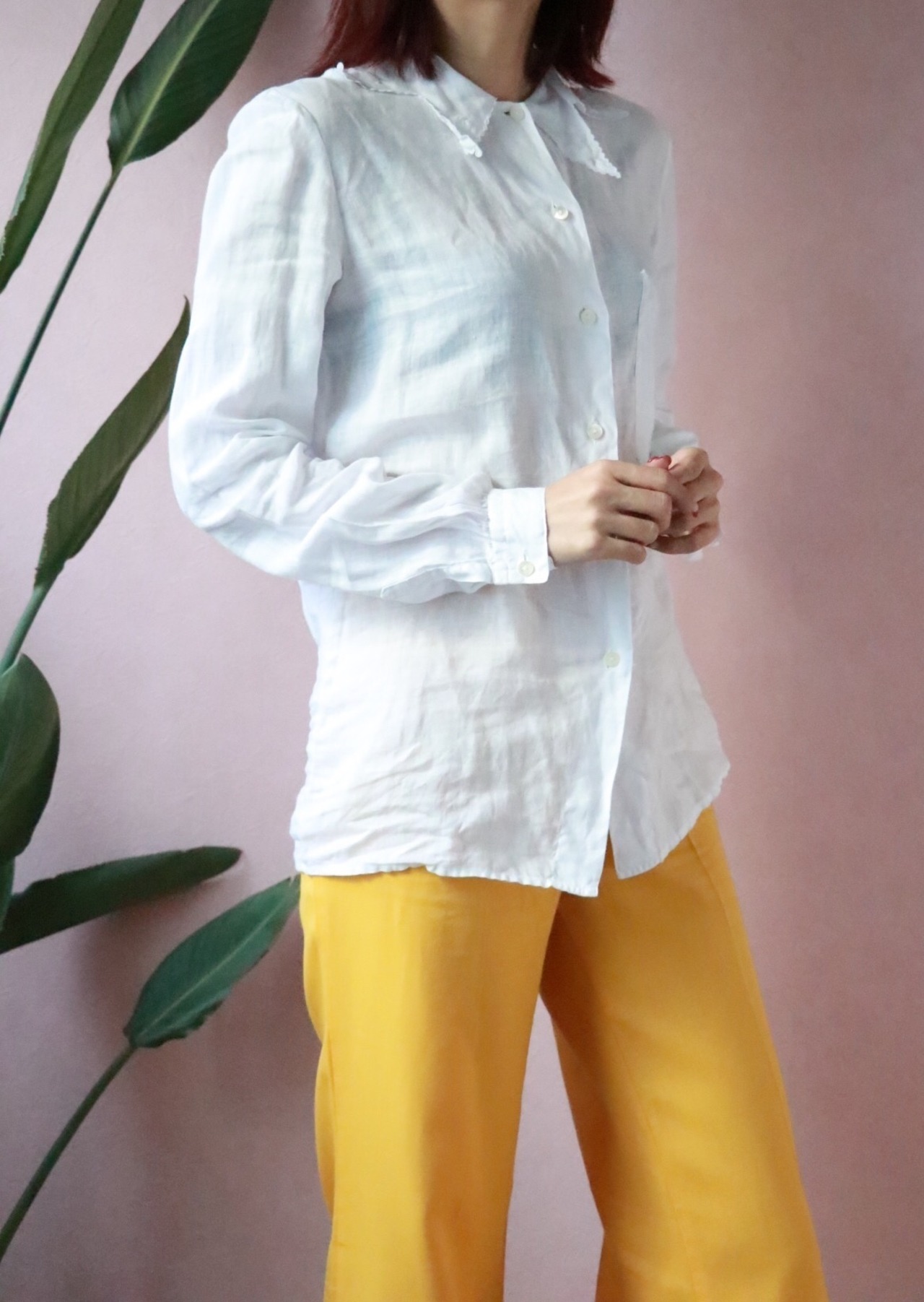 スカラップの襟を彩る繊細な刺繍が美しいオールドグッチのブラウスが入荷しました。