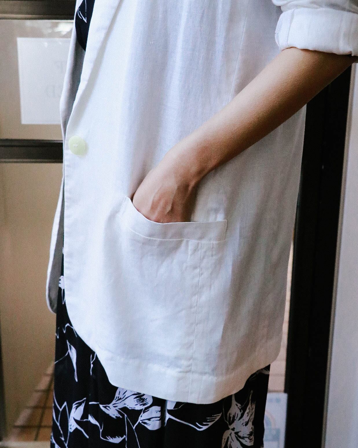 さらっと羽織れるジャケットが活躍するこれからの季節にぴったりな麻100%のジャケットが入荷。かっちりテーラードもくたっとしたシルエットでまろやかな印象に。