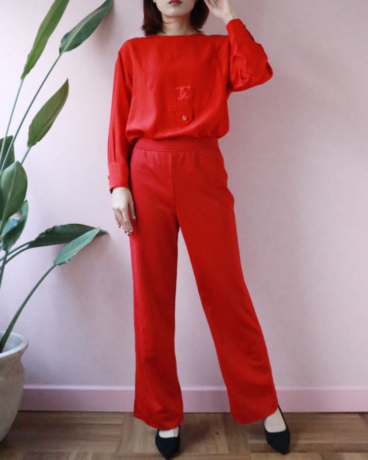 鮮やかなレッドが映える美脚効果も抜群な70'sのパンツはGIVENCHY