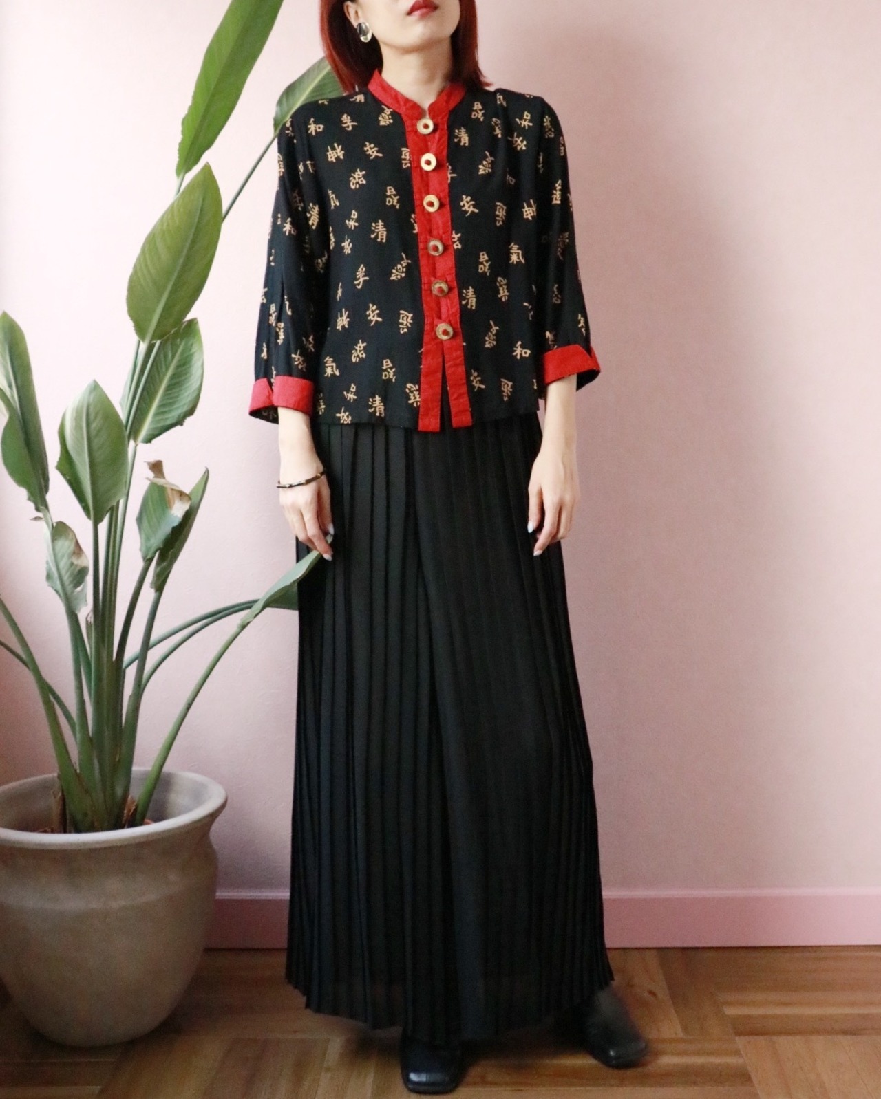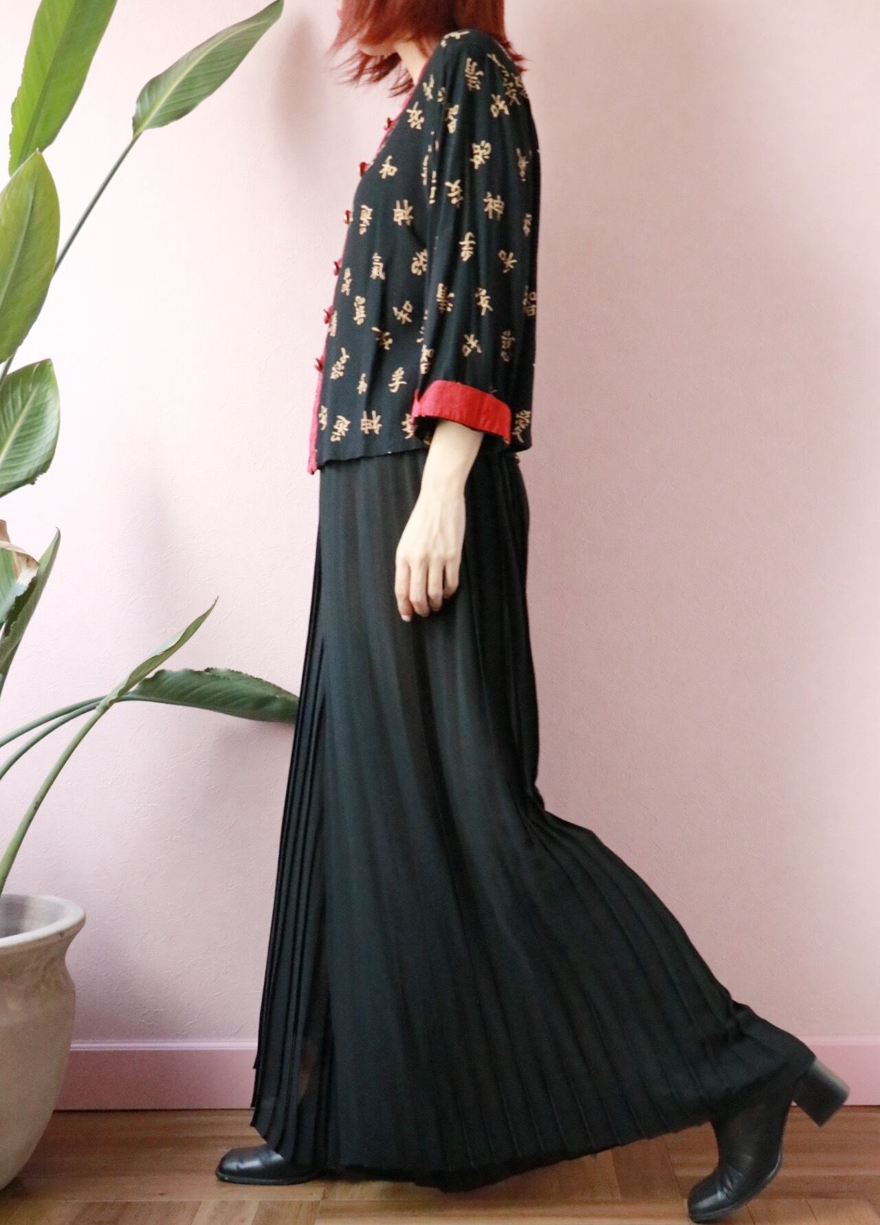 モードなブラック×優美なプリーツが圧倒的な存在感を放つ大胆無敵なデザイン。