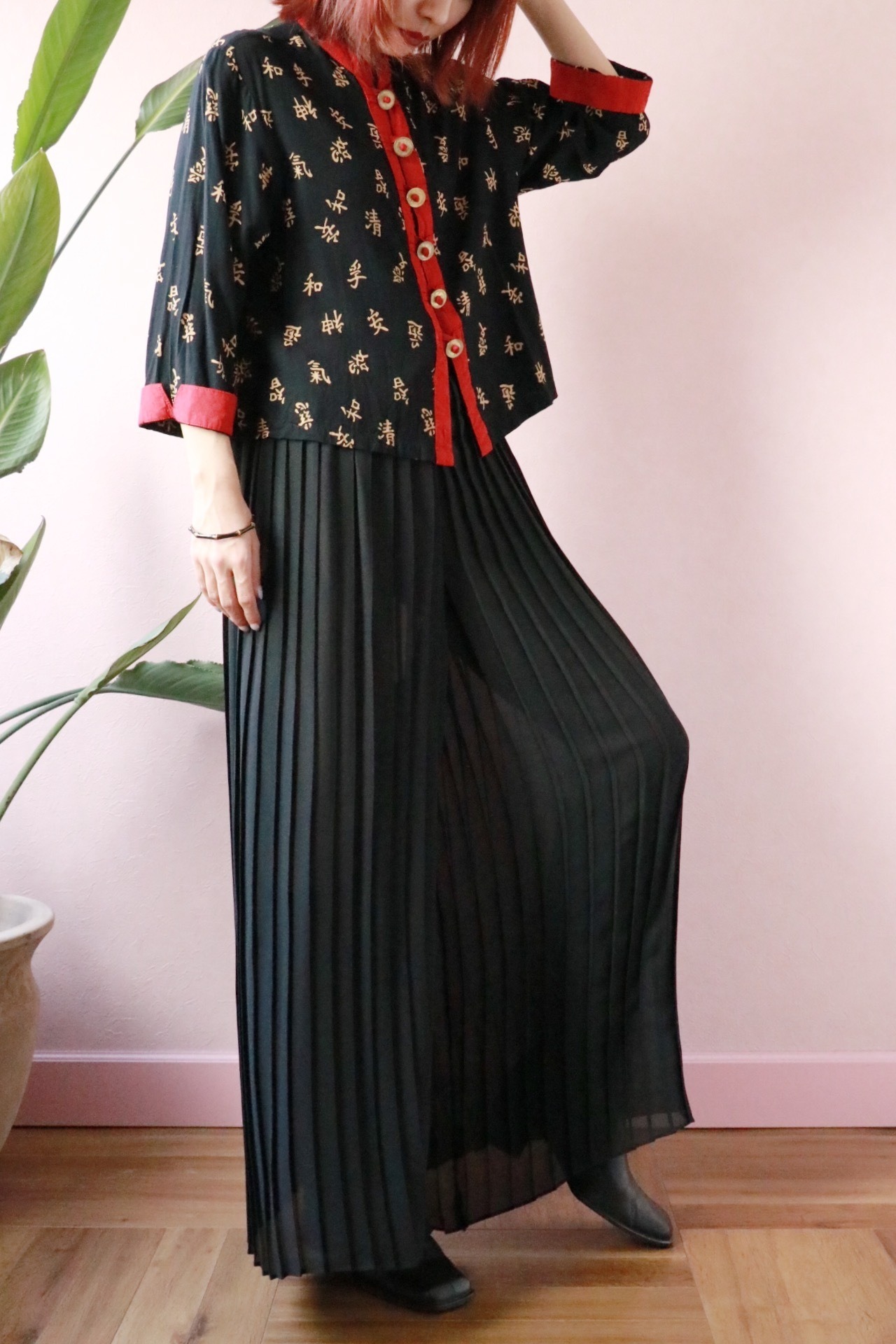 一見スカートのようにもみえるスーパーワイドシルエットのパンツです。