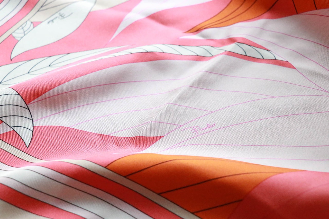 エミリオ・プッチは60〜70年代に一世を風靡し、各界のセレブリティにも沢山の熱狂的ファンがいました。遊び心のつまったユニークかつアシッドで鮮明なプリントと大胆な図柄、色を使った通称「プッチ柄」が特徴です。こちらのプリントもヒッピームーブメントを感じさせつつも、品ある色彩感覚はさすがは「プリントの王子」 の異名を持つイタリア出身のエミリオ・プッチならではの一枚です。
