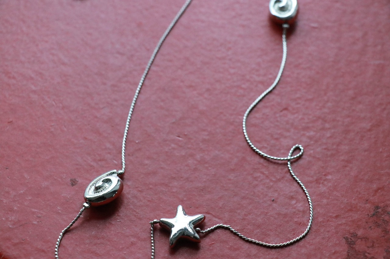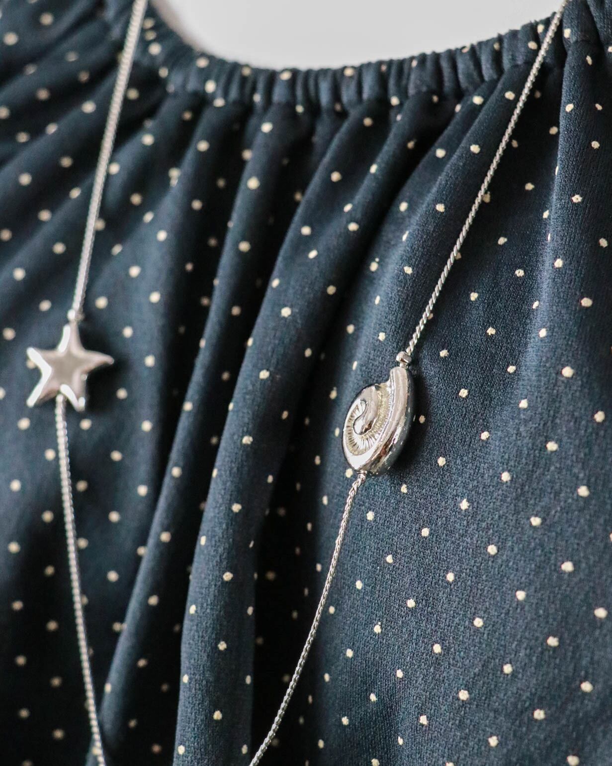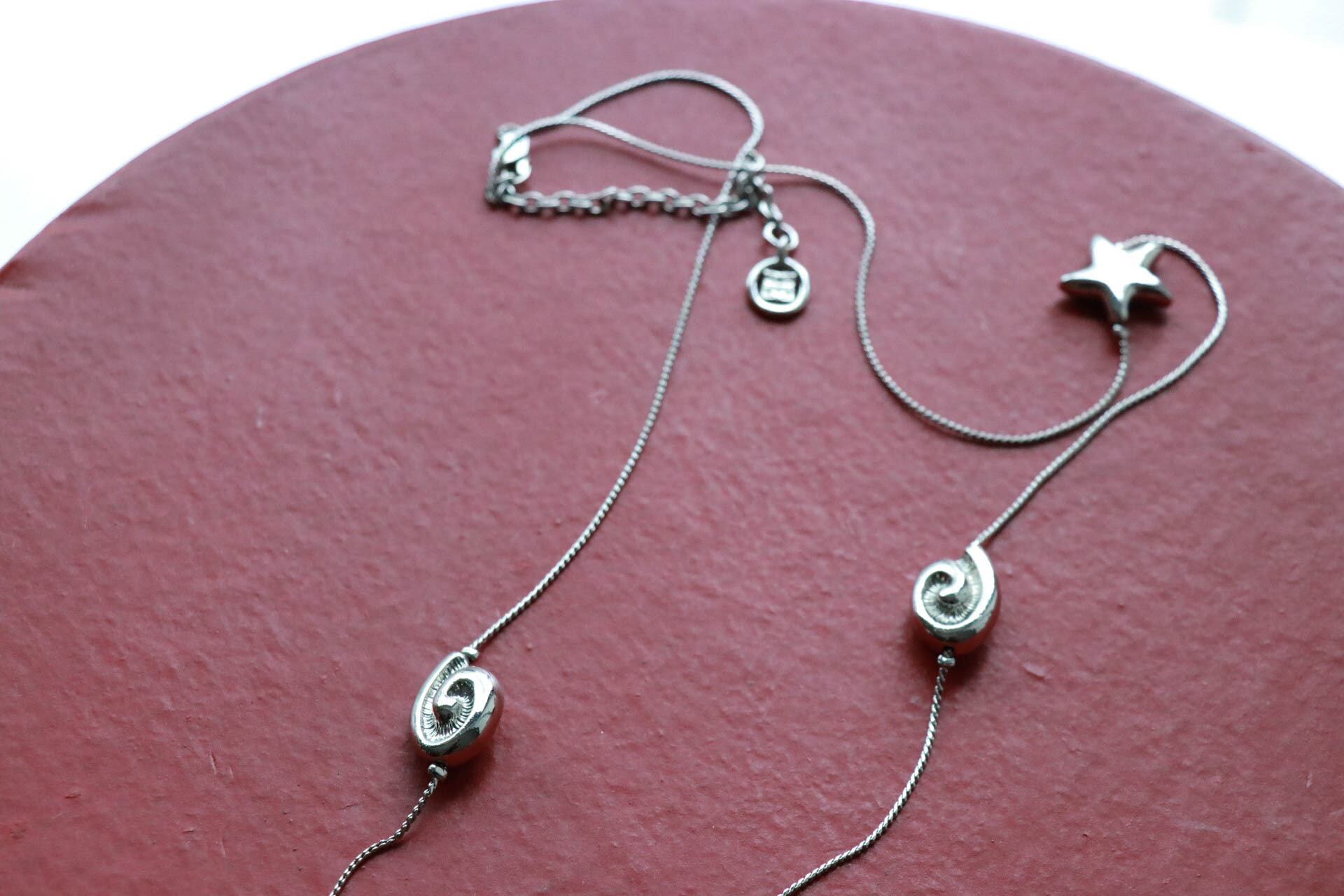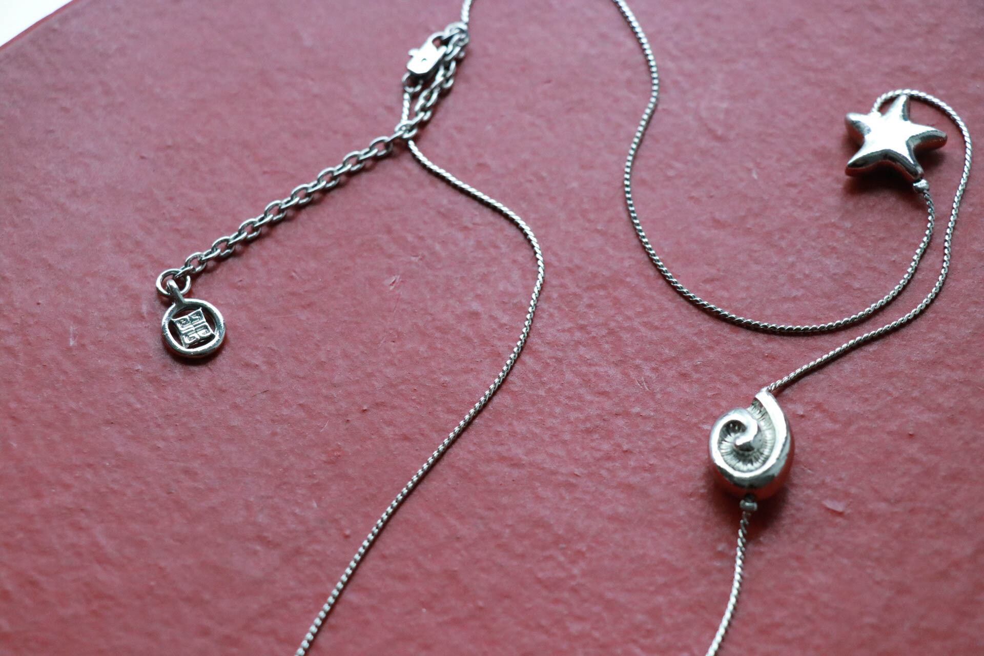 華奢なシルバーチェーンにシーモチーフが施されたデザインがサマーシーズンを想起させます。