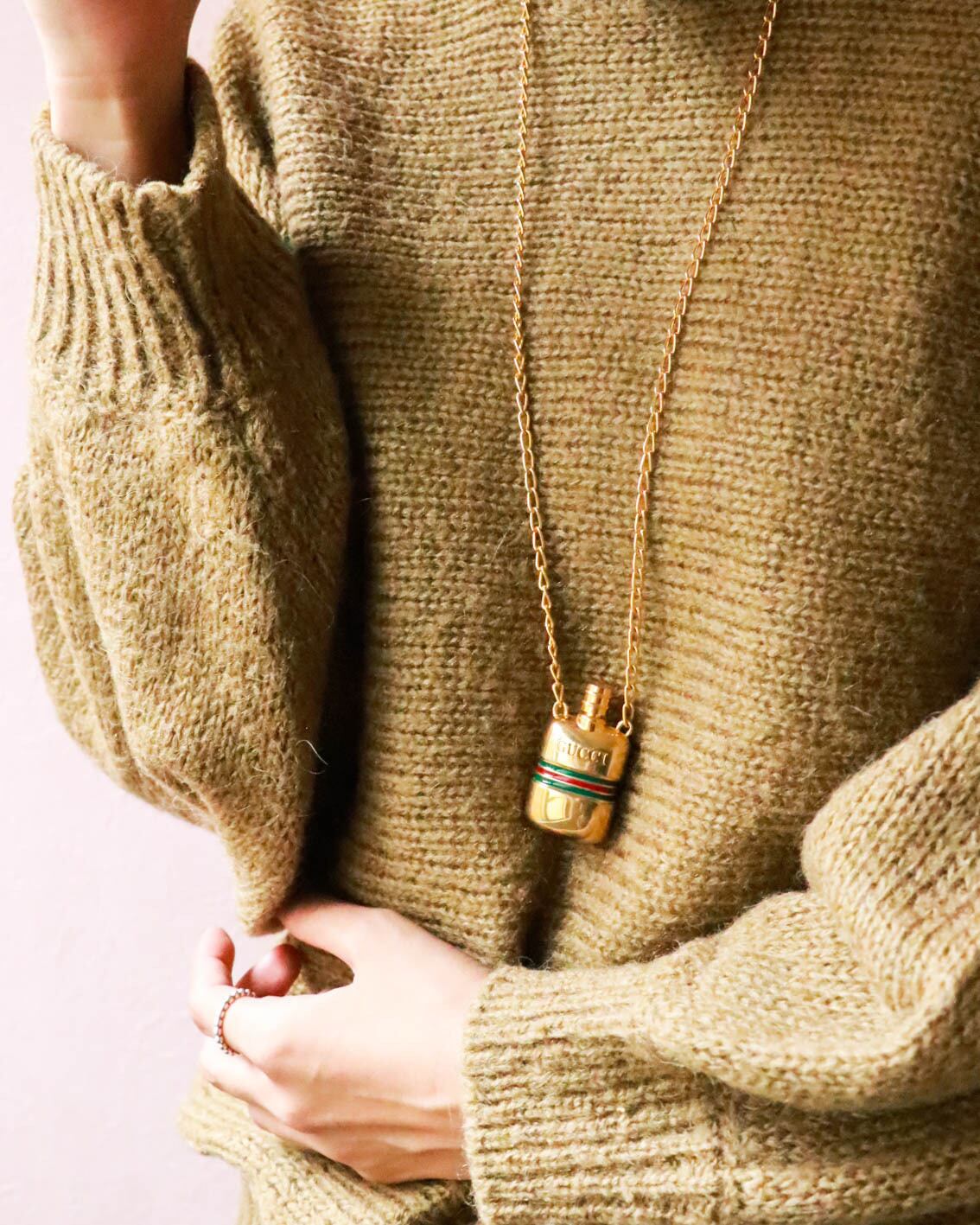高級感漂うグッチのシェリーラインが入ったレトロなパフュームボトルは存在感がありコーディネートのアクセントになります