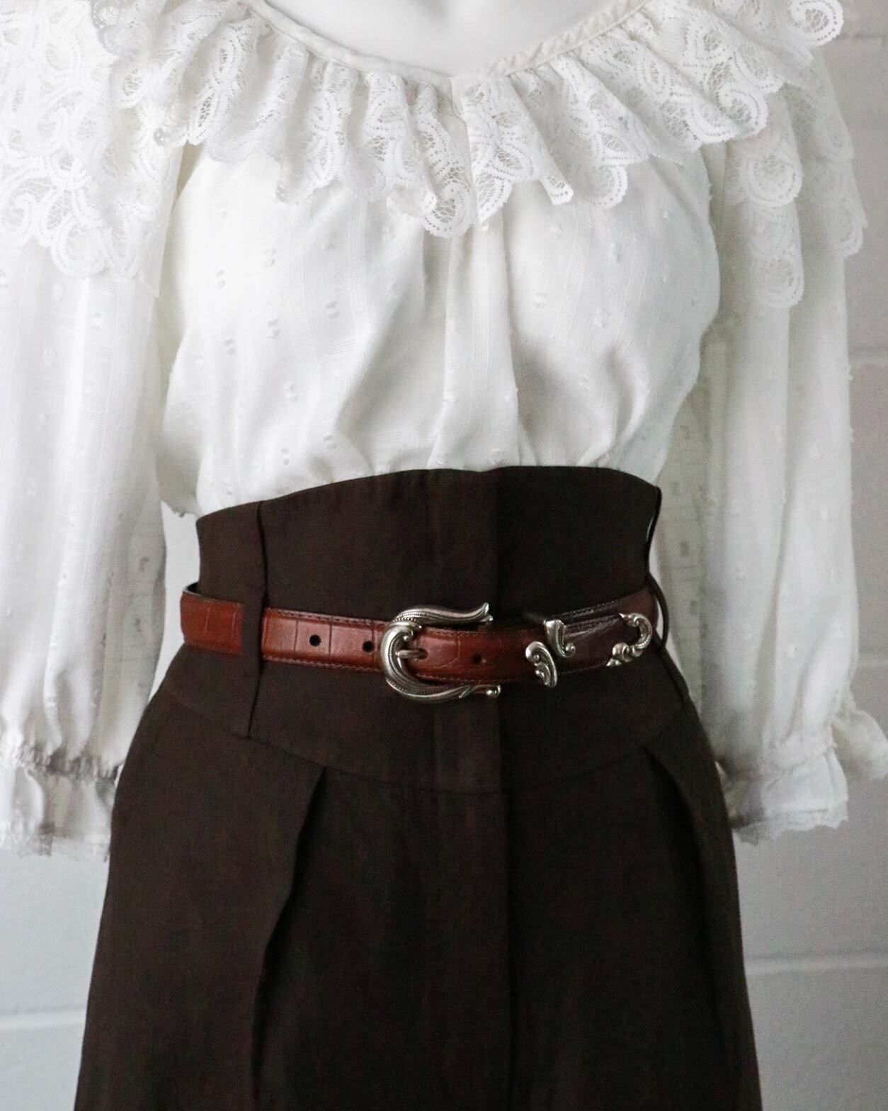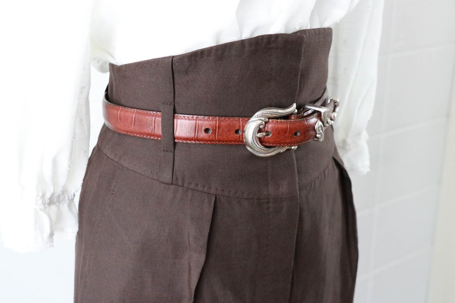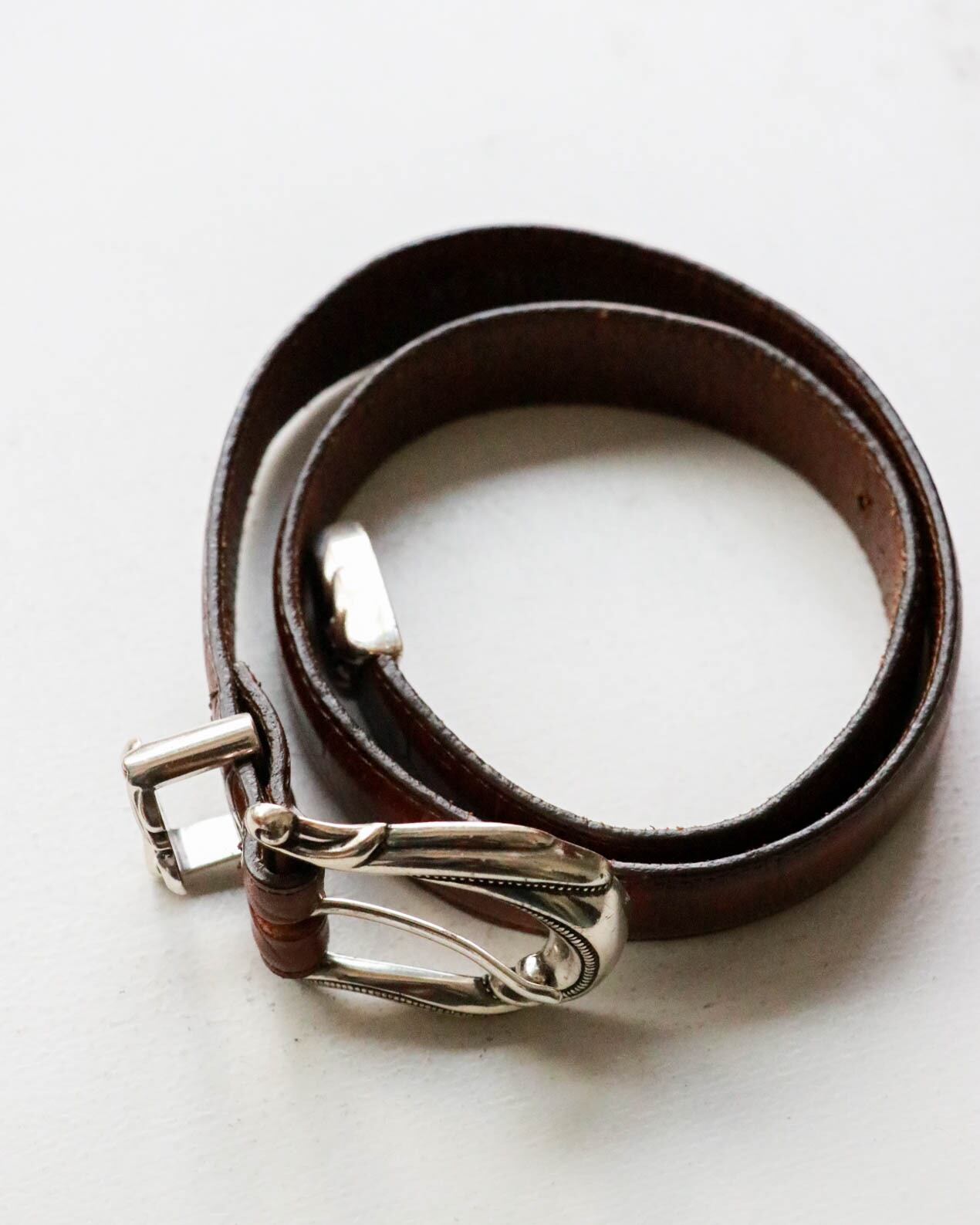 探そうと思っても見つかりにくいセンスあるベルトは、ヴィンテージをチョイスするのがオススメ。こちらの上質なブラウンレザーベルトはシンプルながらもバックルのデザインが特徴的。程よい太さでボトムスに合わせるのはもちろんウエストマークにも◎上質な一点で長く愛用できます。