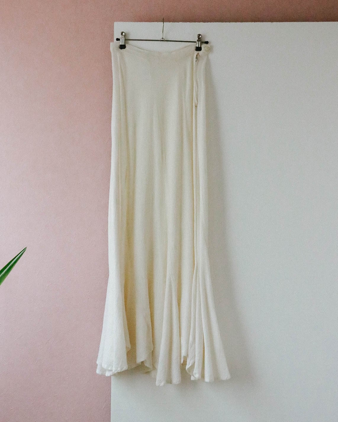 きゅっとしまるウエストから優美に広がるフレアシルエットが美しく、贅沢な生地づかいがまさにヴィンテージならではの一枚。
