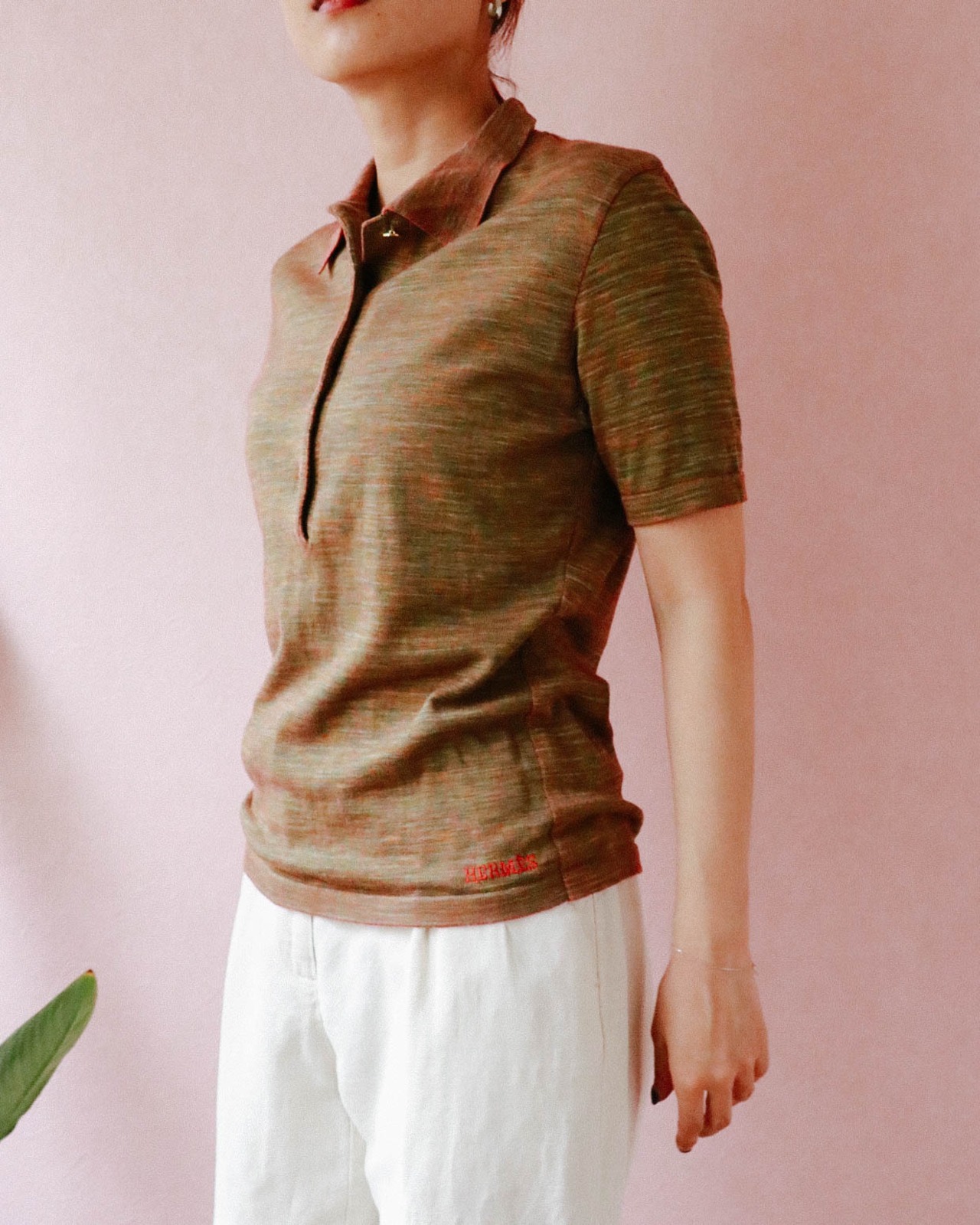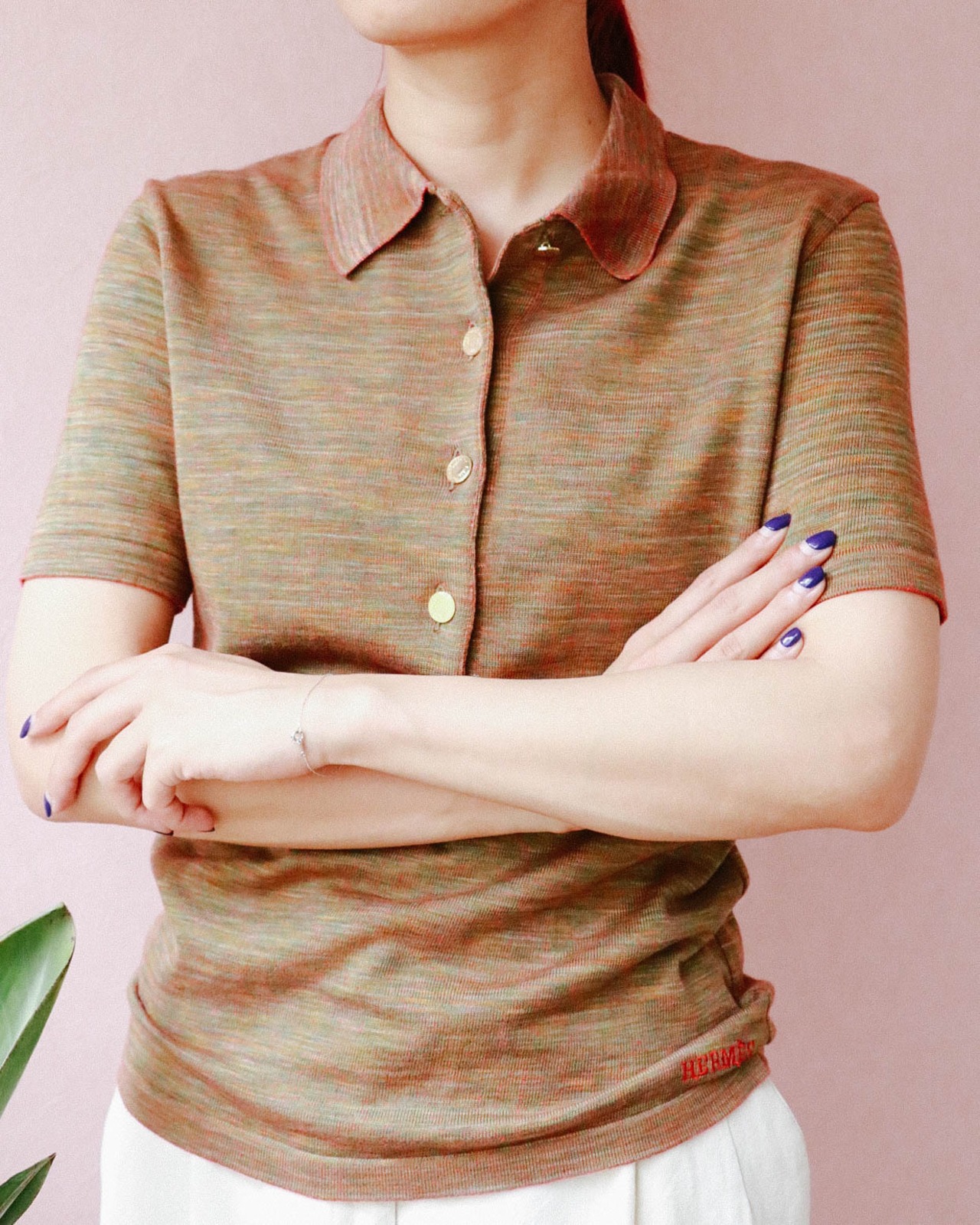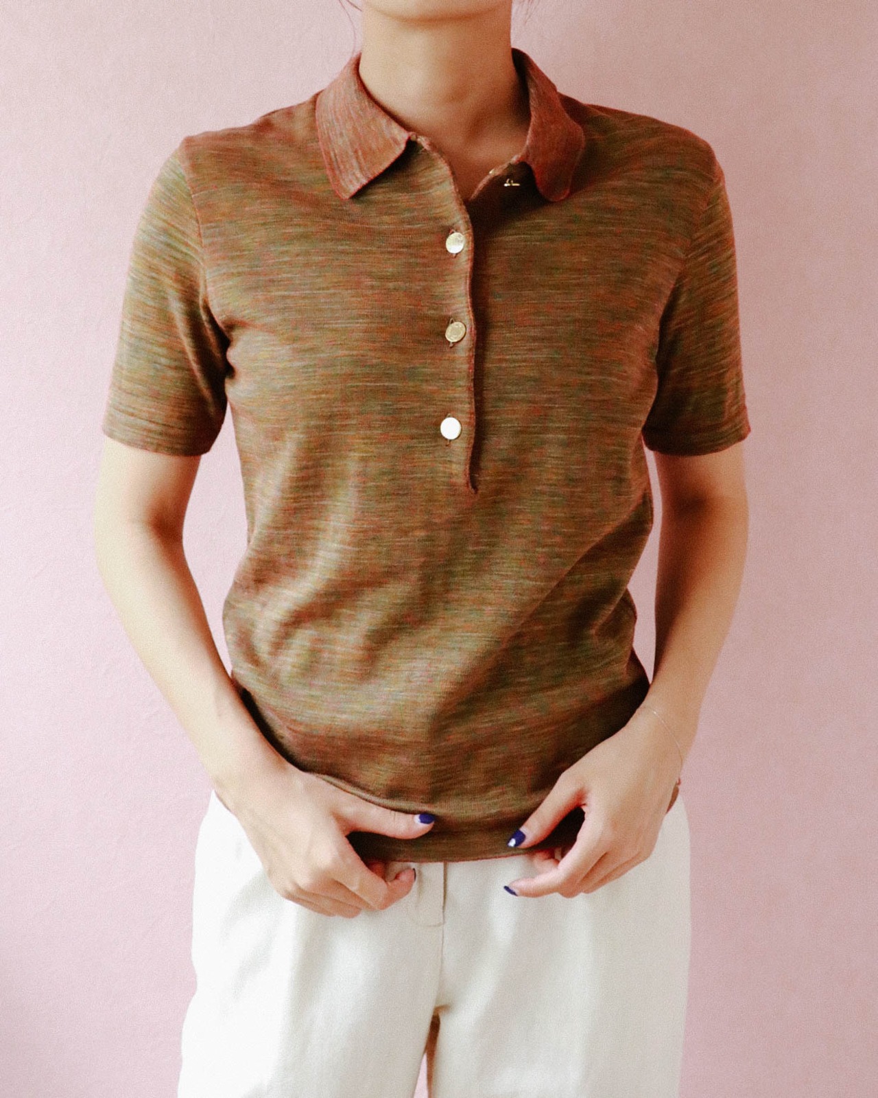 ポロ自体がスポーティな分、バッグやアクセサリーはレディなものをチョイスして。