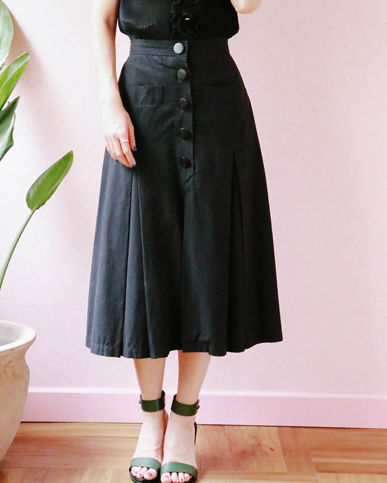 当時のサンローランらしい印象。パッと見は美しいAラインのエレガントなスカートですが