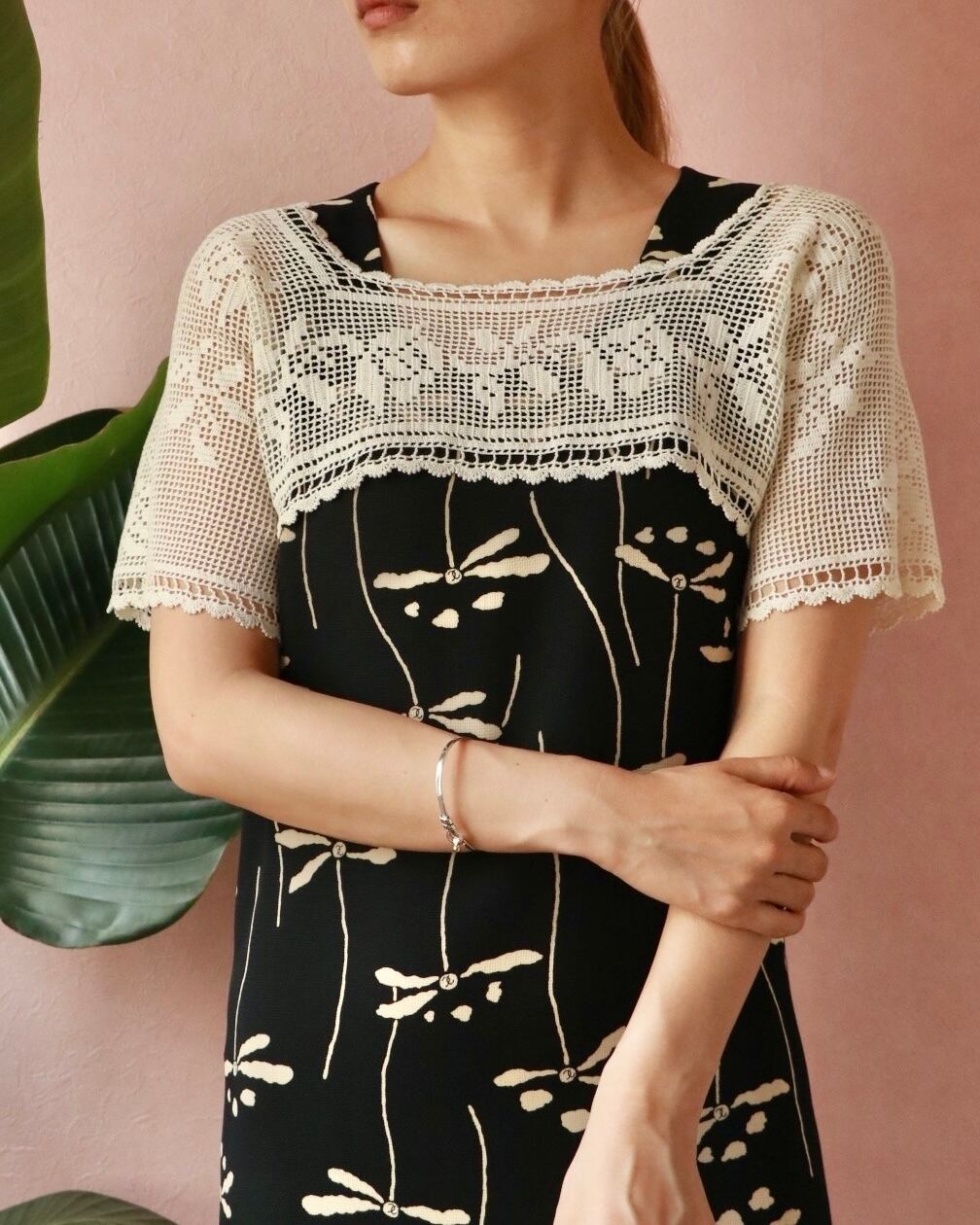 トップスと合わせたり、写真のようにつけ襟感覚で上から重ねるのもおすすめです。