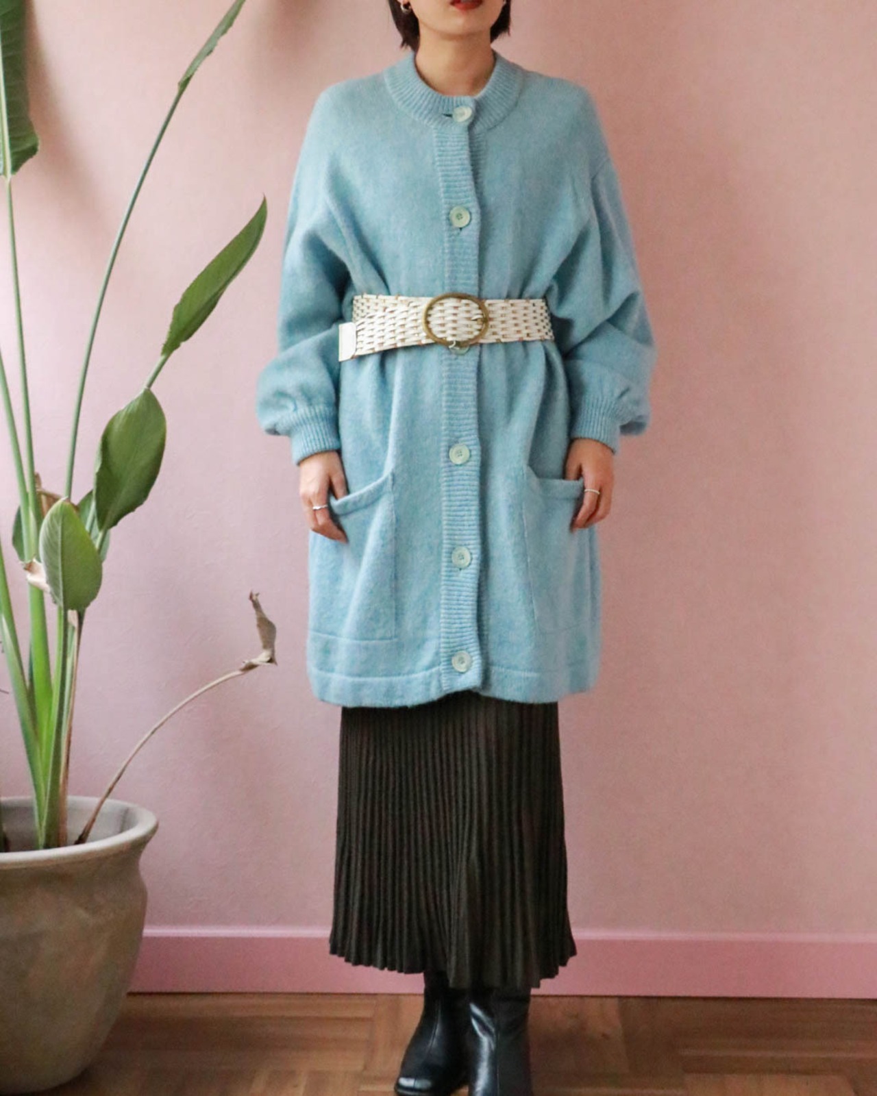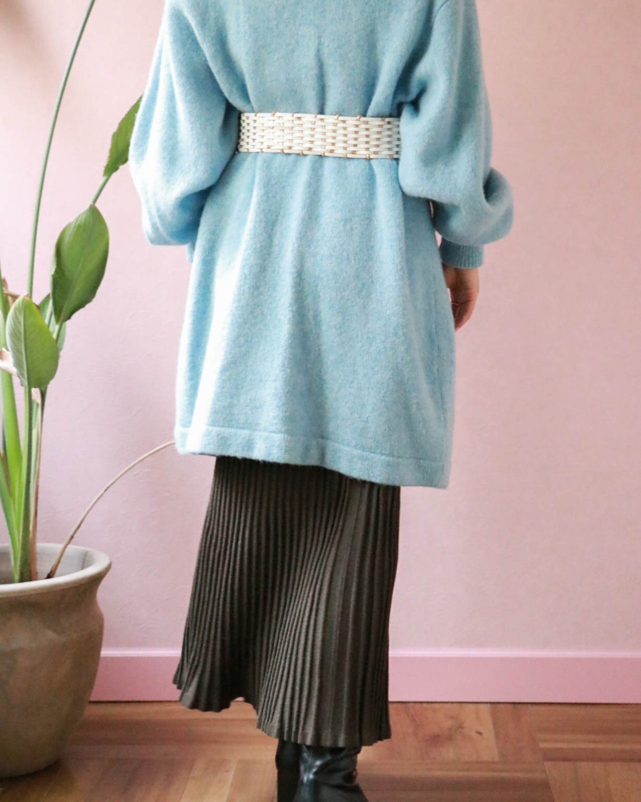 ブロンズの大きなバックルが良い味をきかせ、コーディネートを引き締めます。