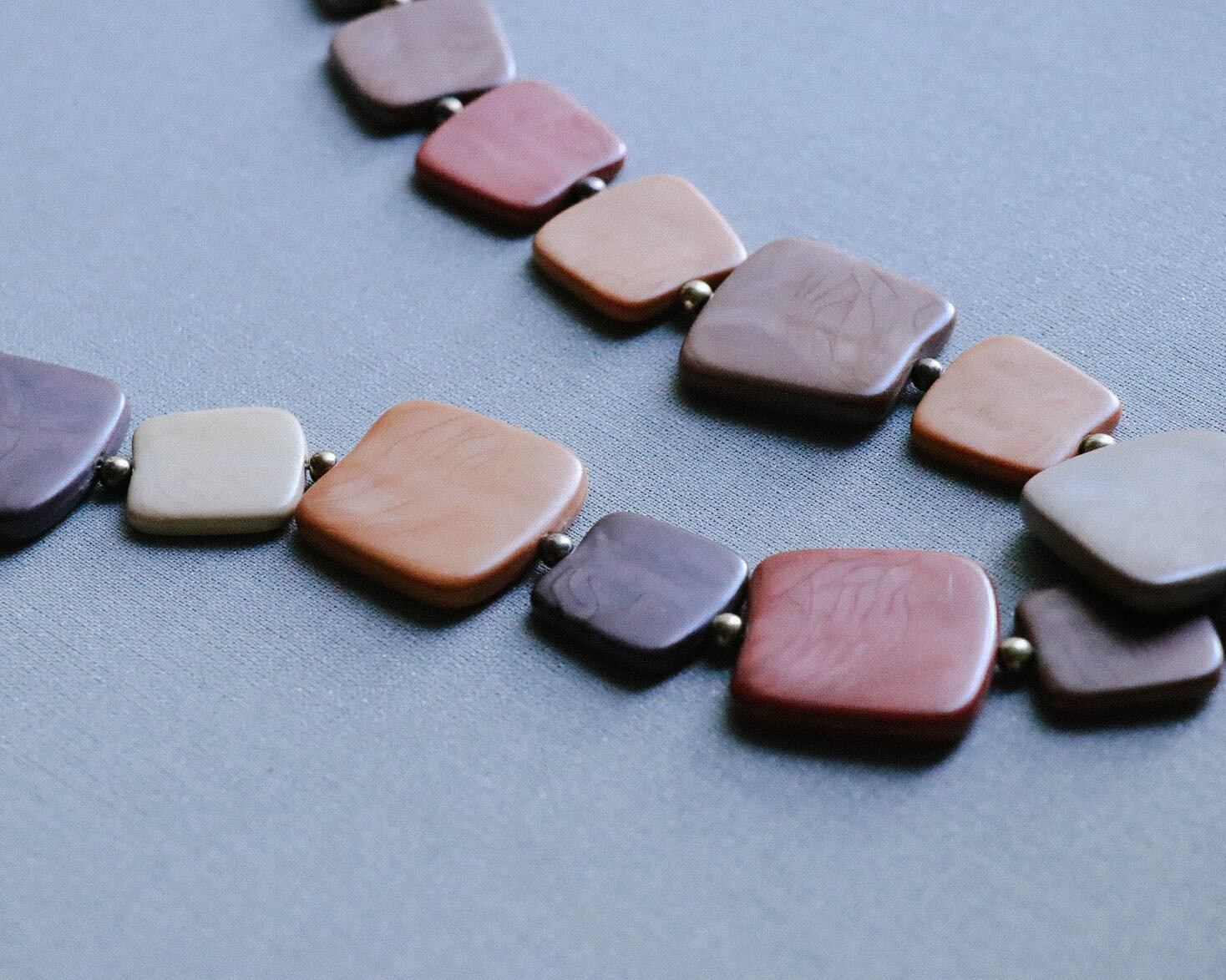 ランダムなサイズのウッドモチーフが連なるヴィンテージネックレス。