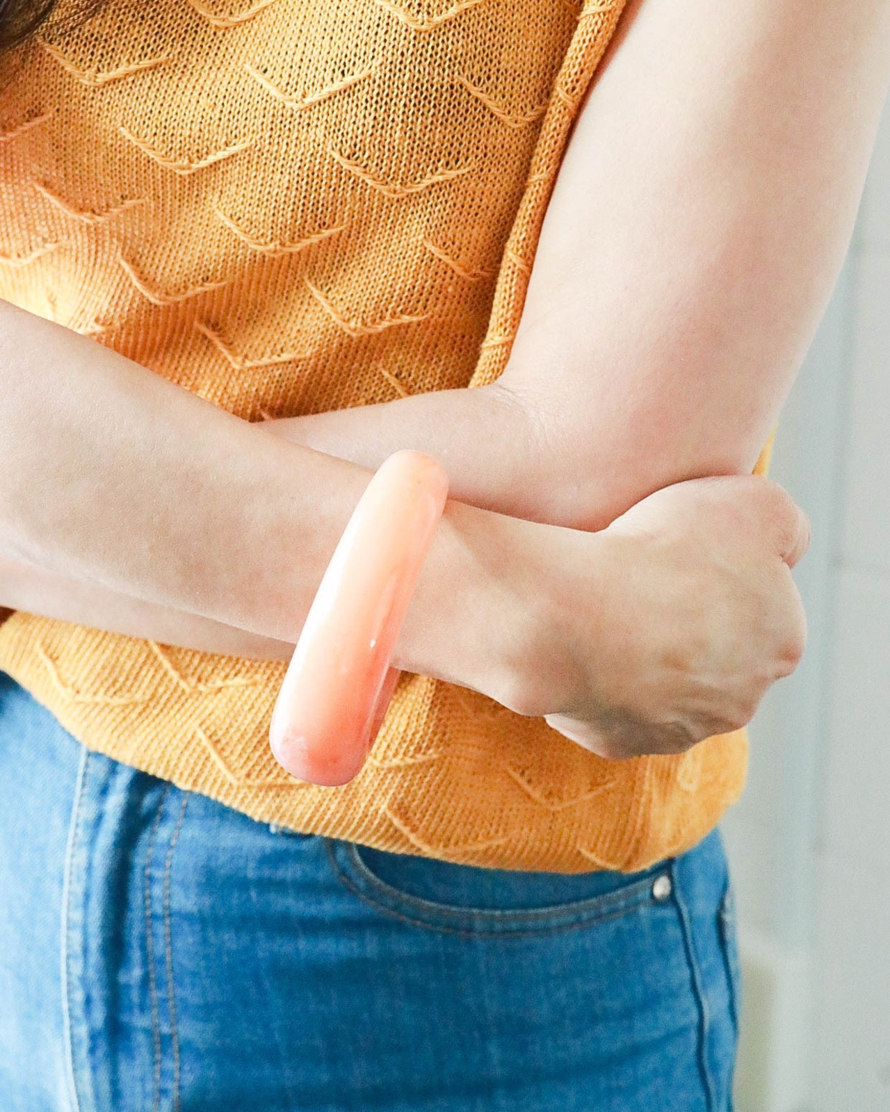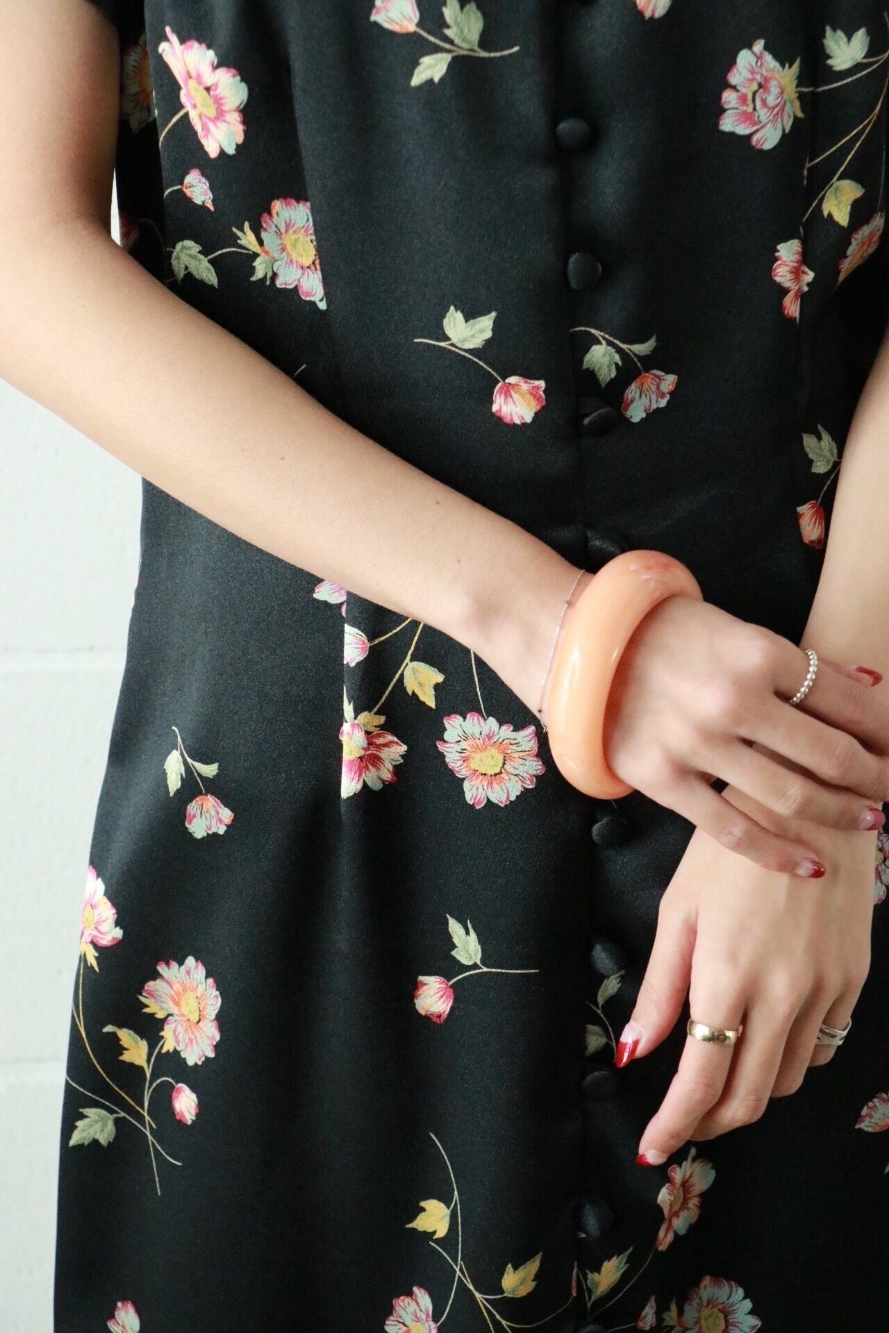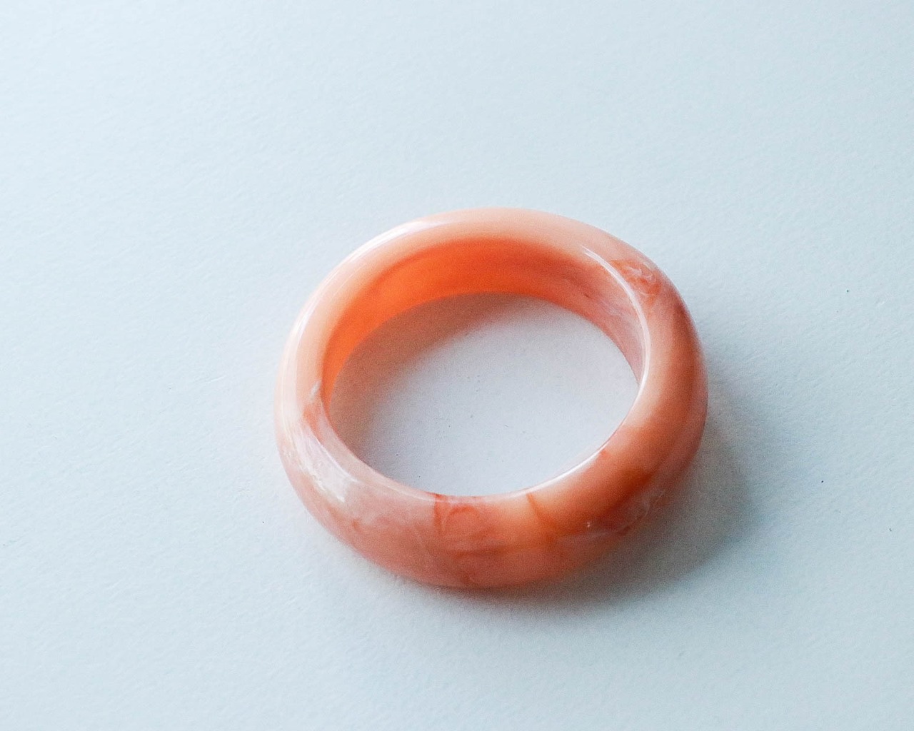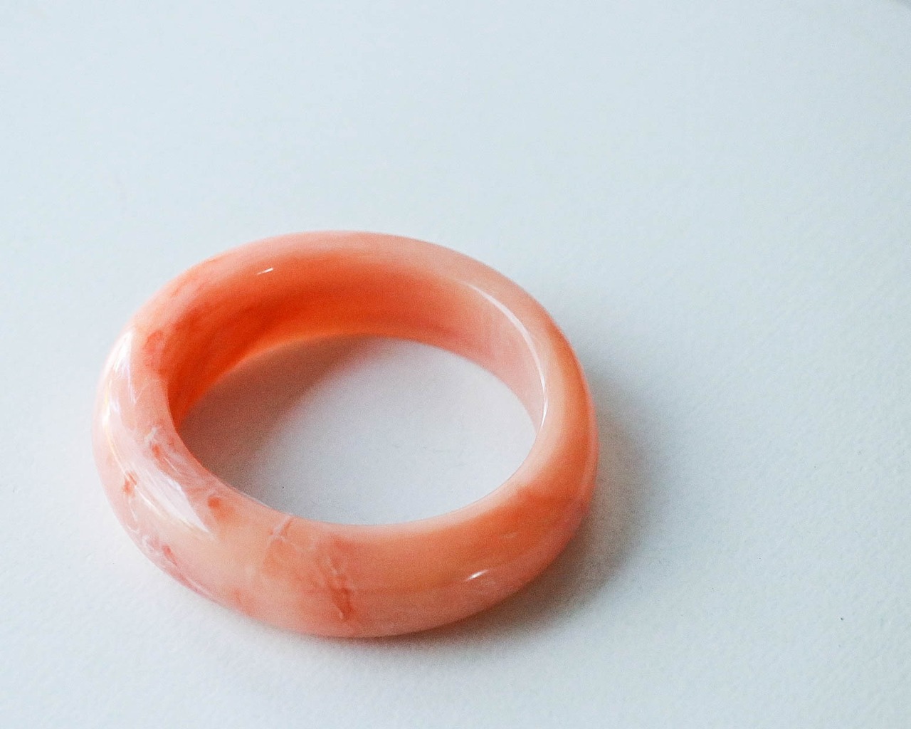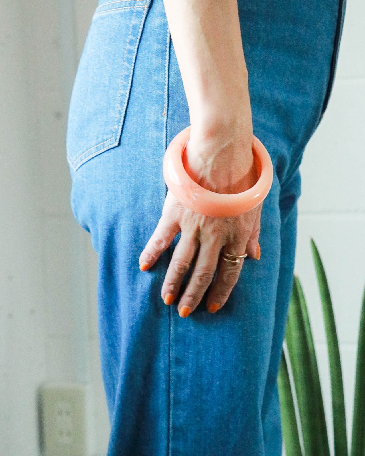 艶やかで独特のミルキーなマーブル模様。アイスクリームのような滑らかな質感に魅了されます。ゴールドやシルバーにはないおもちゃのようなプラスチックならではのヴィンテージバングルです。アクセント使いに是非。