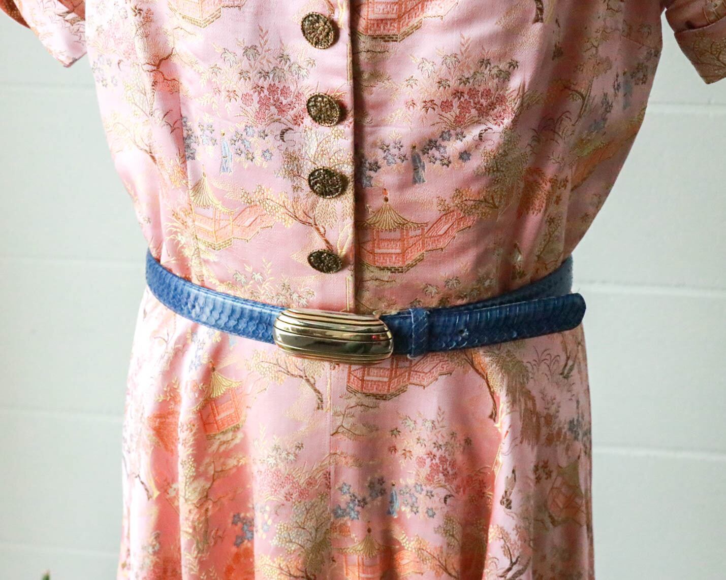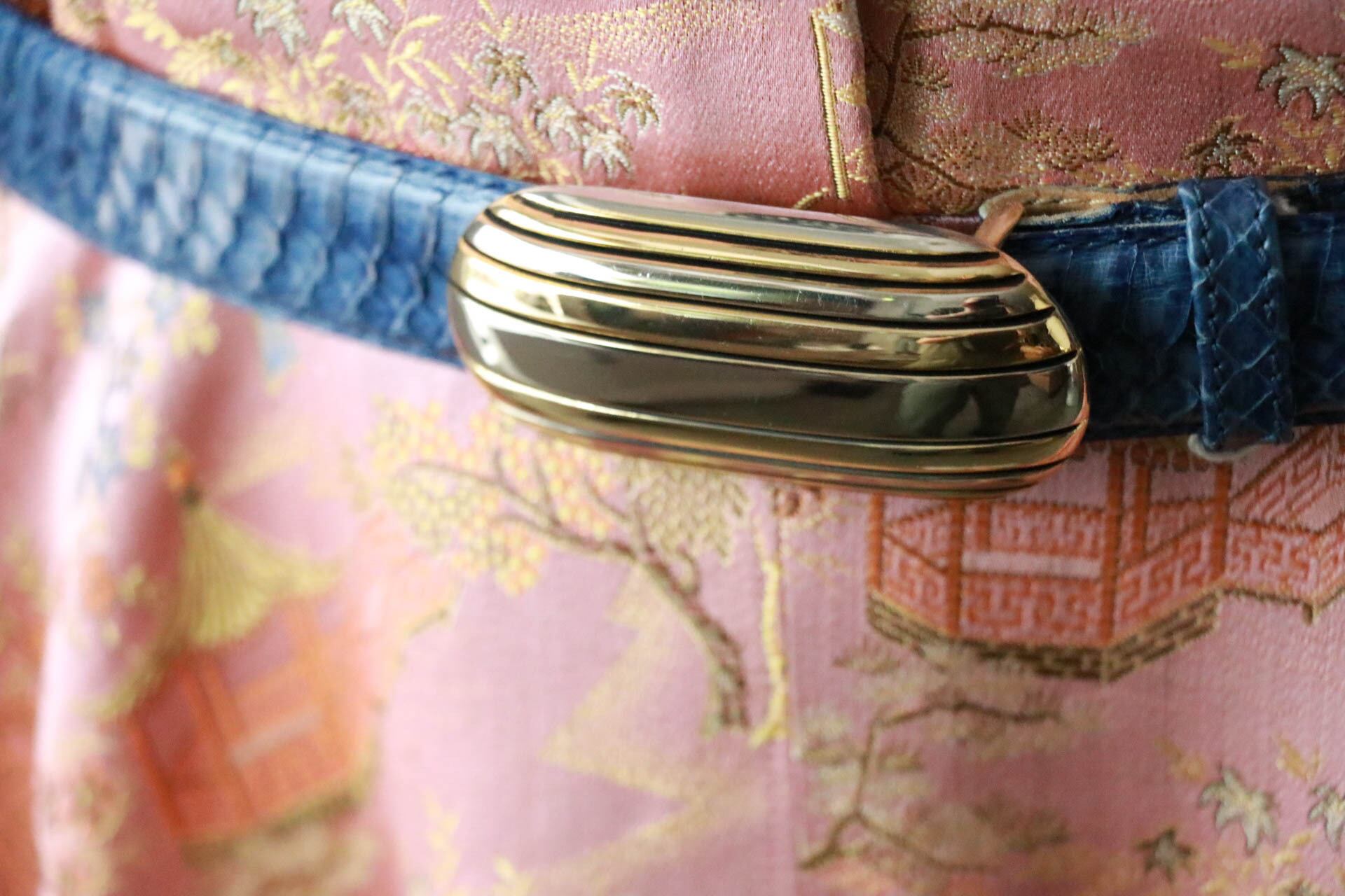 blue snake skin buckle belt