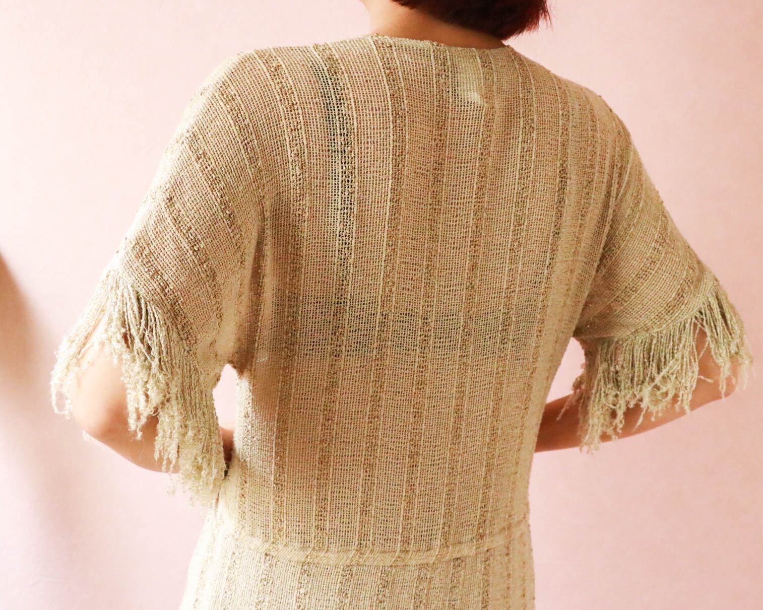 カシュクール、ヌーディー、ペンシル風のシルエットと淑やかでいてアダルトなディテール満載。とっておきの一枚になりそうです。