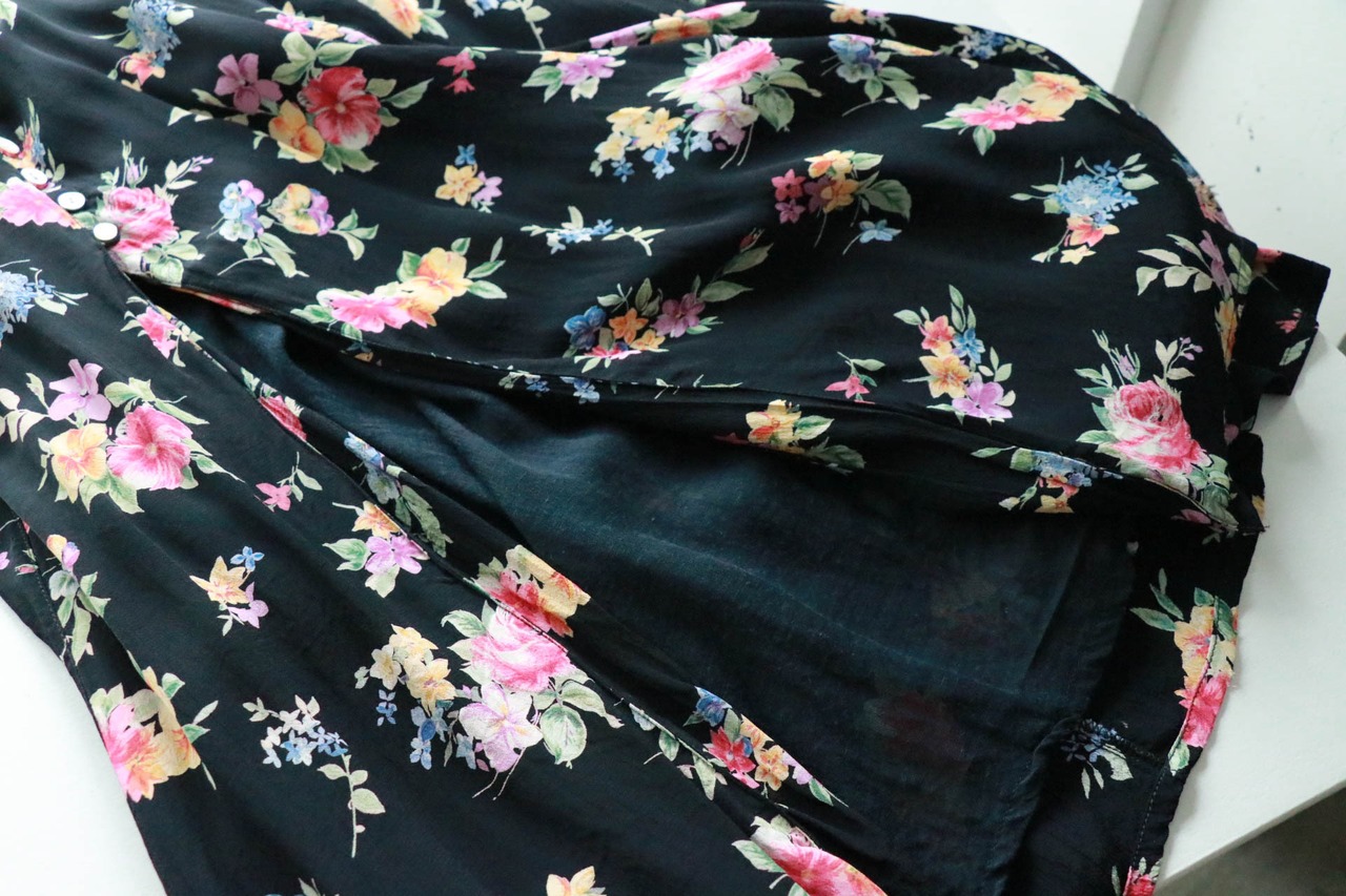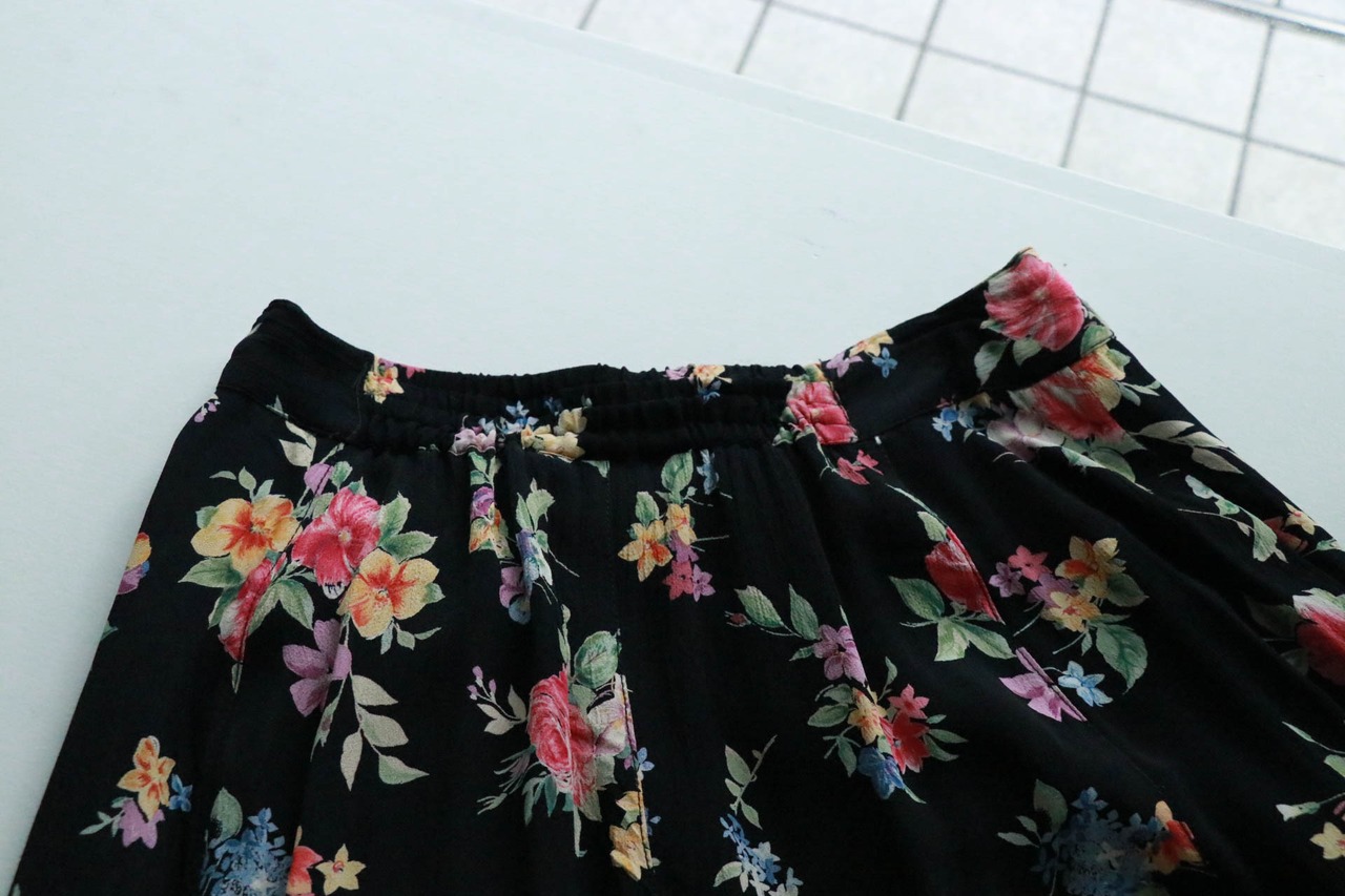 黒地に鮮やかな花々が咲き誇るロングスカートが入荷。