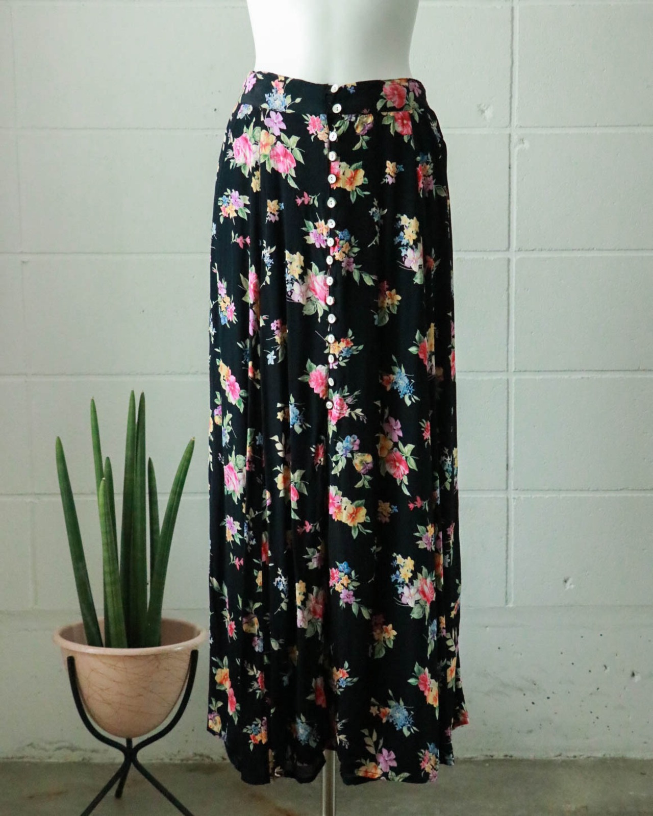 black floral front button skirt