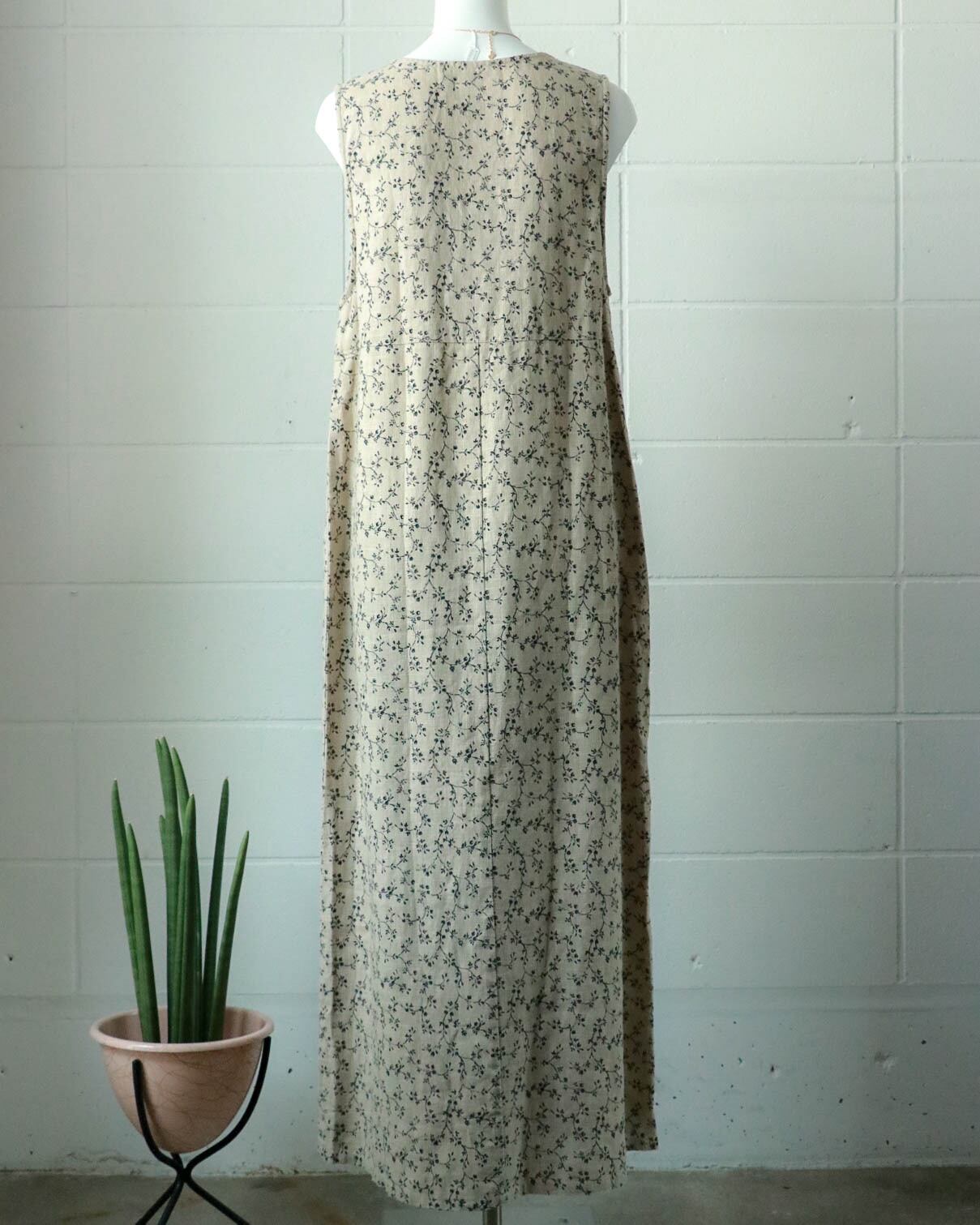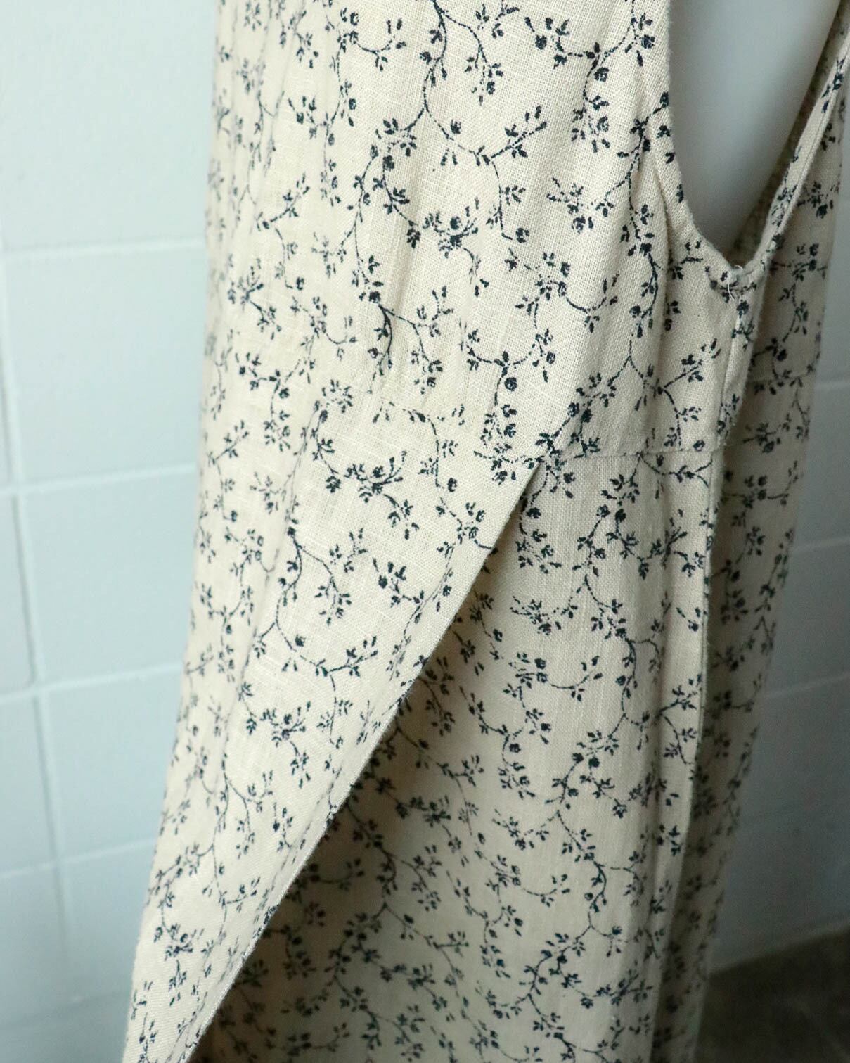 beige linen foral wrap dress