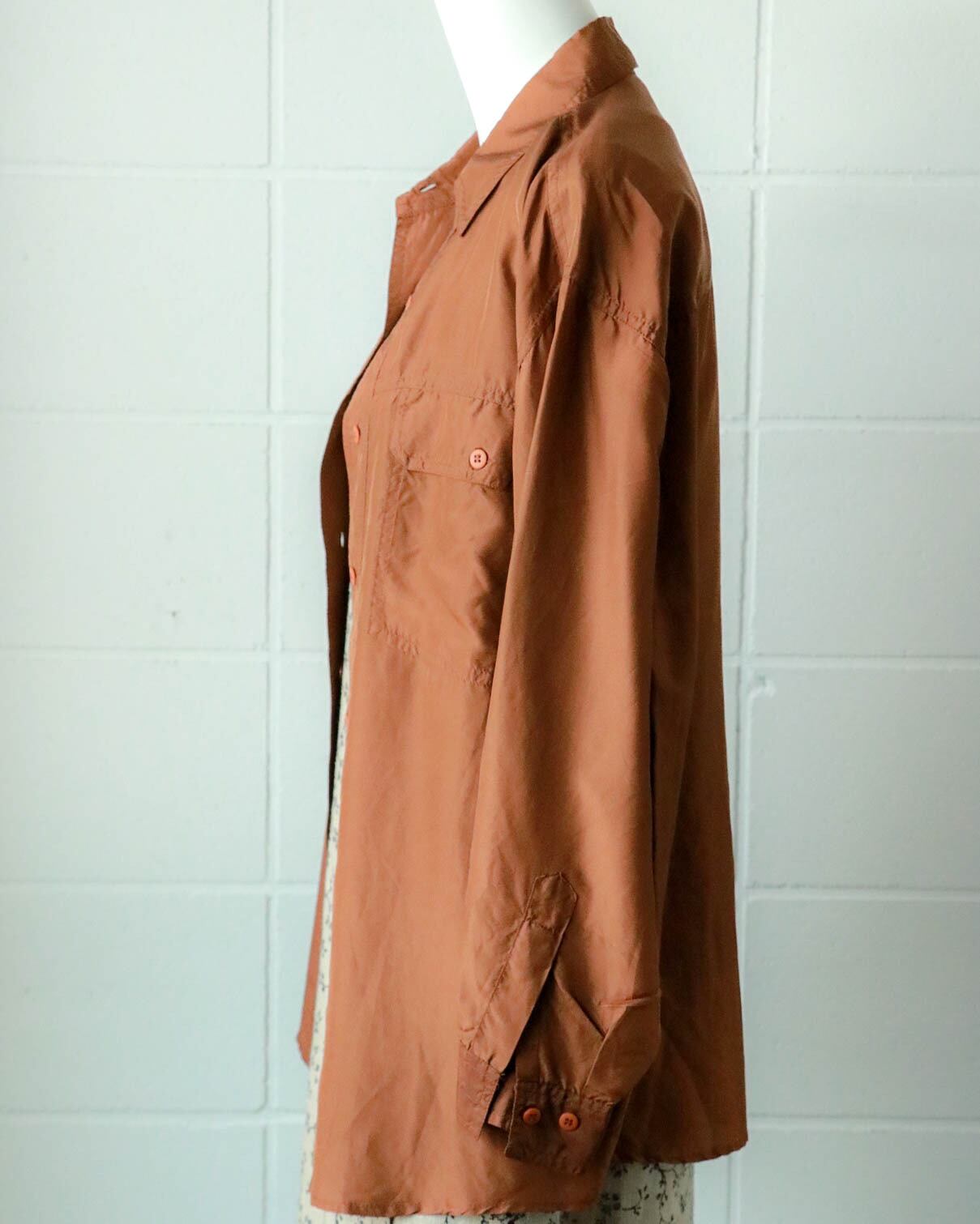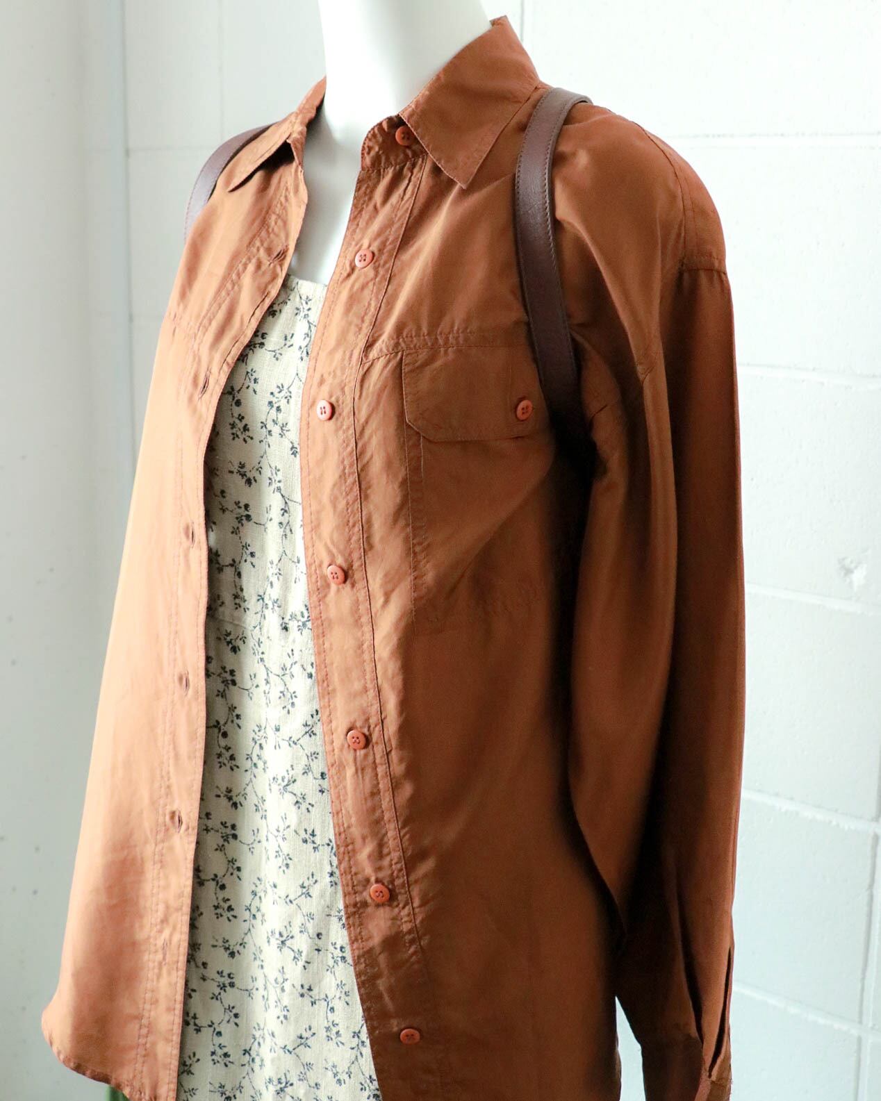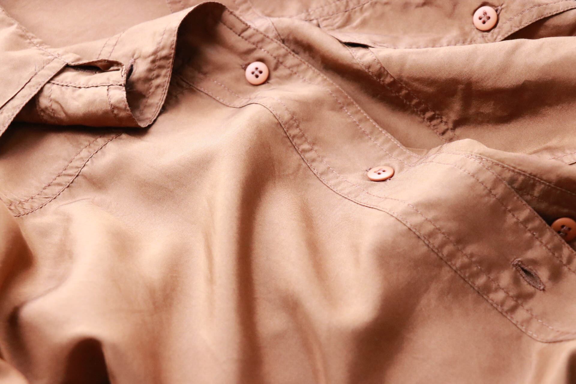 落ち着きのあるゴールデンブラウンのシルクシャツが入荷しました