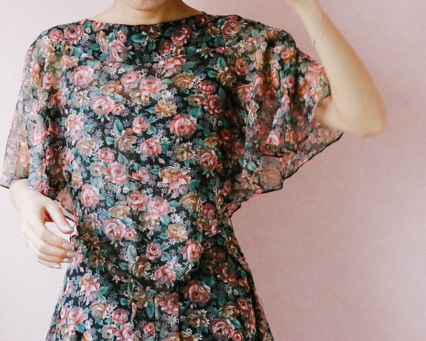 クラシカルな花々が描かれたドラマチックなワンピース。