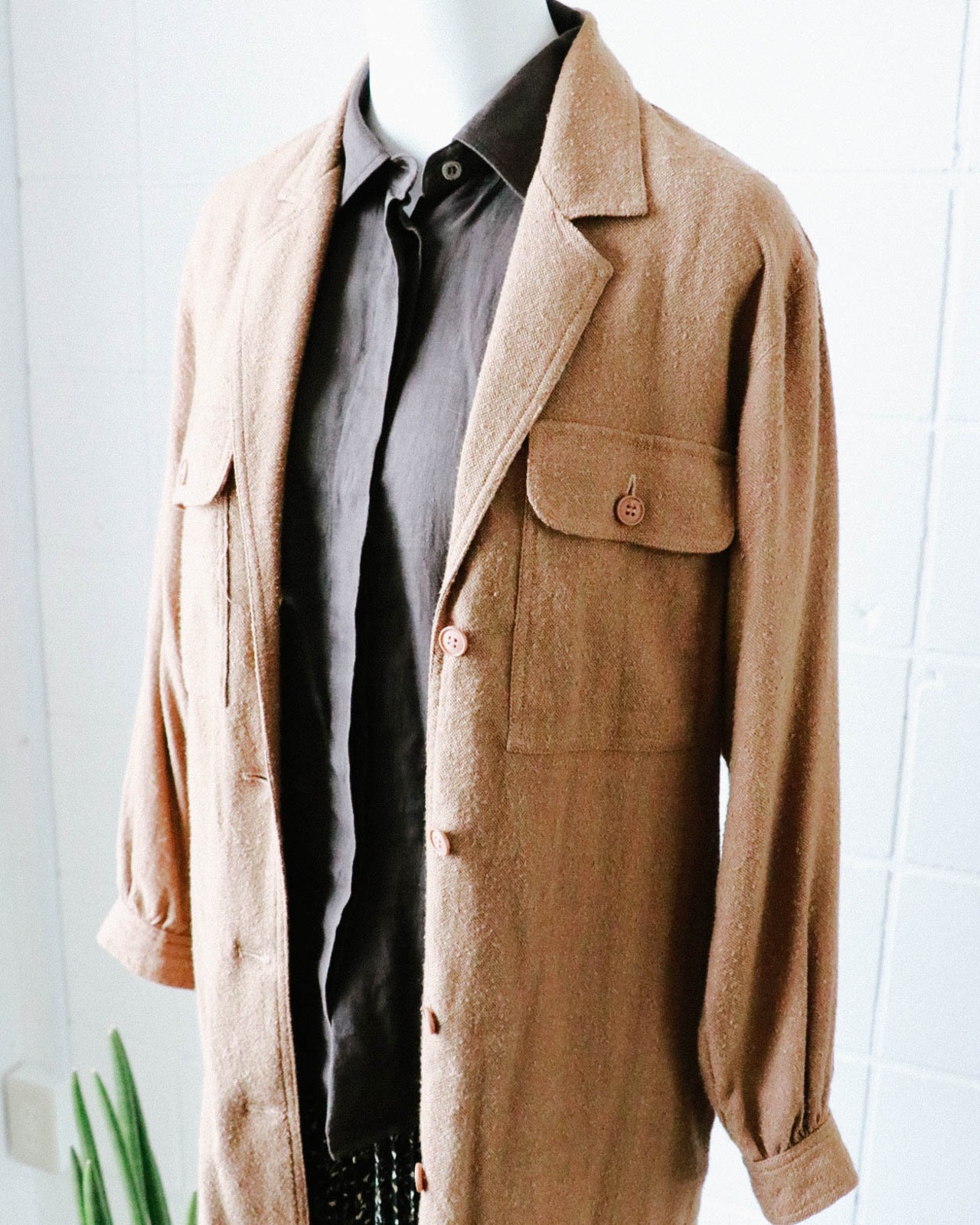 素材表記はありませんがアースカラーとネップがナチュラルな風合いを醸し出す一着。