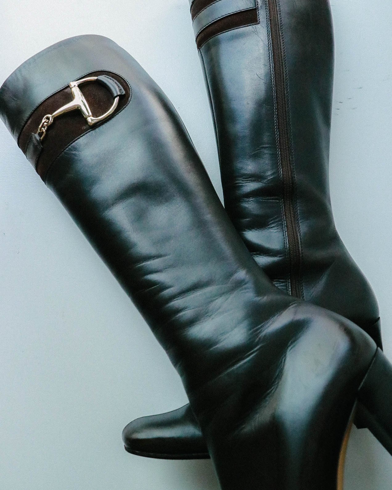 ホースビットが鎮座するこちらのデザインはグッチのもの。シンプルながらも計算しつくされたスマートな印象。大人のヴィンテージスタイルにしっくりはまる一品です。