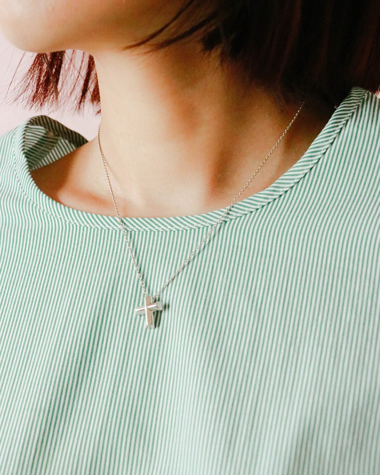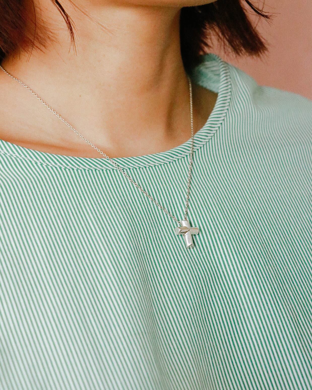ティファニーのクロスといえばエレサ・ペレッティのデザインを思い浮かべますが、こちらは対照的な珍しいタイプ。フェミニティを極力削ぎ落としたクールな仕上がりはユニセックスでも使えそう。